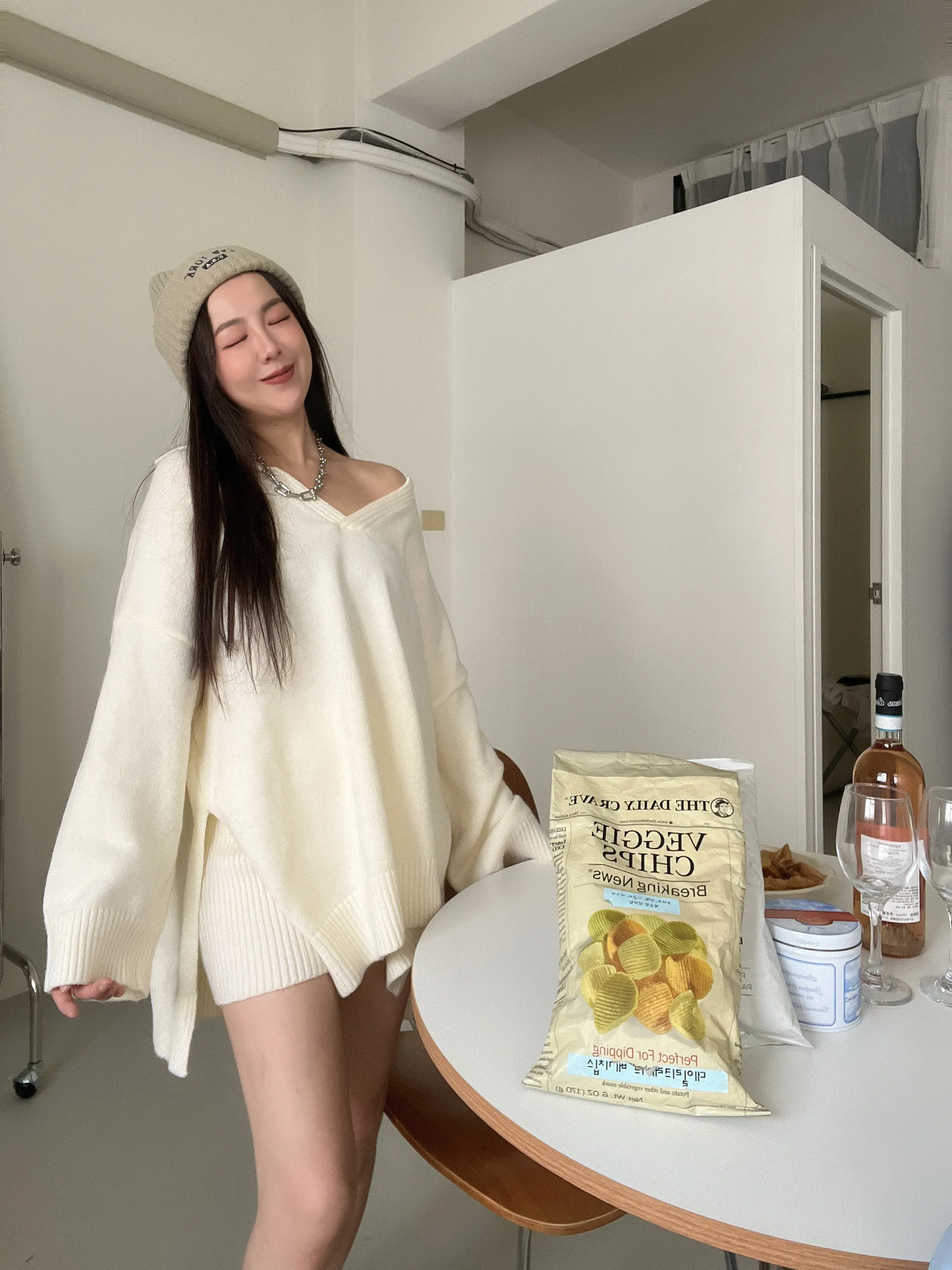 11/28休閒小性感🫦內刷毛針織坑條喇叭褲套裝