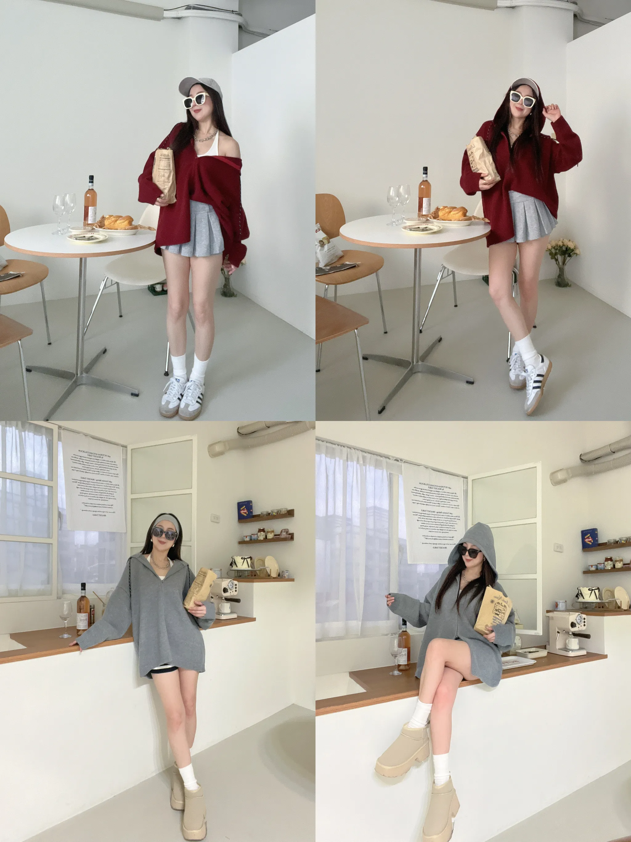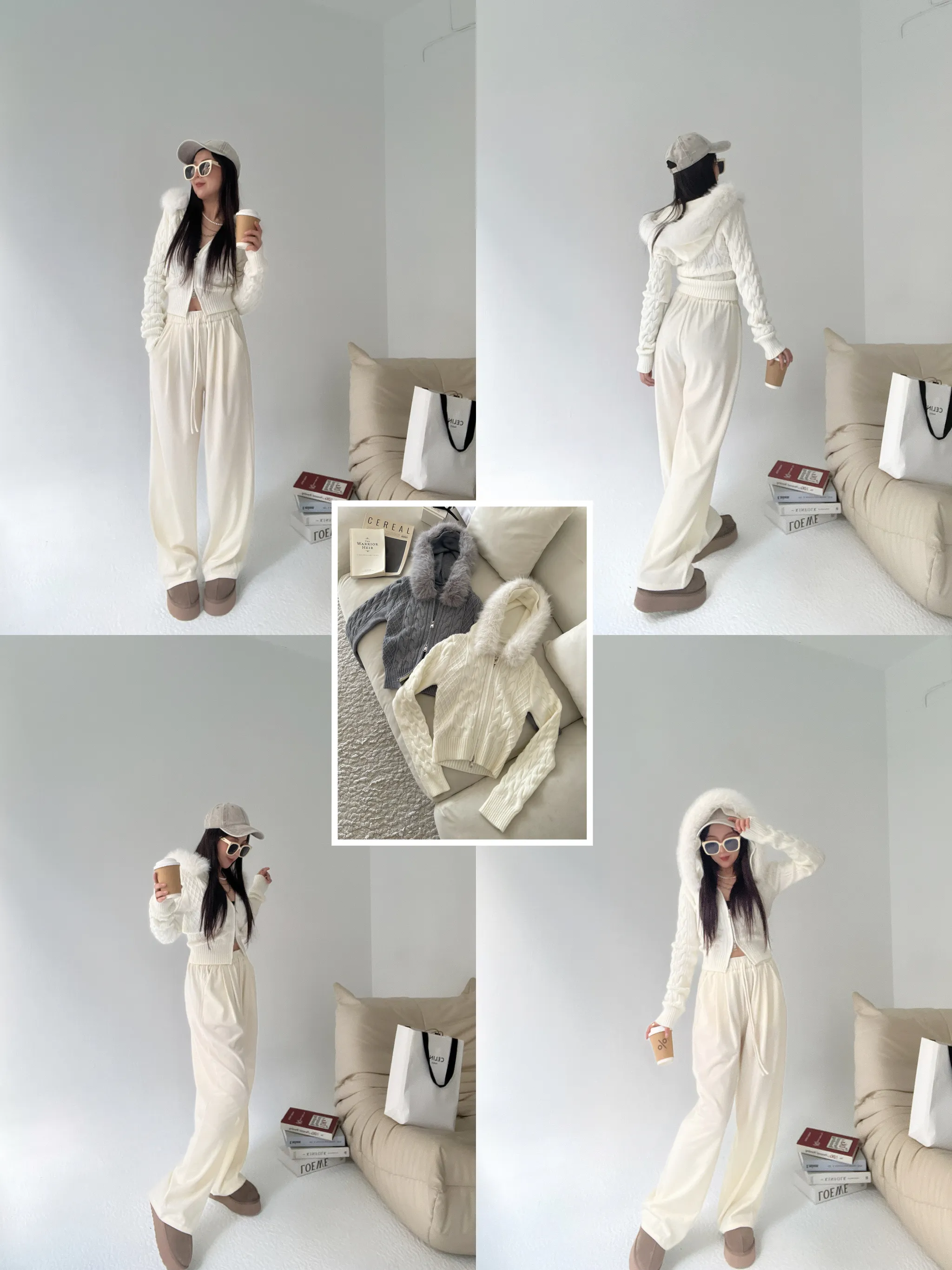 12/26雙拉鍊舒適連帽針織衣+喇叭褲套裝