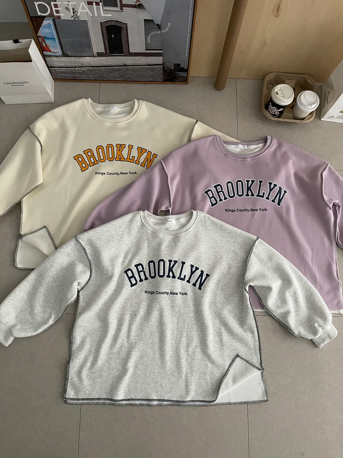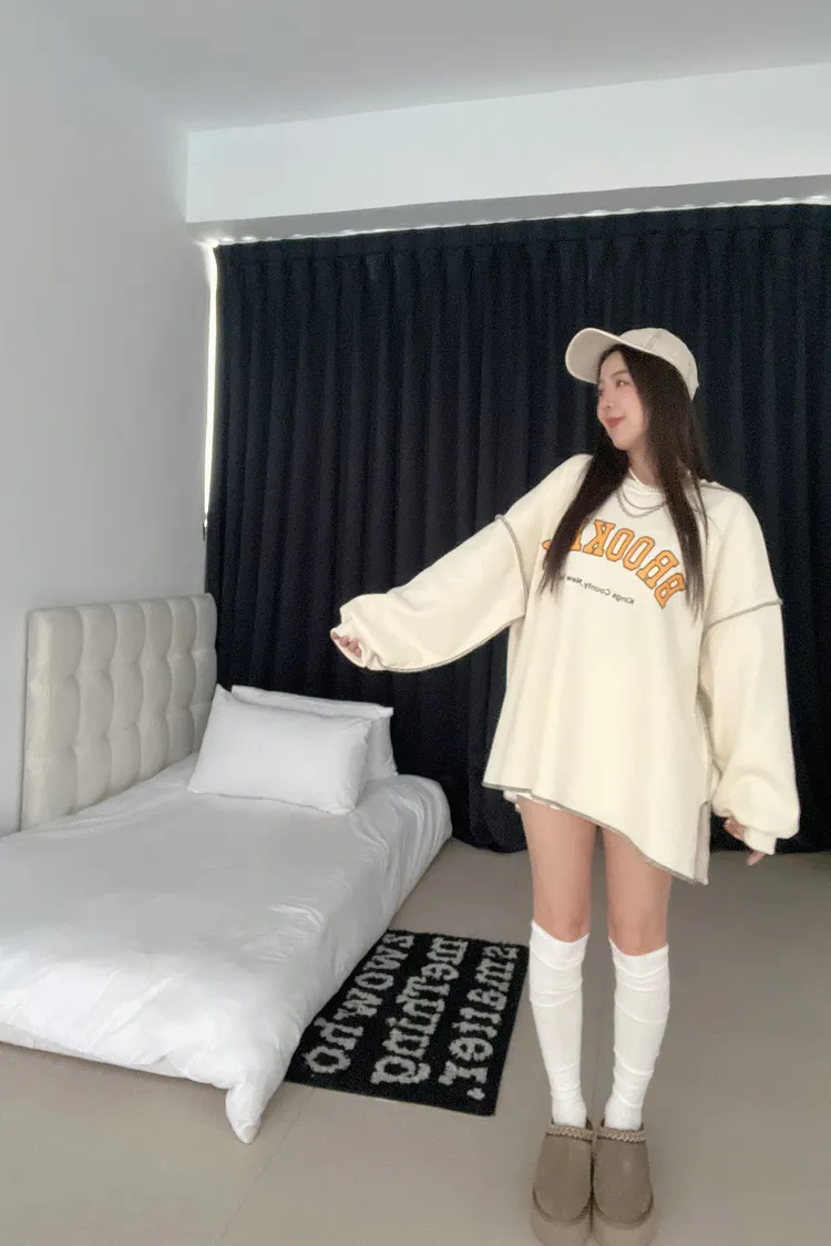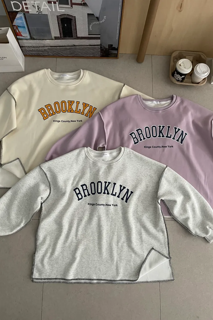 01/06布魯克林🏫內刷絨反車線大學T