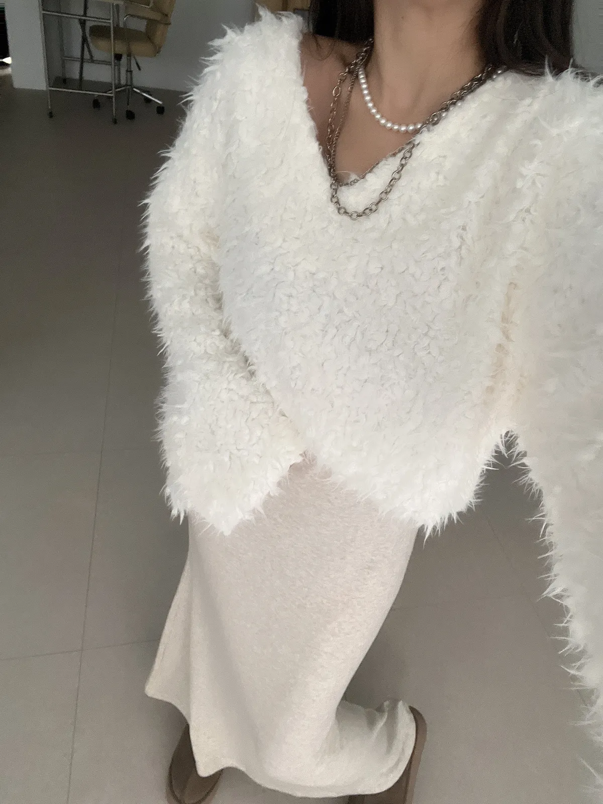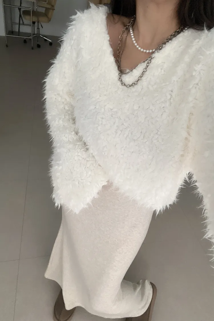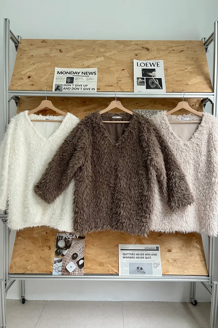 01/06人氣焦點✨奶色系v領毛毛上衣