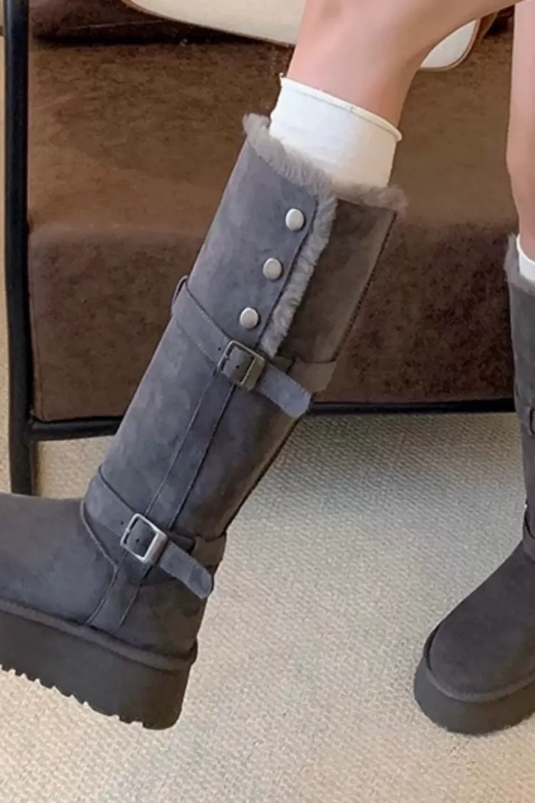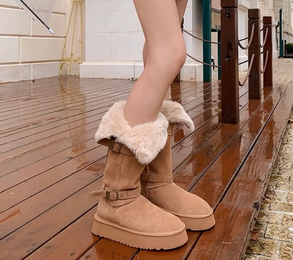 01/06冬日感❄️翻毛雙釦暖芯長筒雪靴