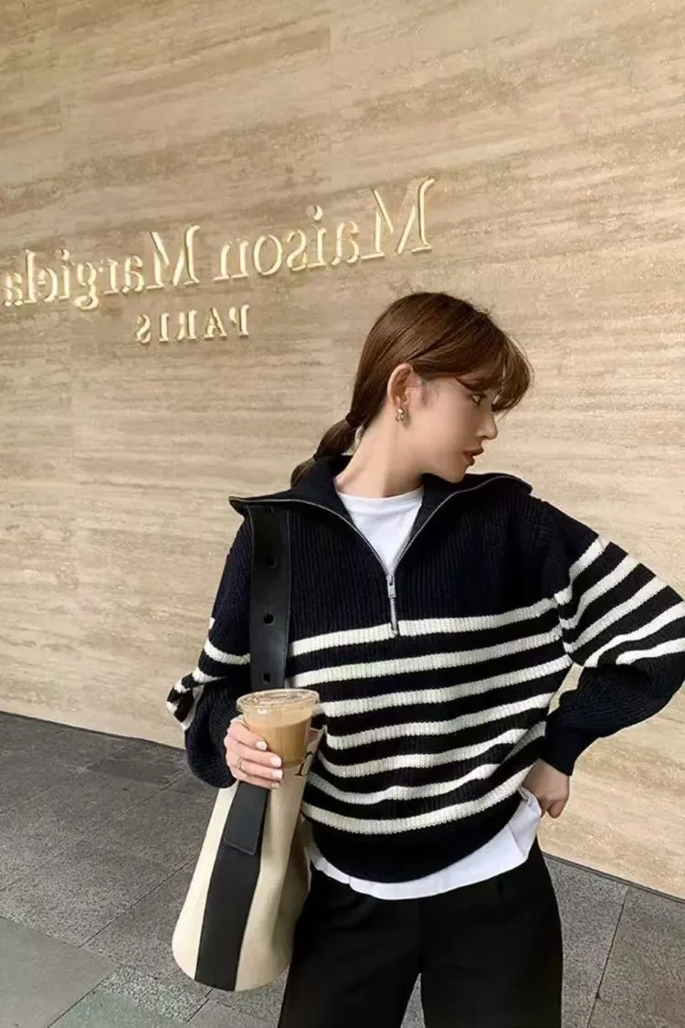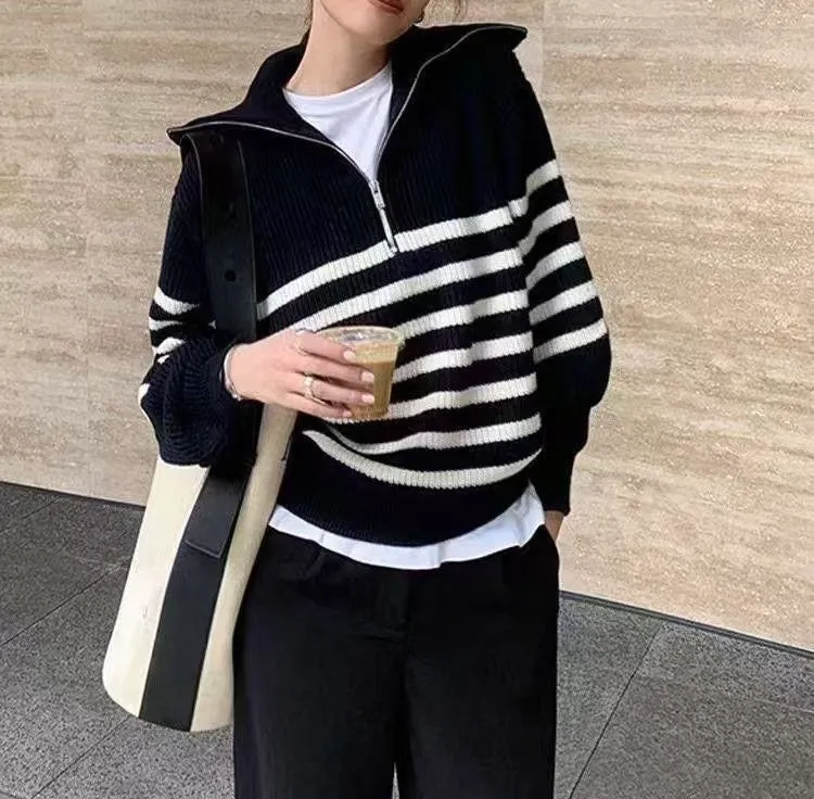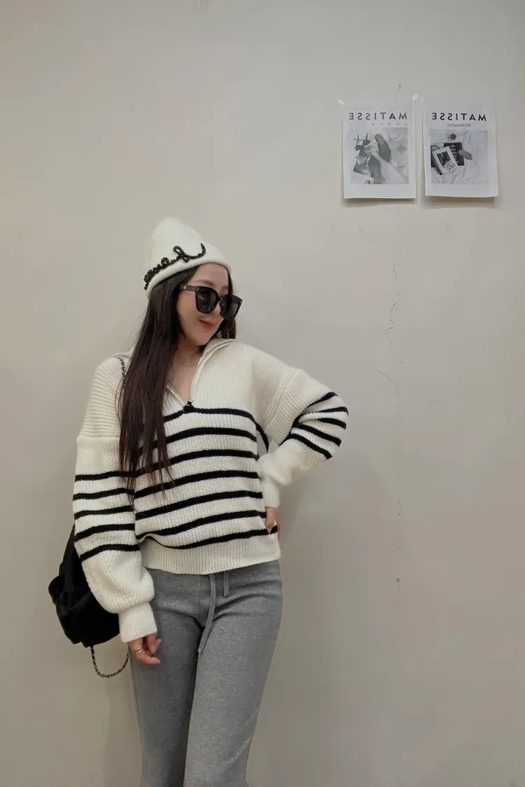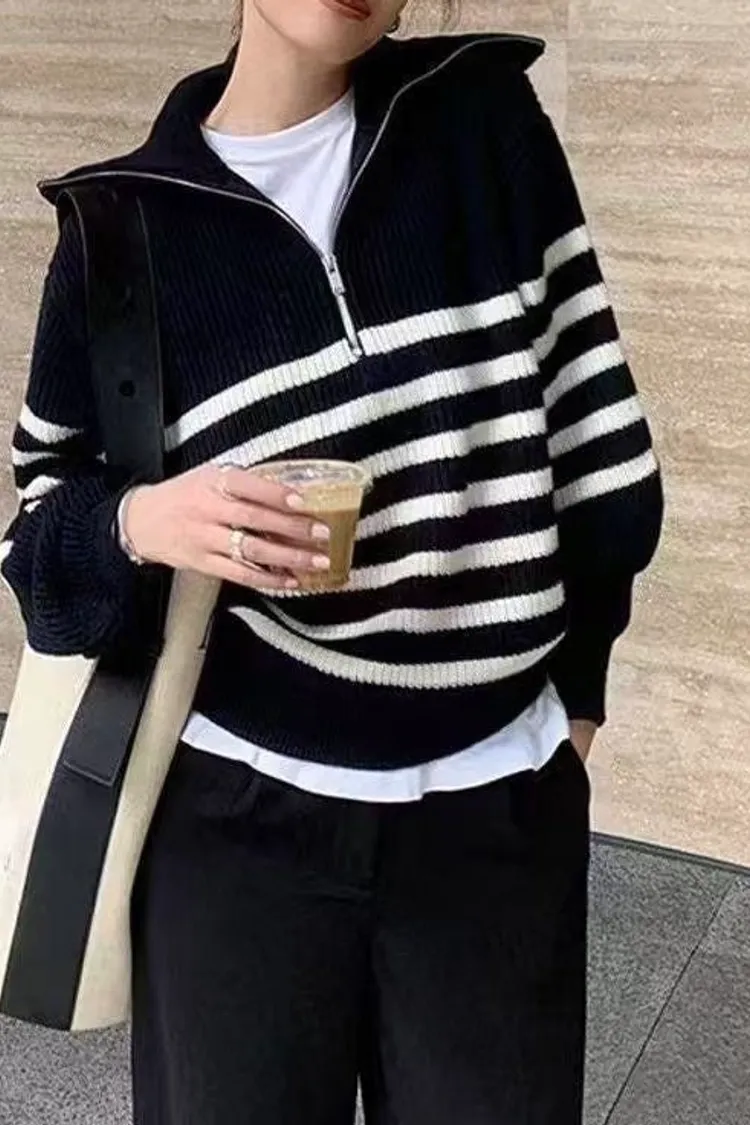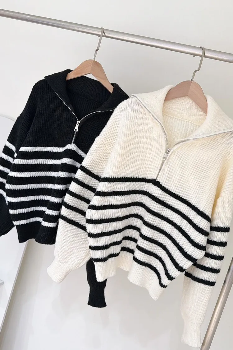 01/15拉鍊翻領條紋針織衣