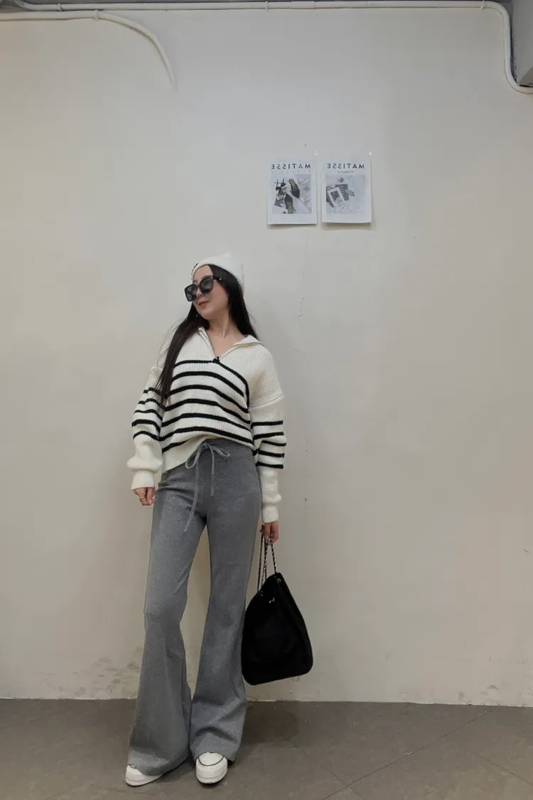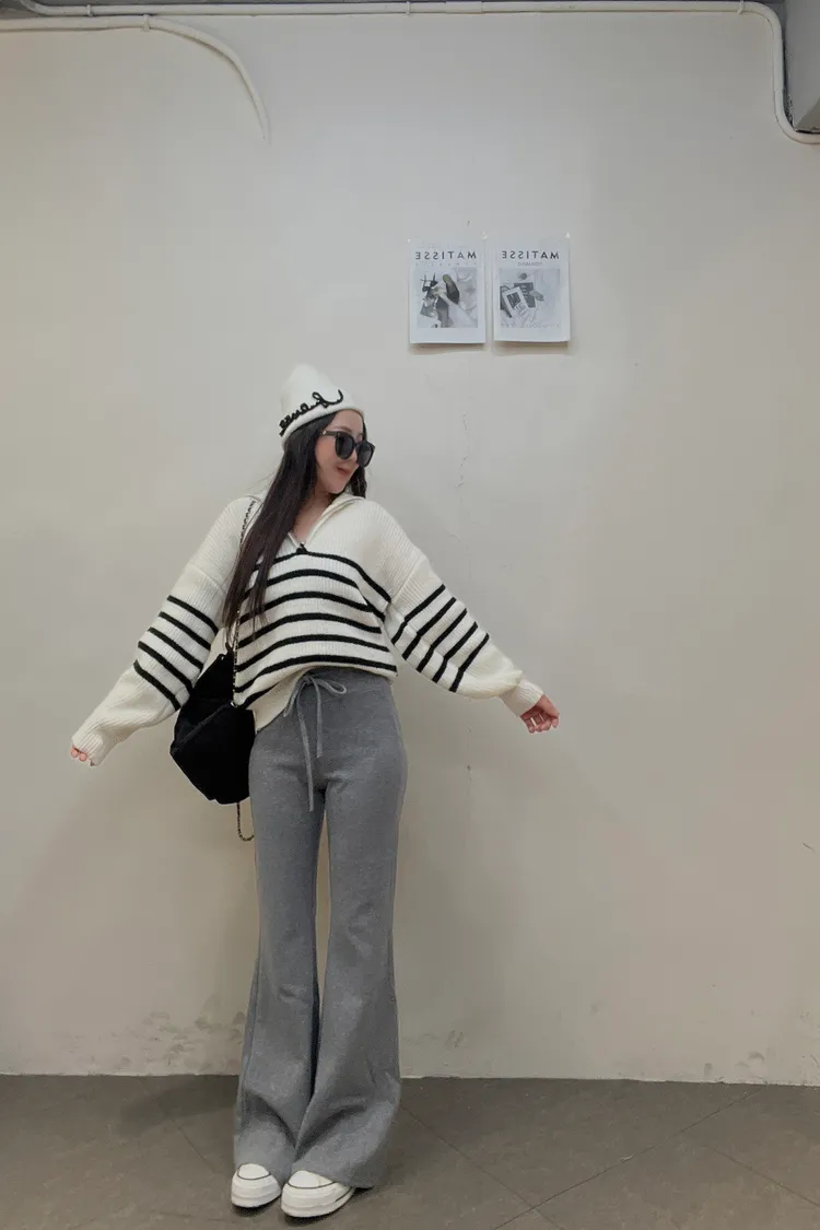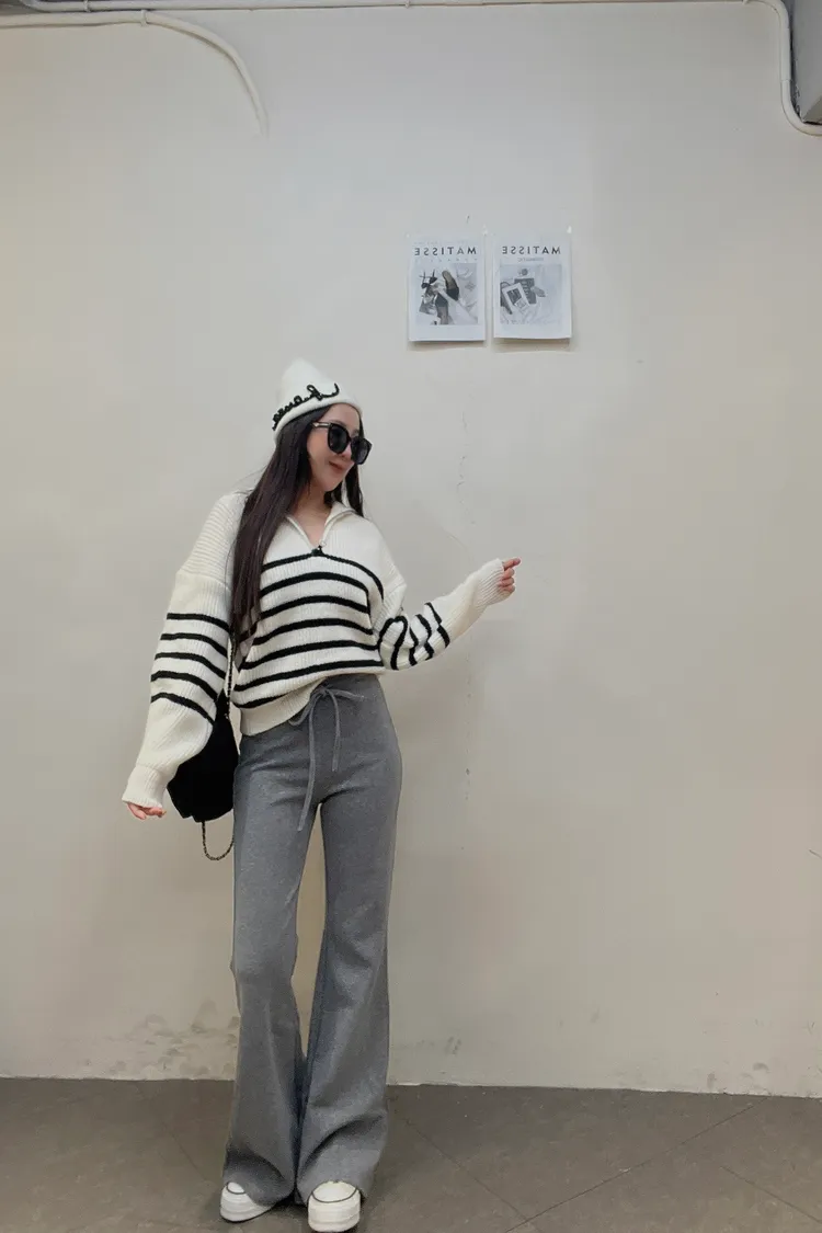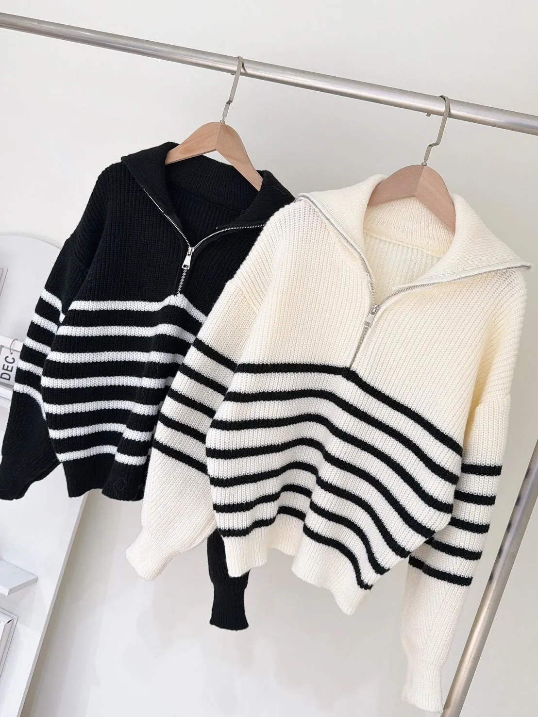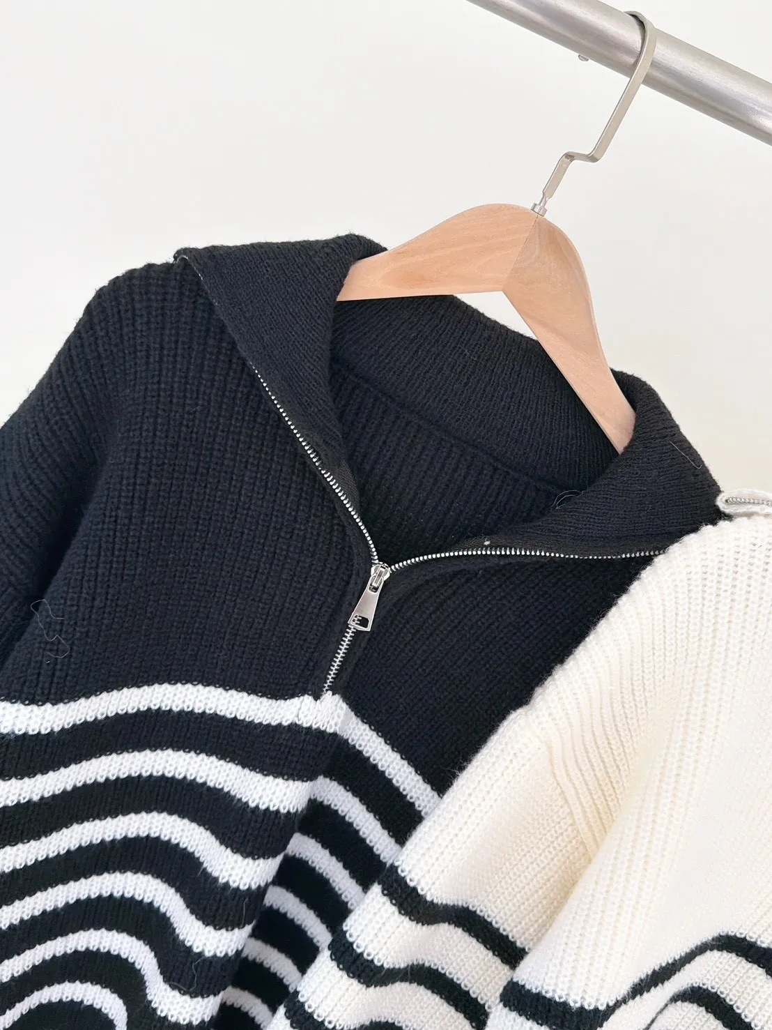 01/15拉鍊翻領條紋針織衣