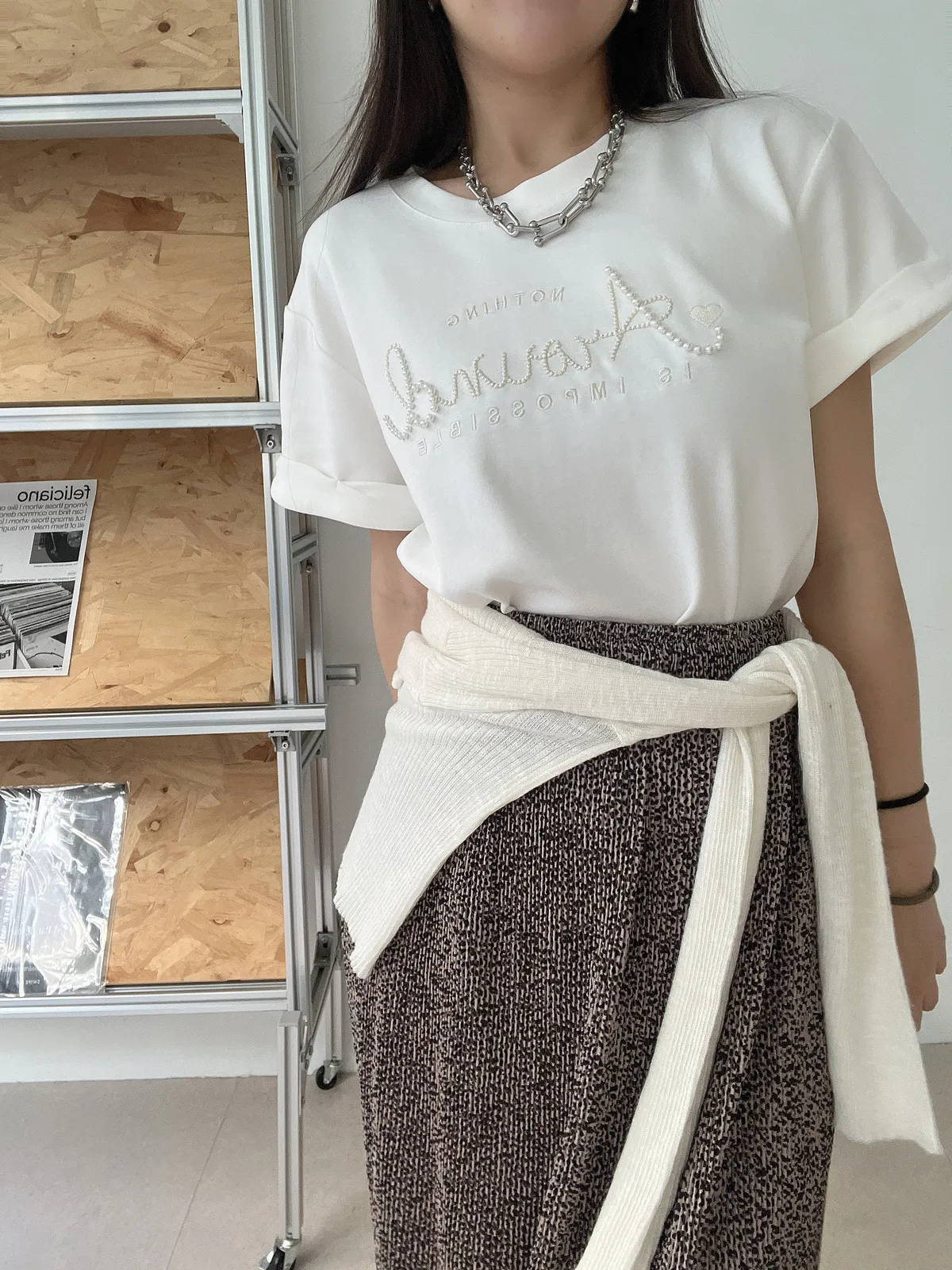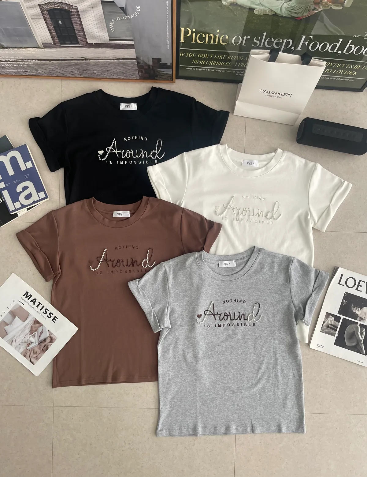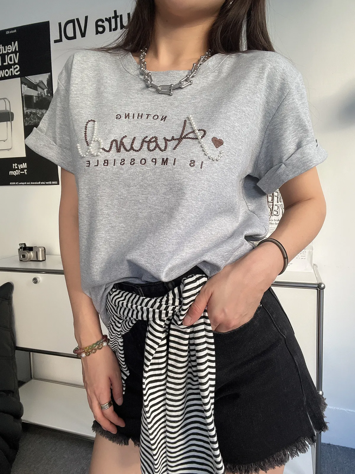 ✌🏻休閒/正式兩不誤🐚珍珠英文字短T