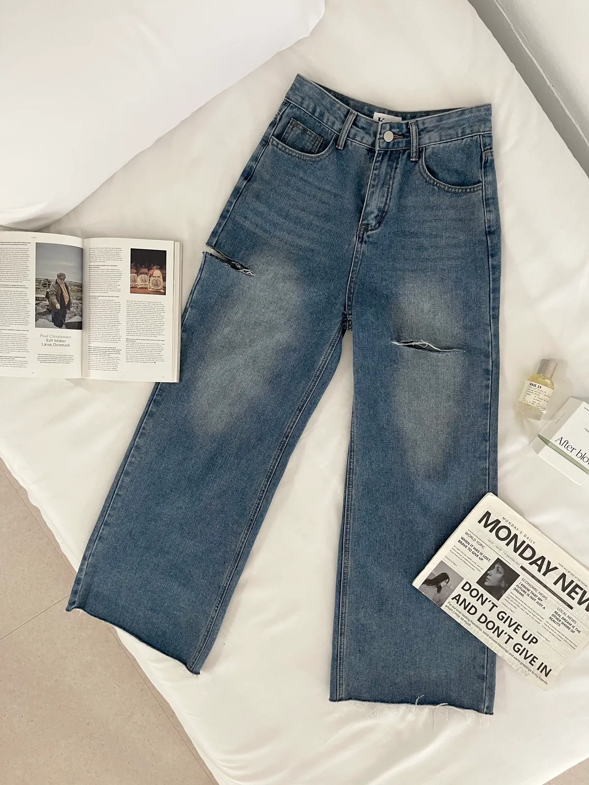 🖤壞壞小性感🖤多割破直筒牛仔褲