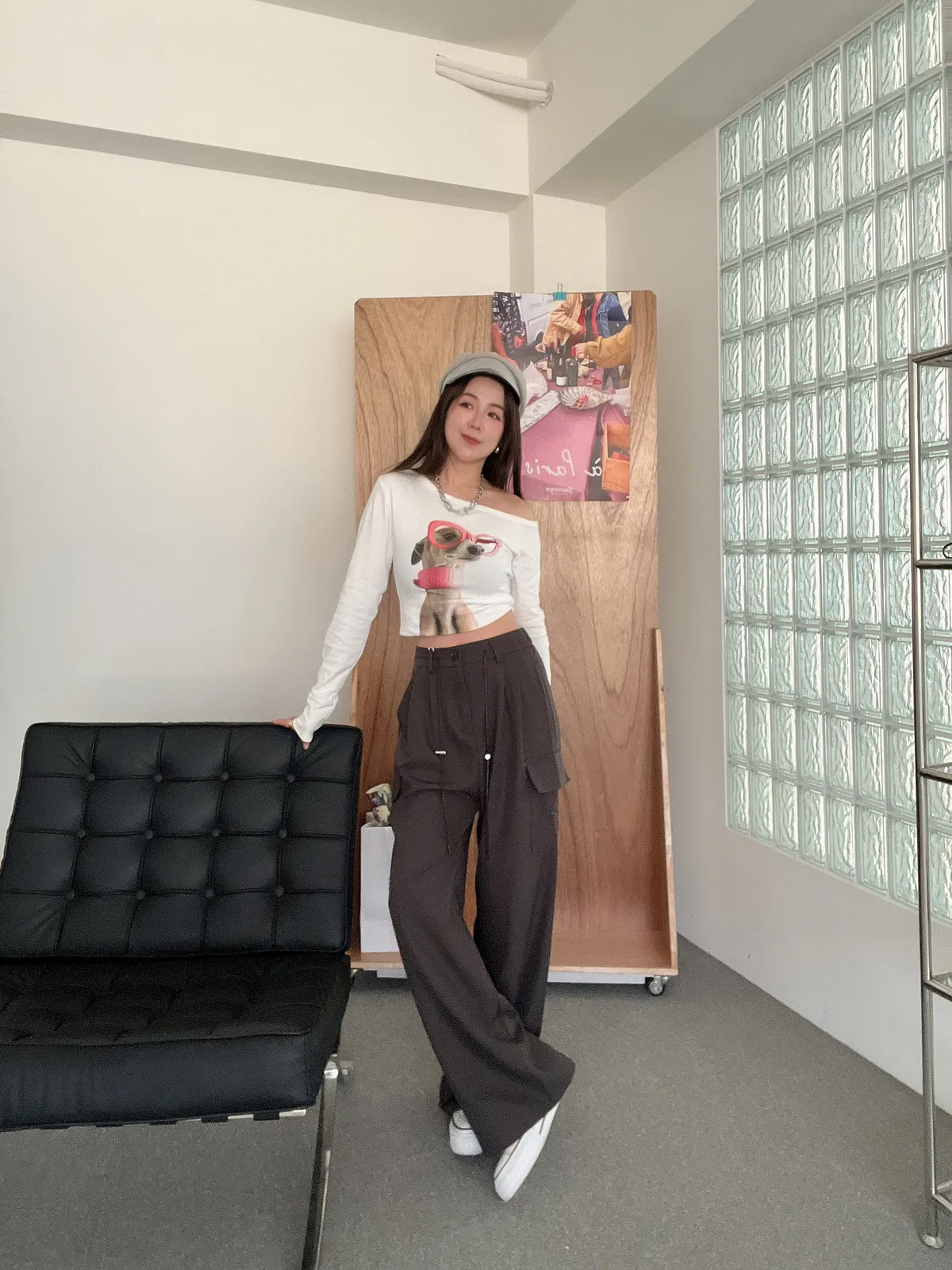時髦剪裁✂️眼鏡狗狗🐶斜肩T