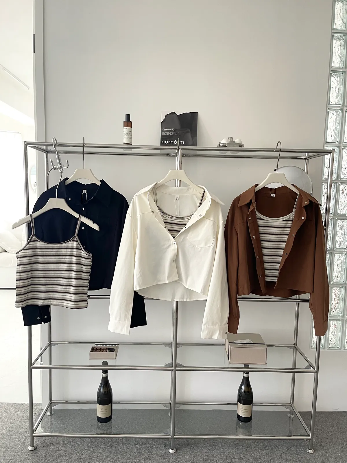 Old money💵撞色條背心+襯衫Set