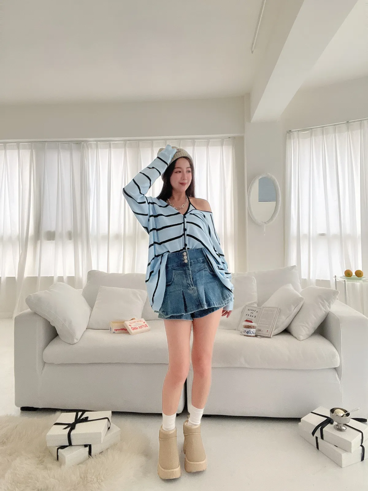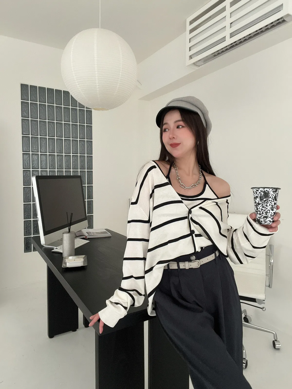 多穿法👏🏻👏🏻👏🏻掛脖條紋針織兩件式