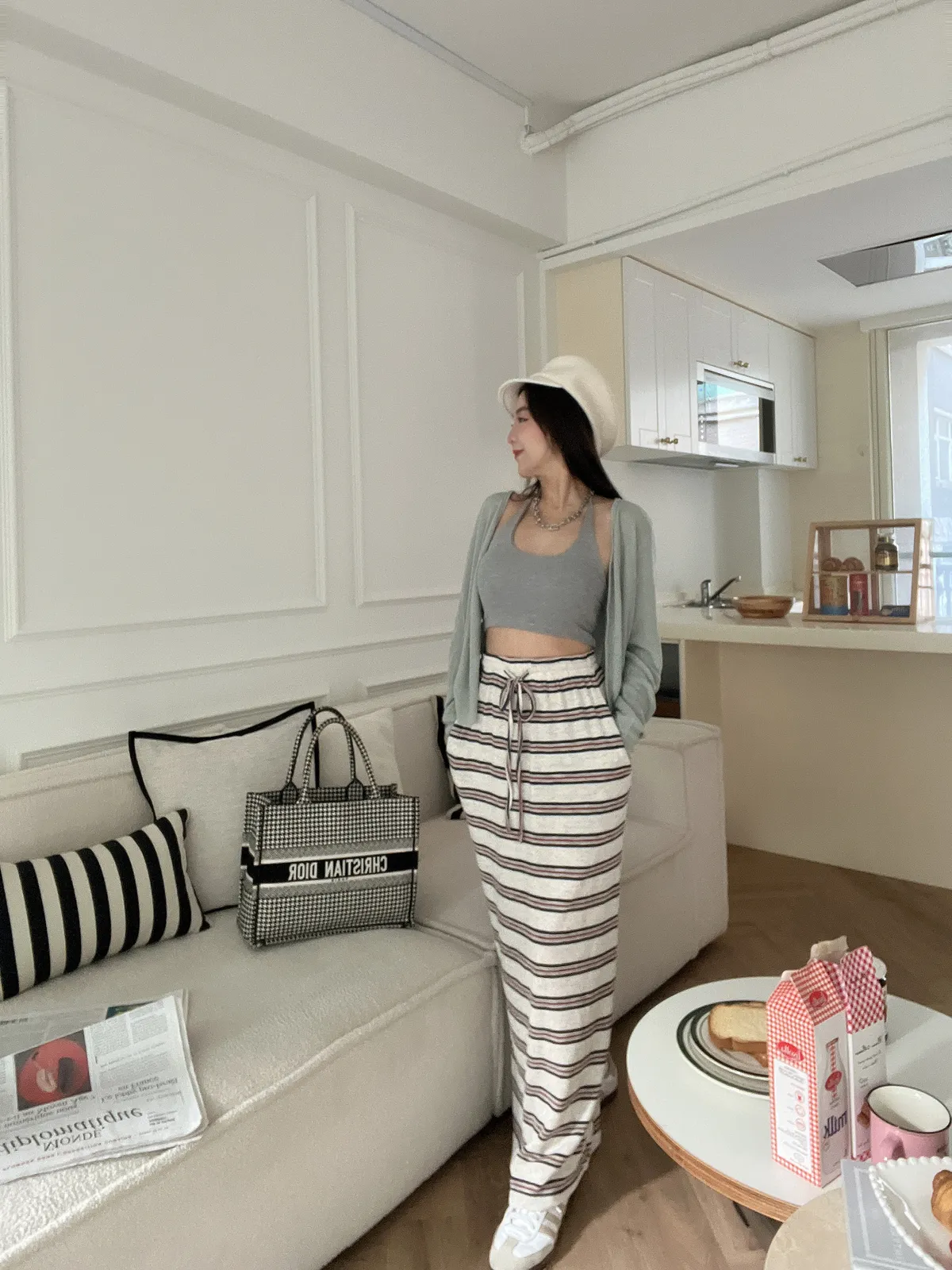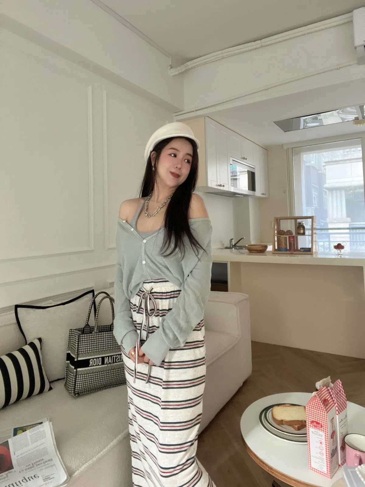 細條紋撞色針織長裙