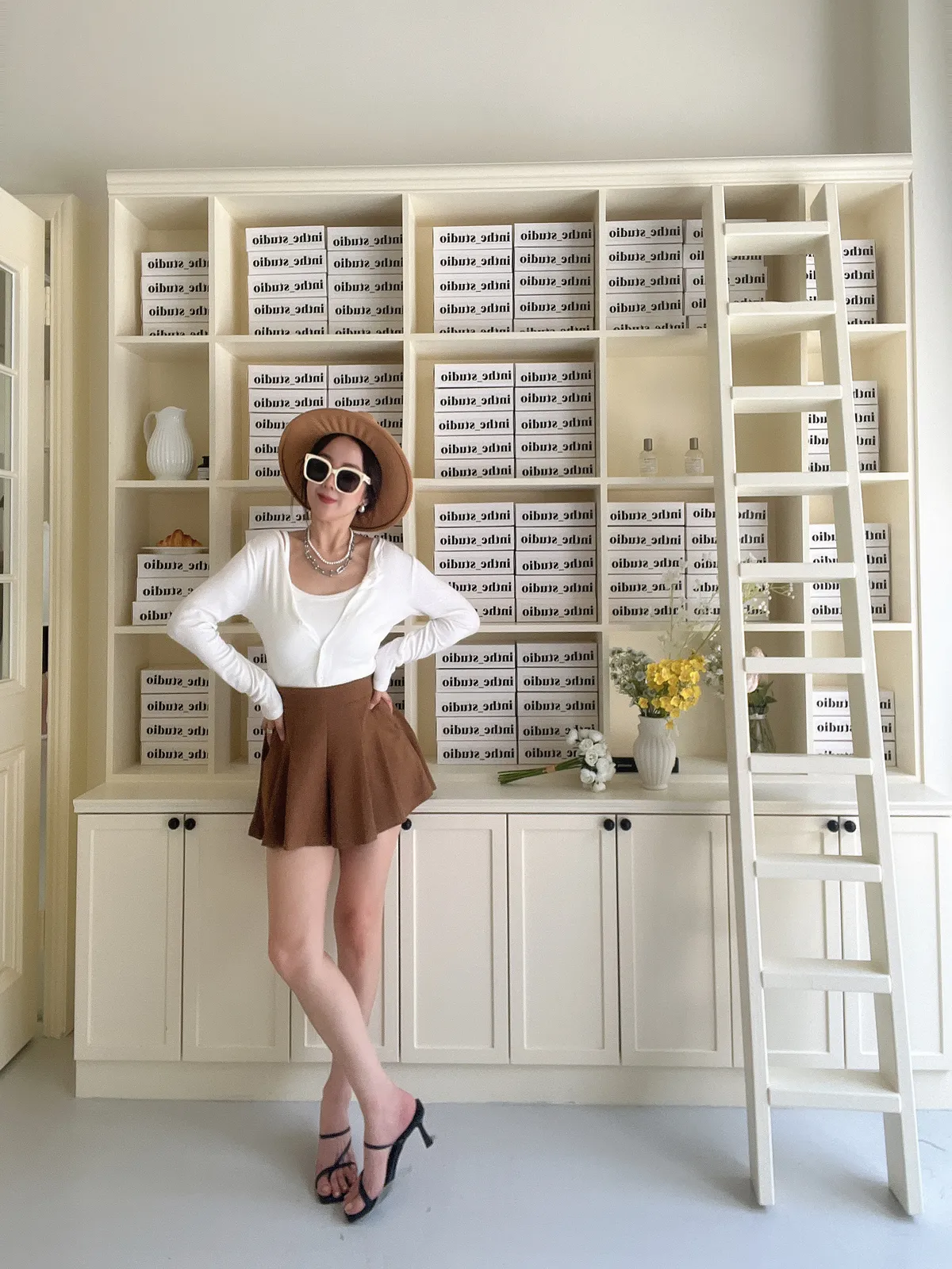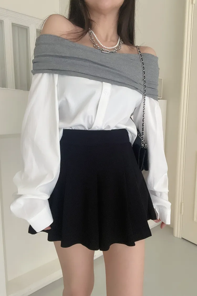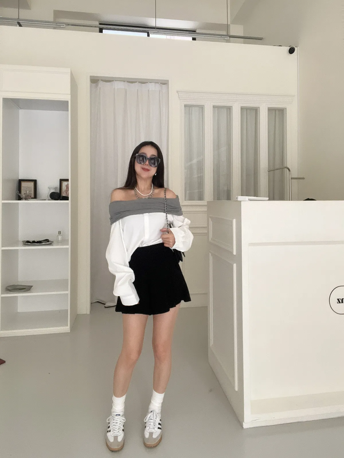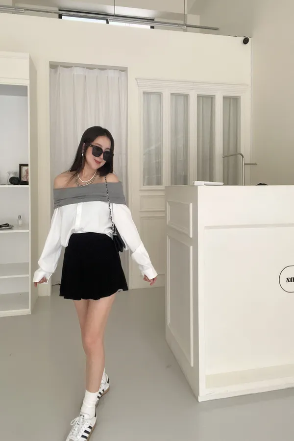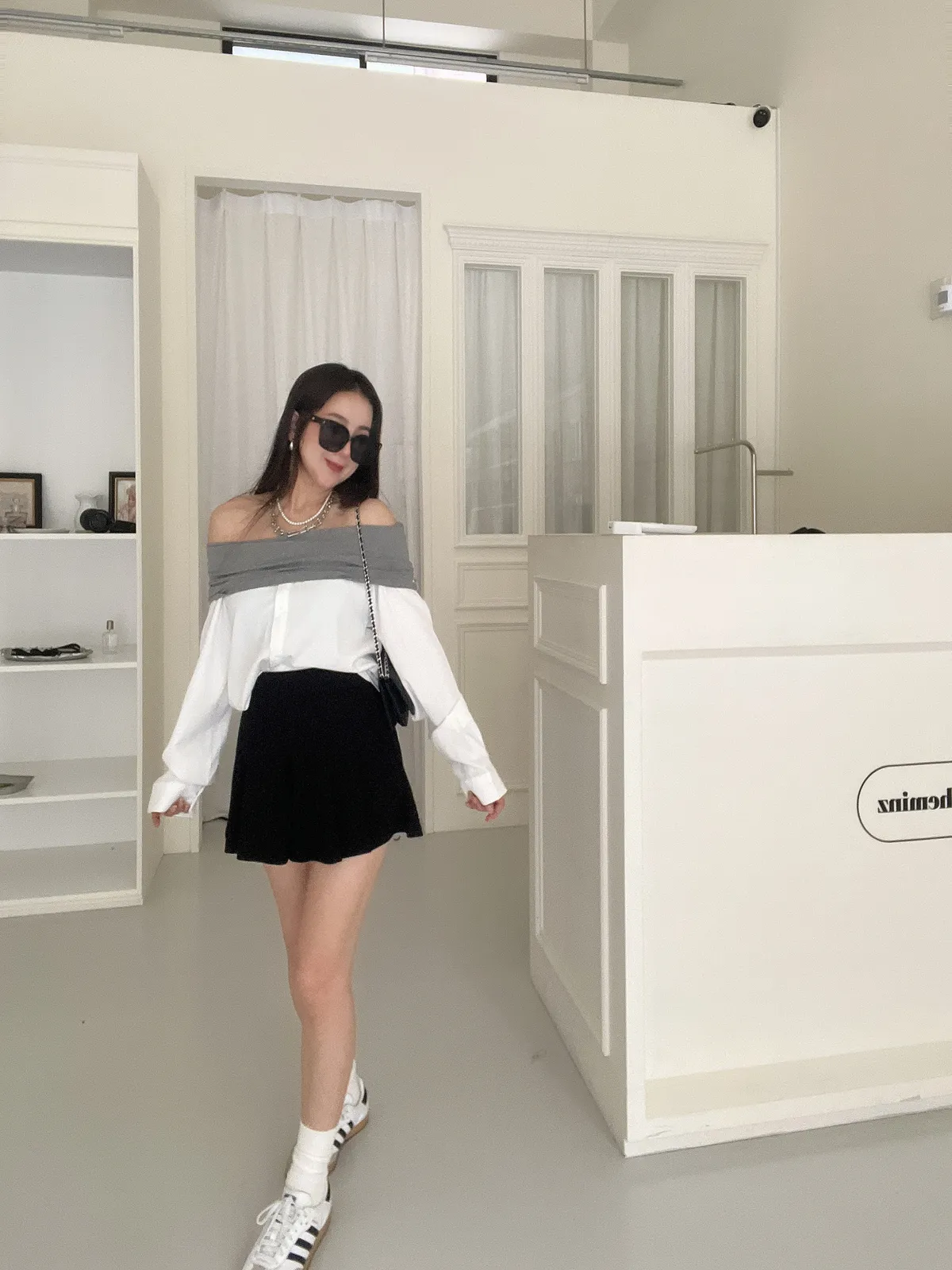 時尚感💫大翻領蜜桃絨拼接襯衫