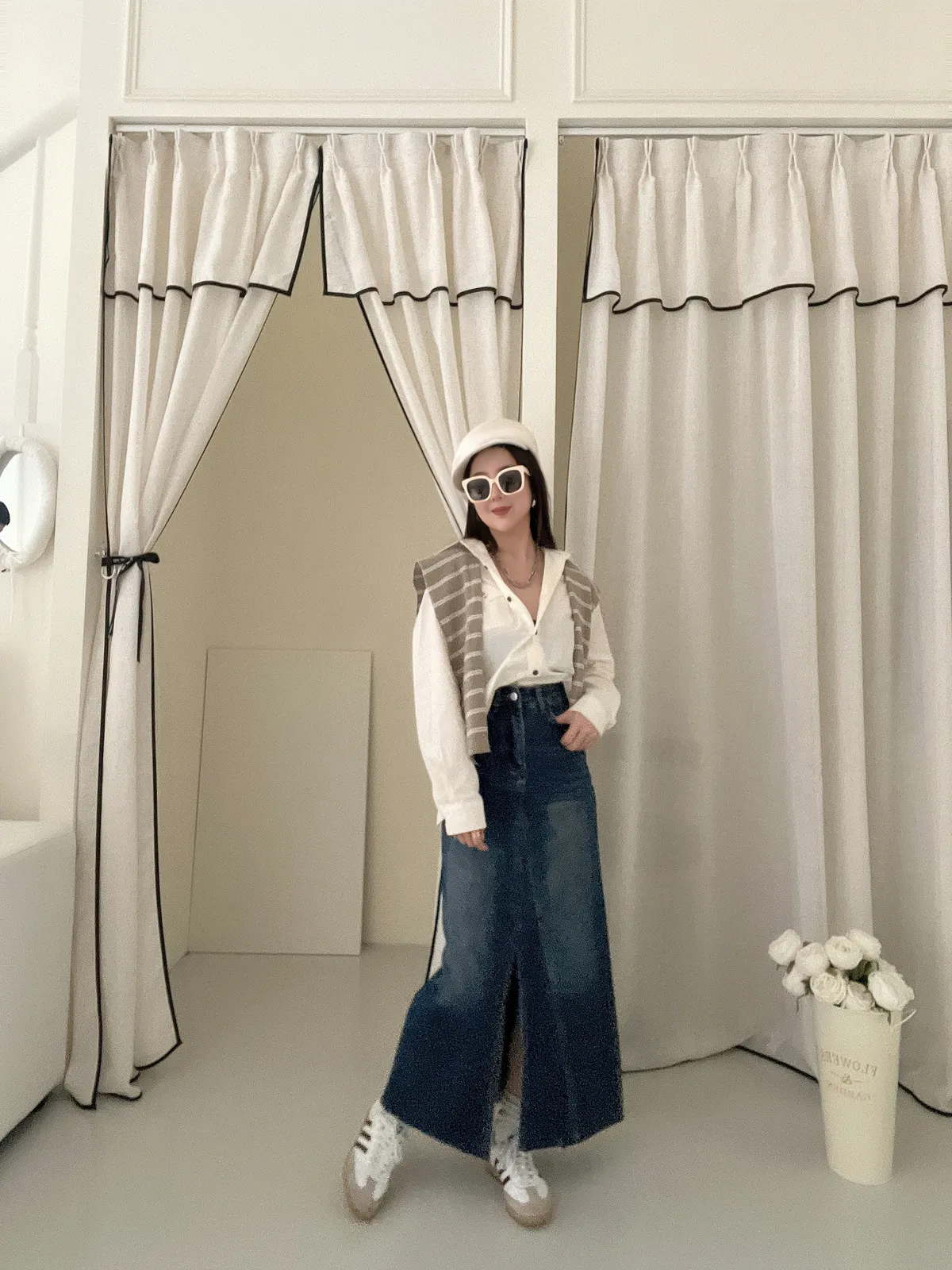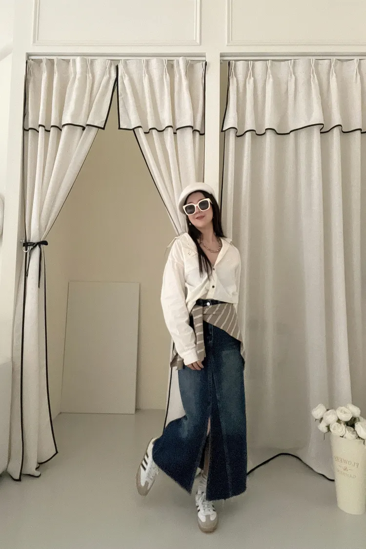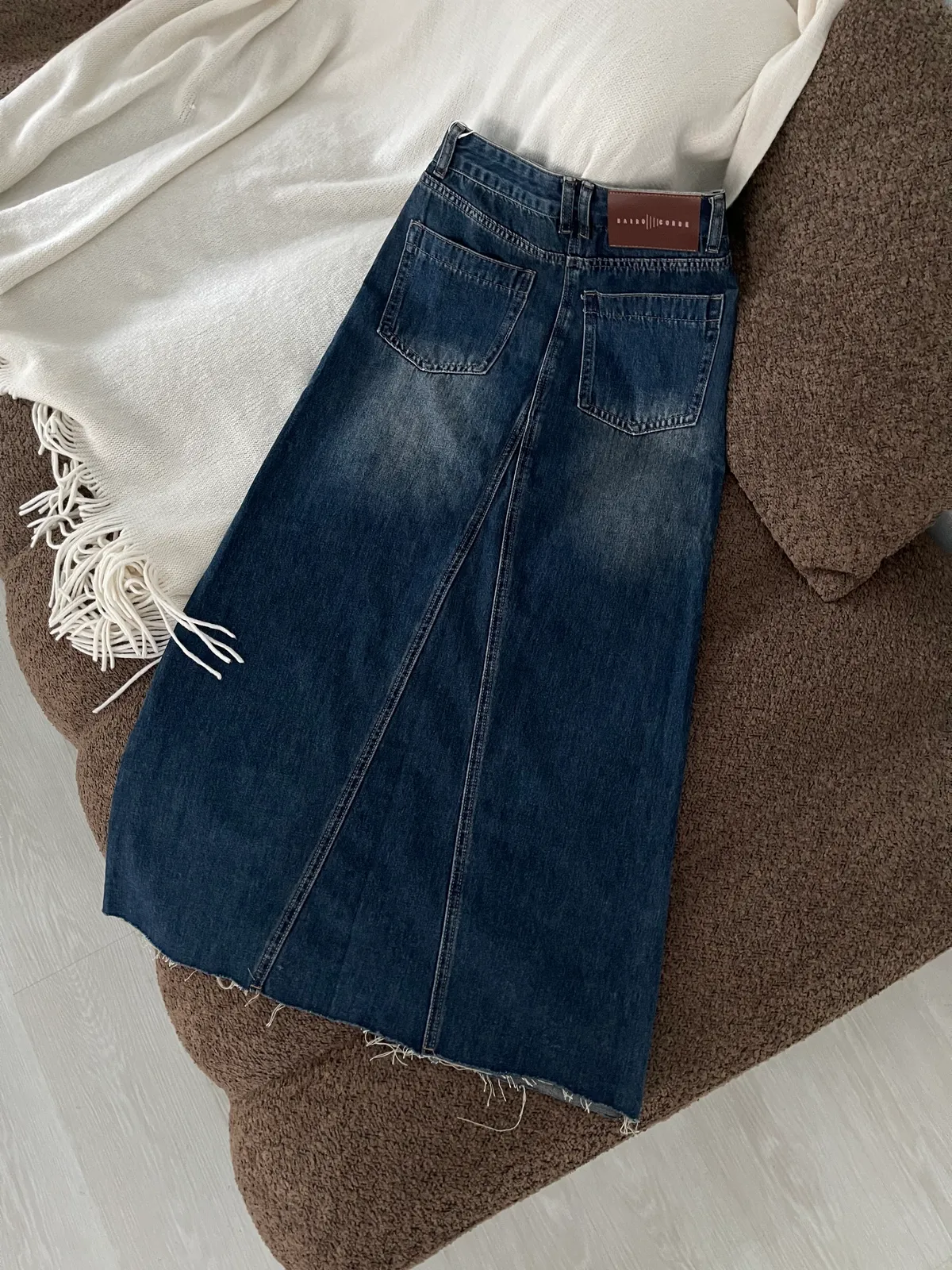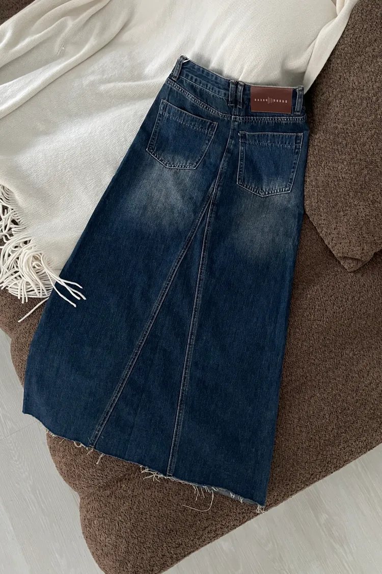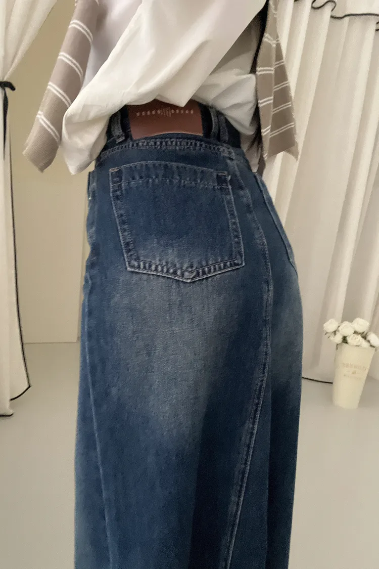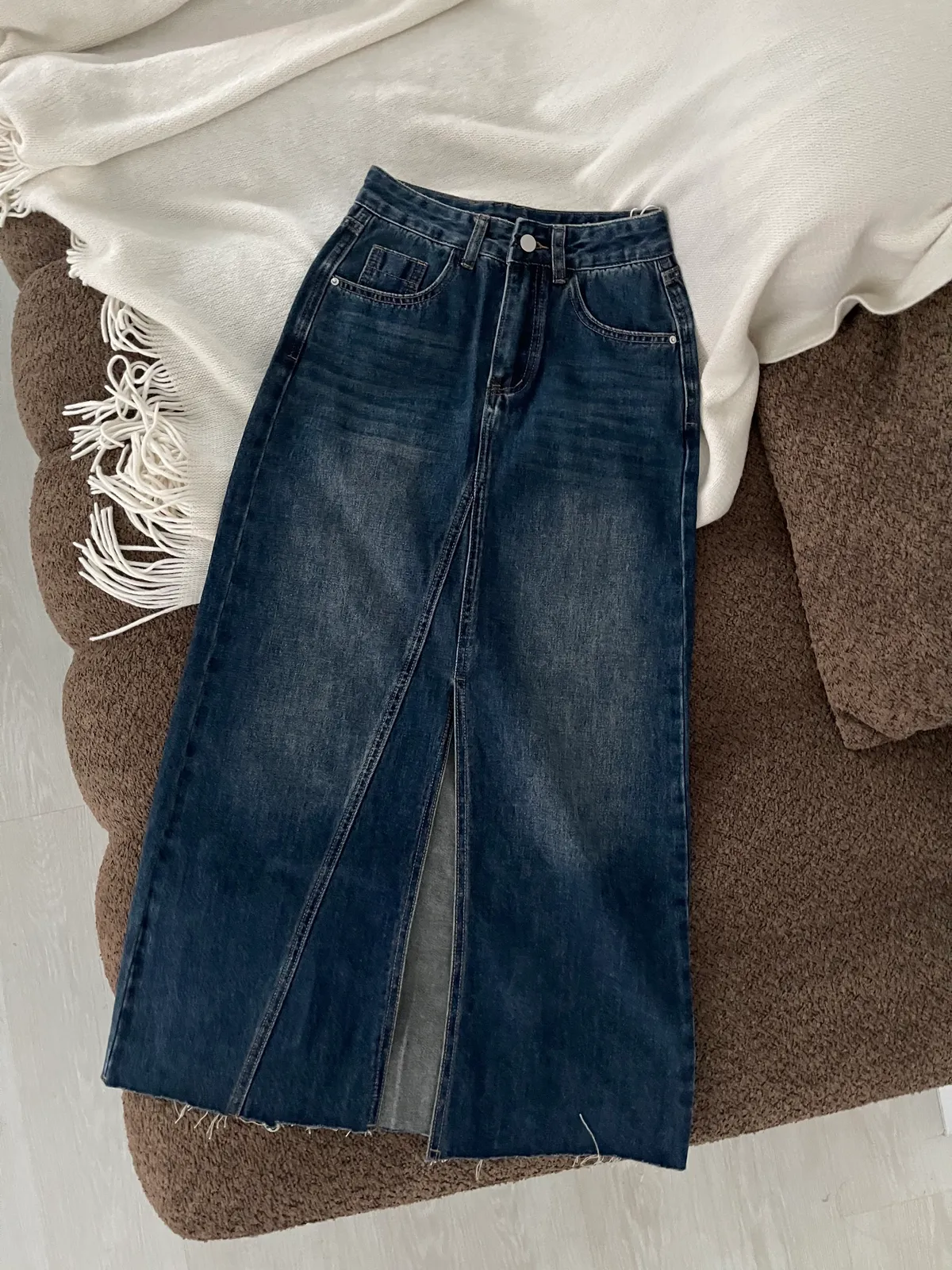 剪裁感✂️刷色前開衩牛仔長裙
