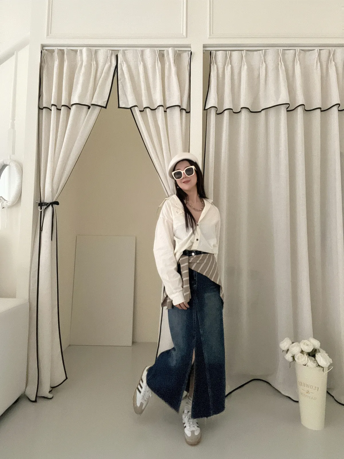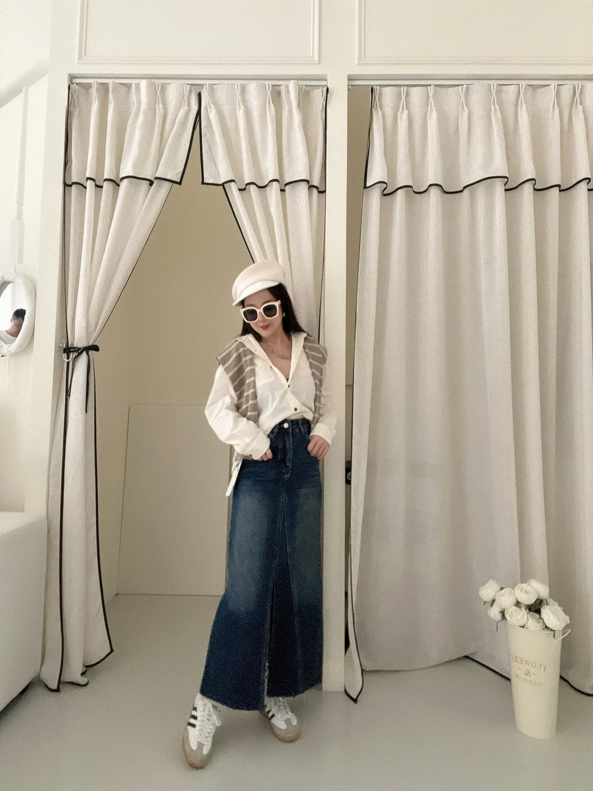 條紋披肩襯衫