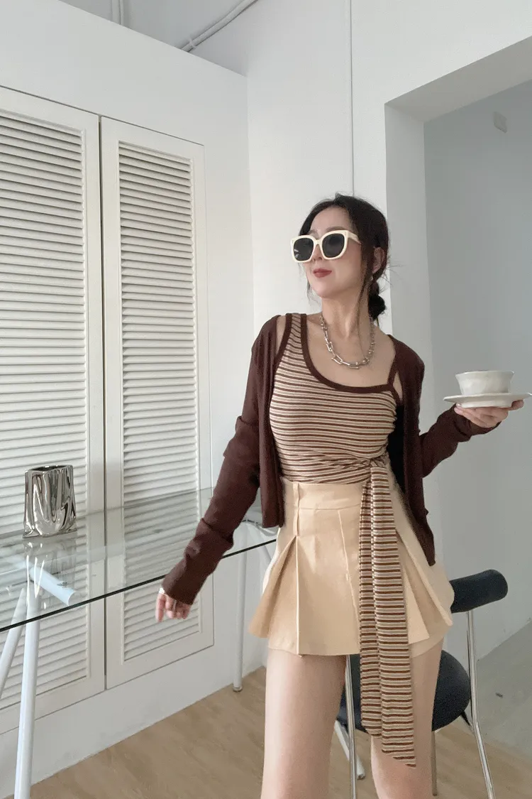 可甜可鹹🥯造型綁腰背心+薄外罩SET