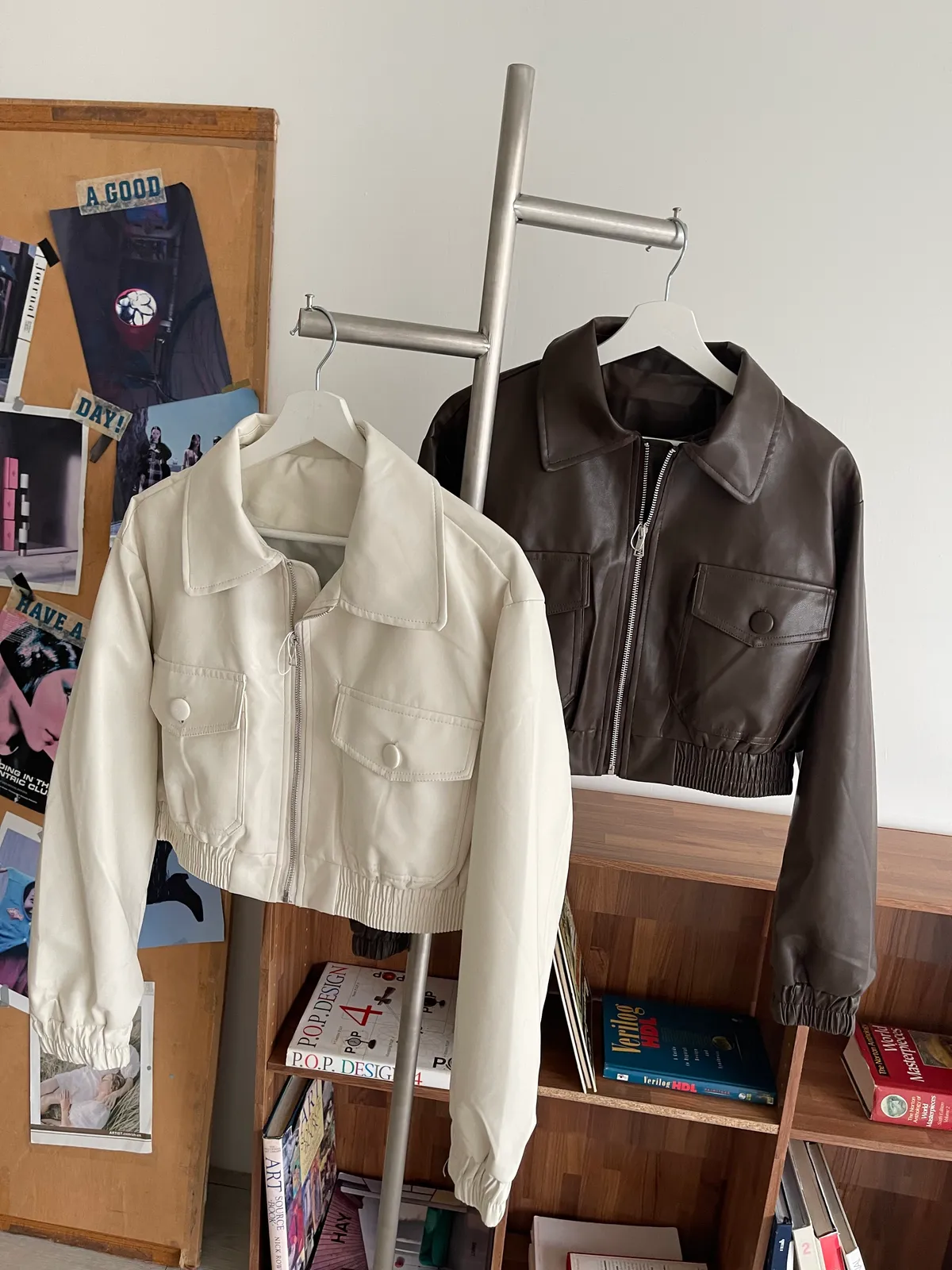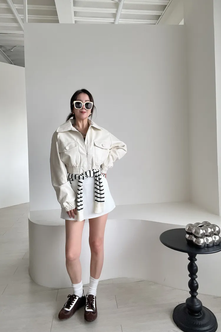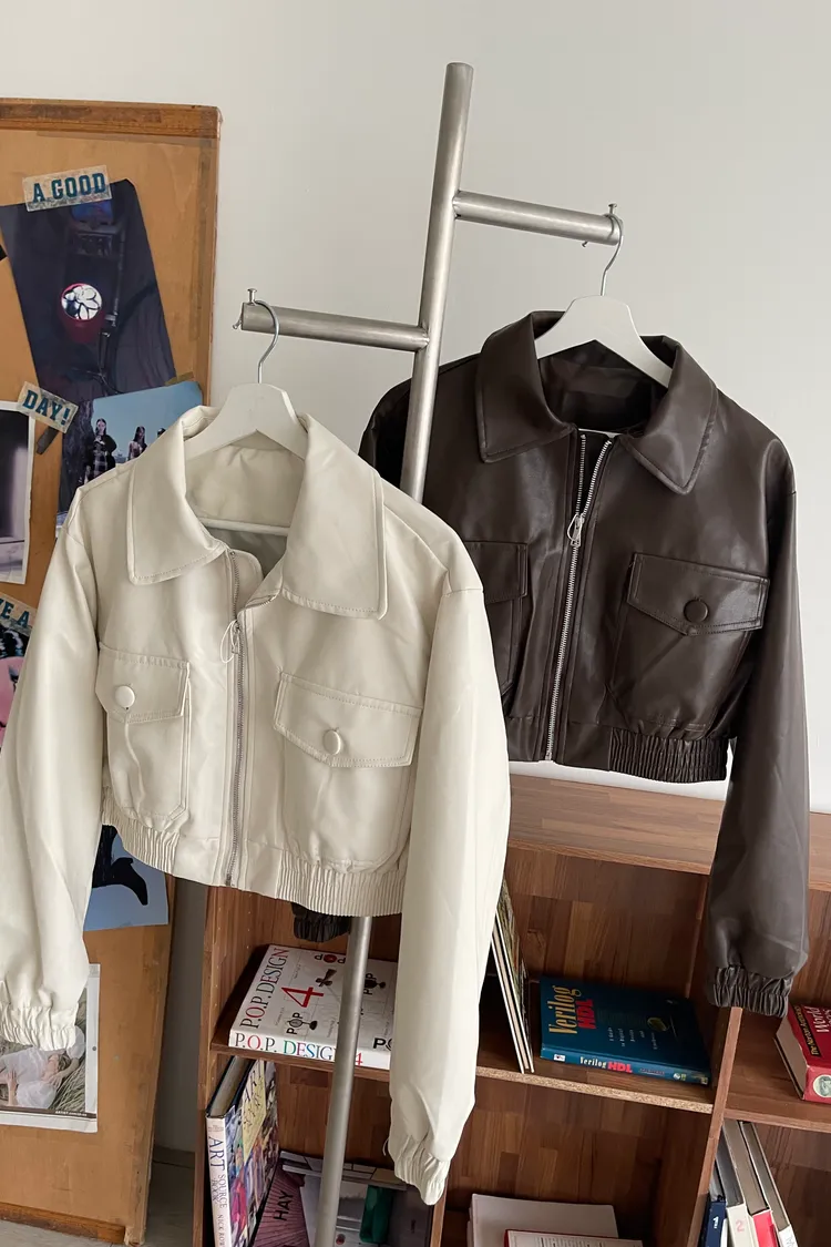 翻領短版皮外套