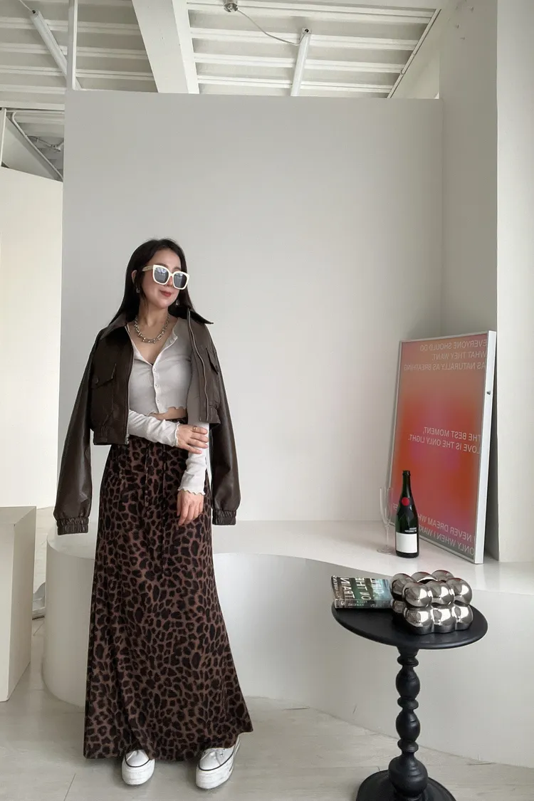 完美版型💯腰抽繩豹紋魚尾裙
