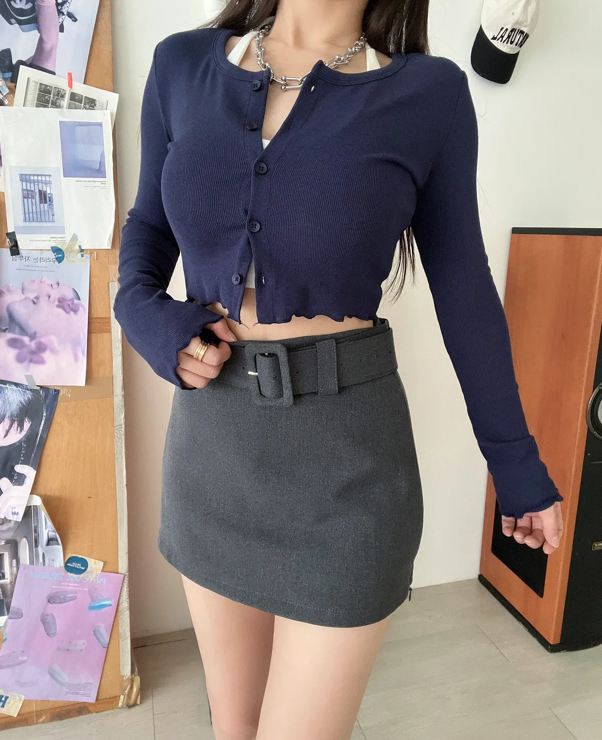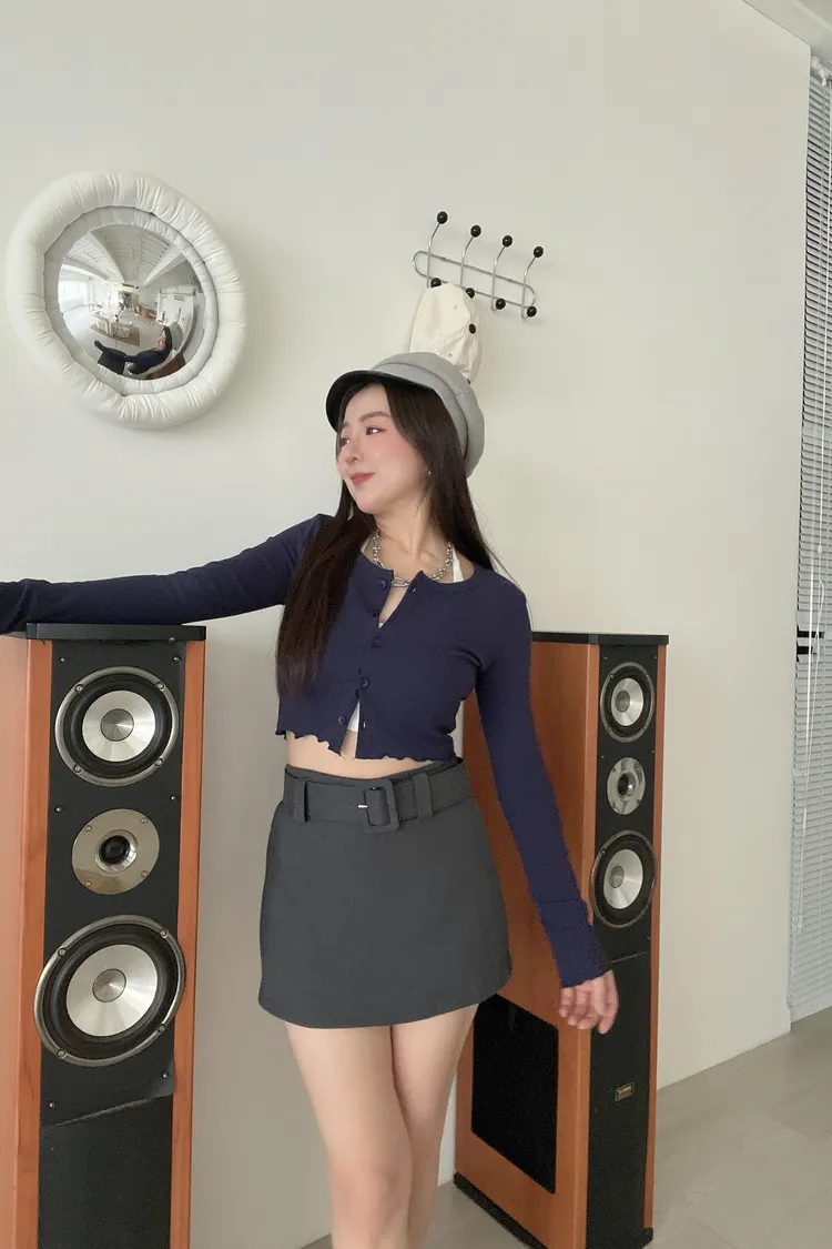 挺料✨側拉鍊開衩A字短褲裙(附寬版腰帶)