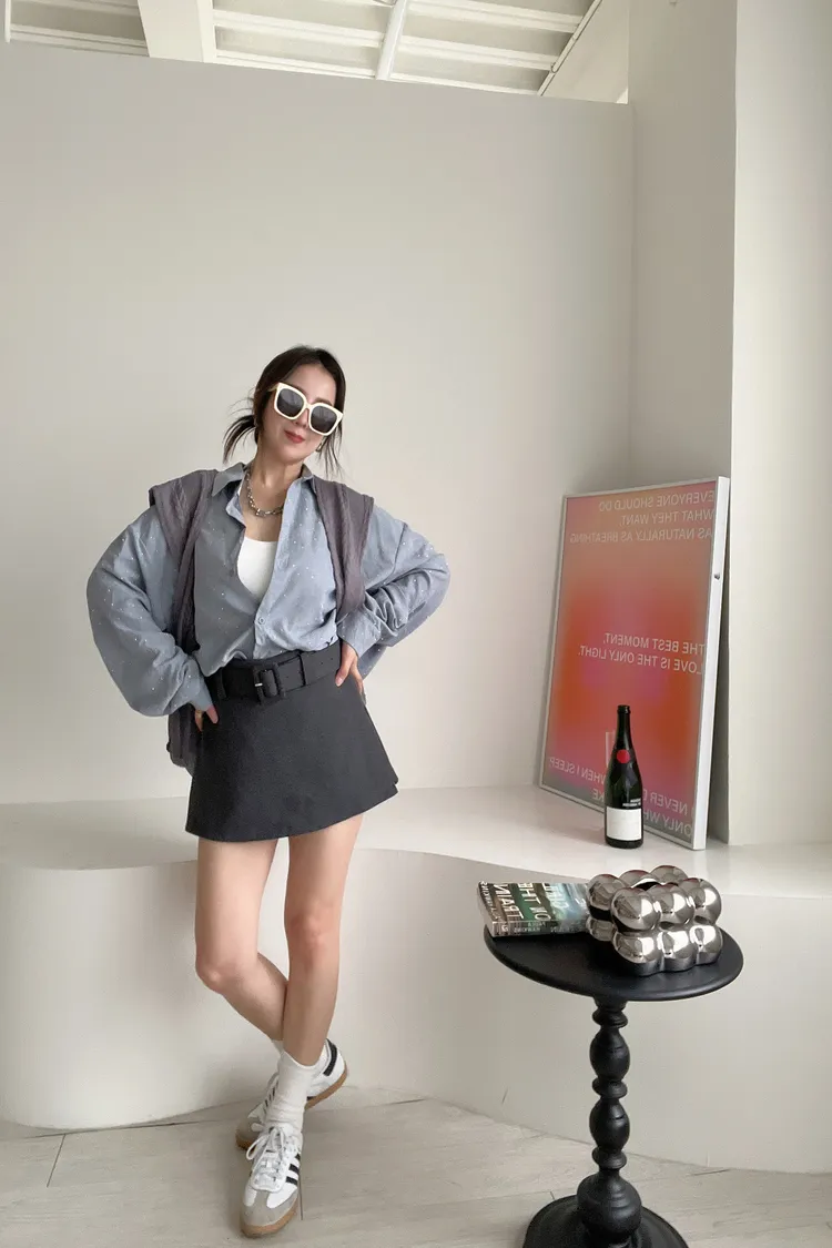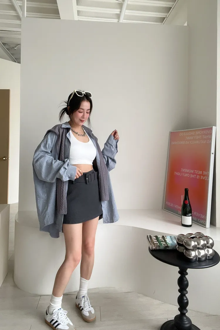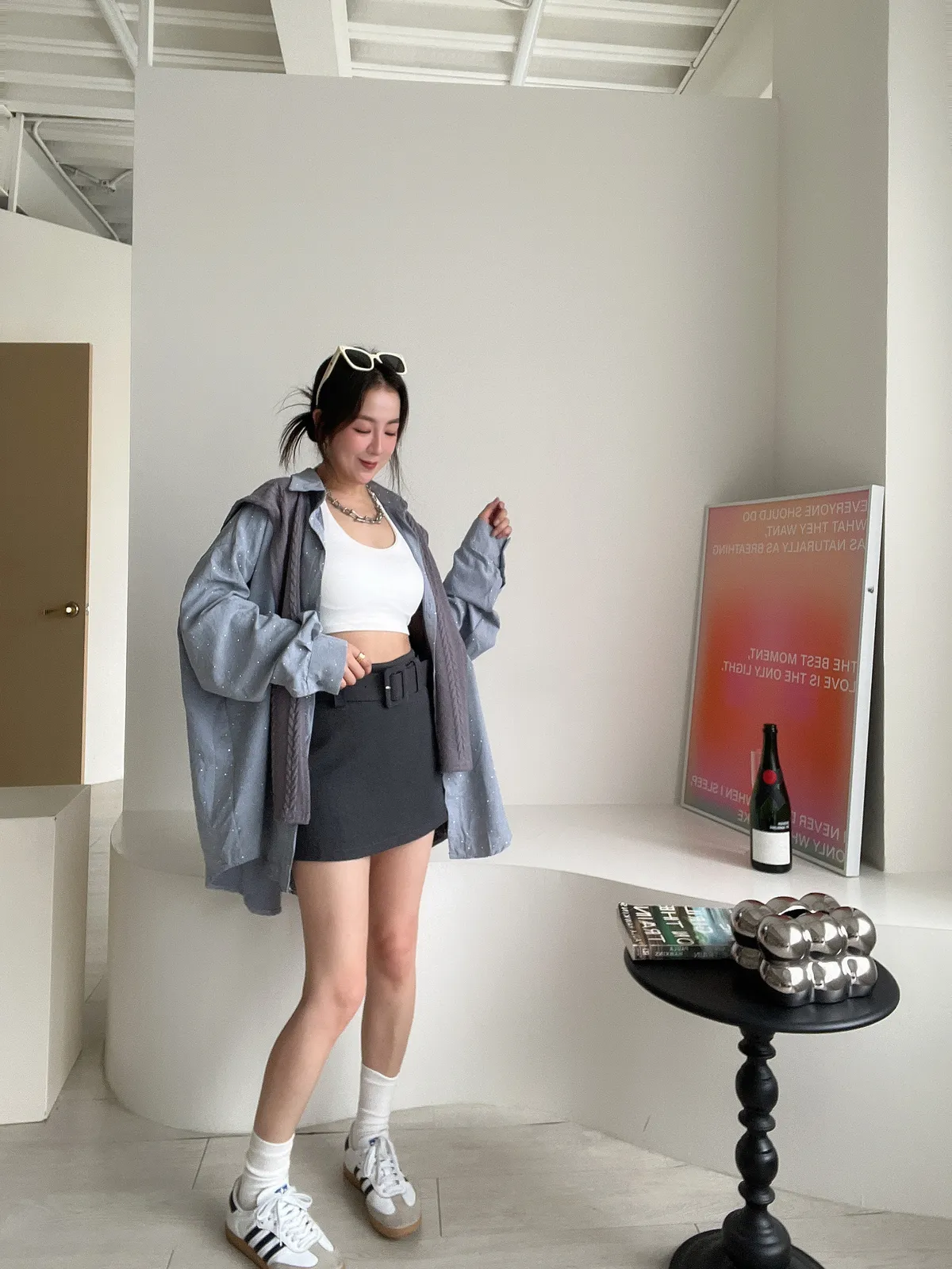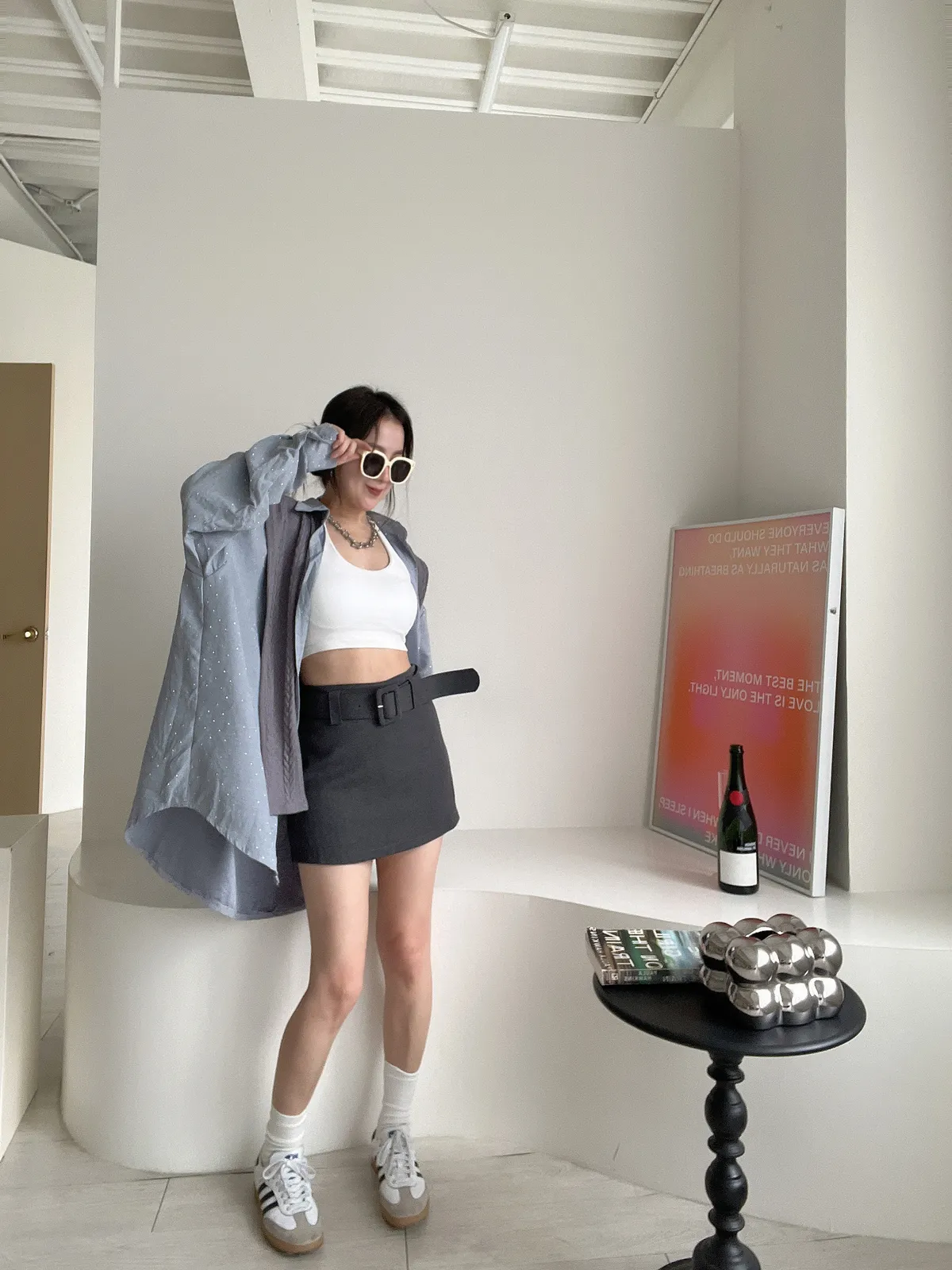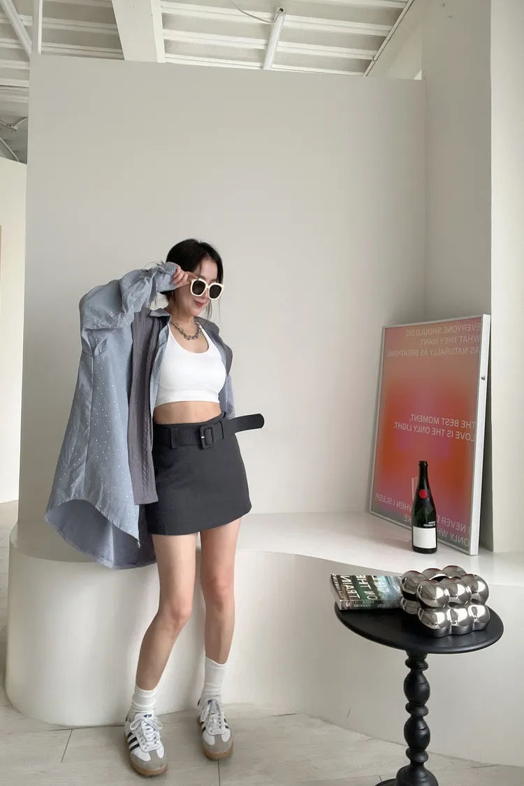 挺料✨側拉鍊開衩A字短褲裙(附寬版腰帶)
