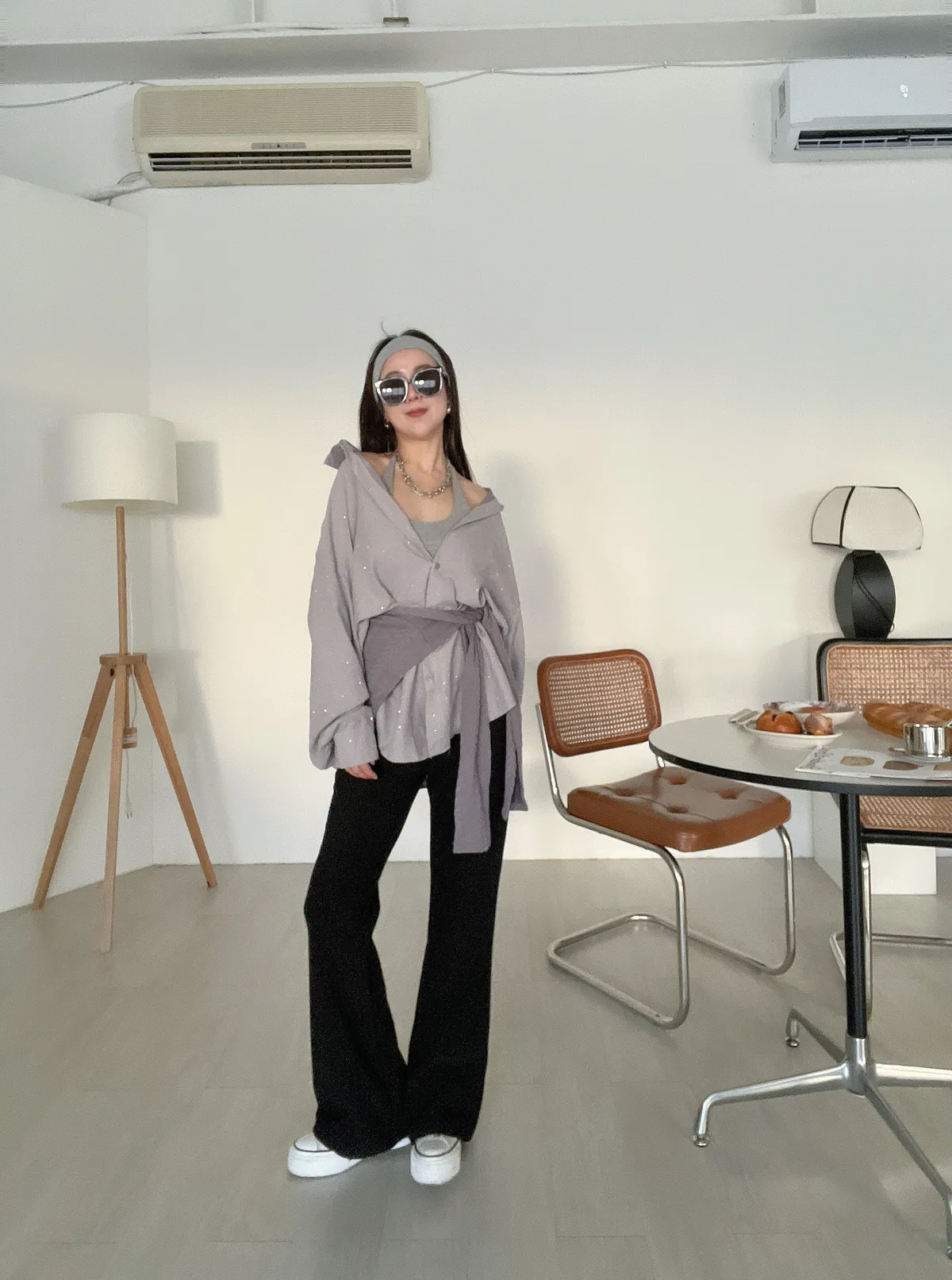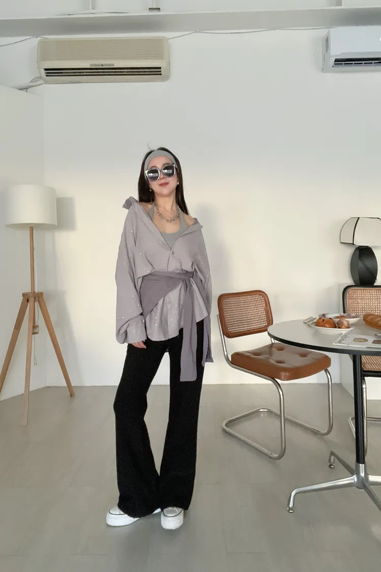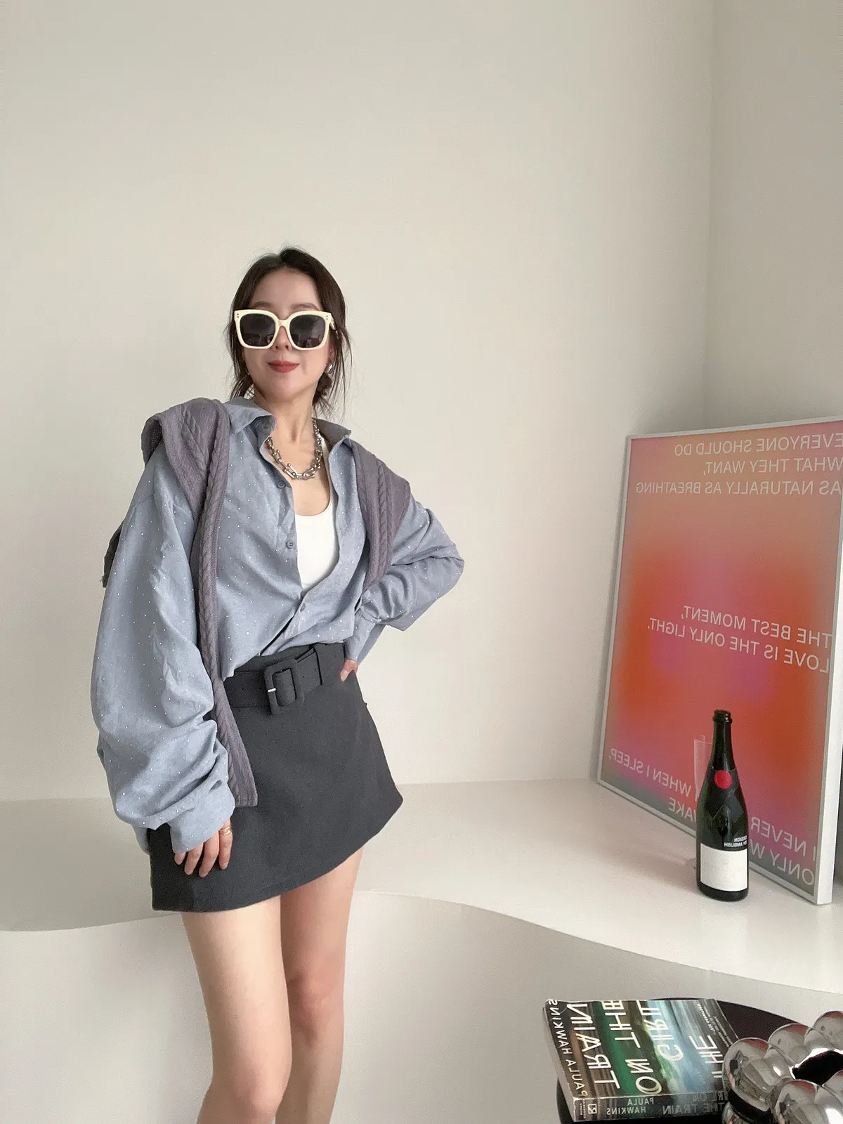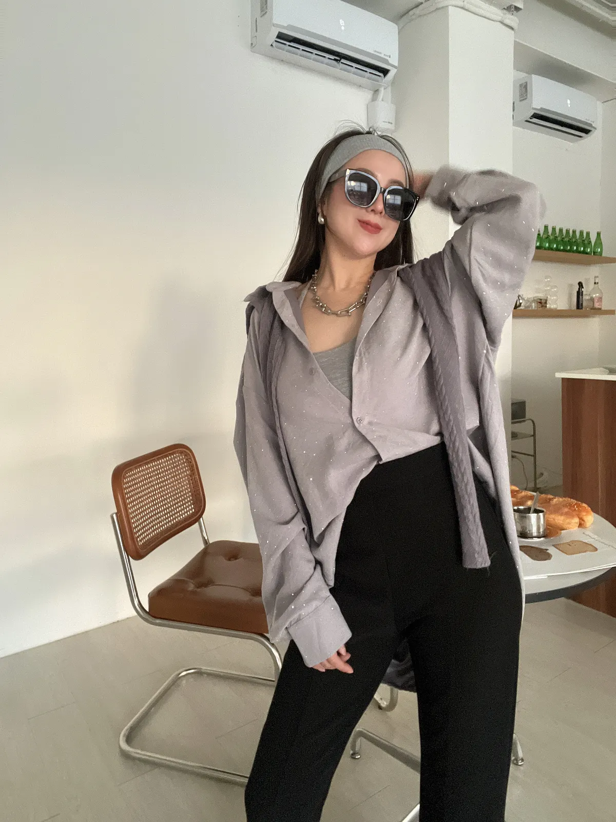 低調奢華✨小燙鑽造型襯衫+麻花編織披肩Set