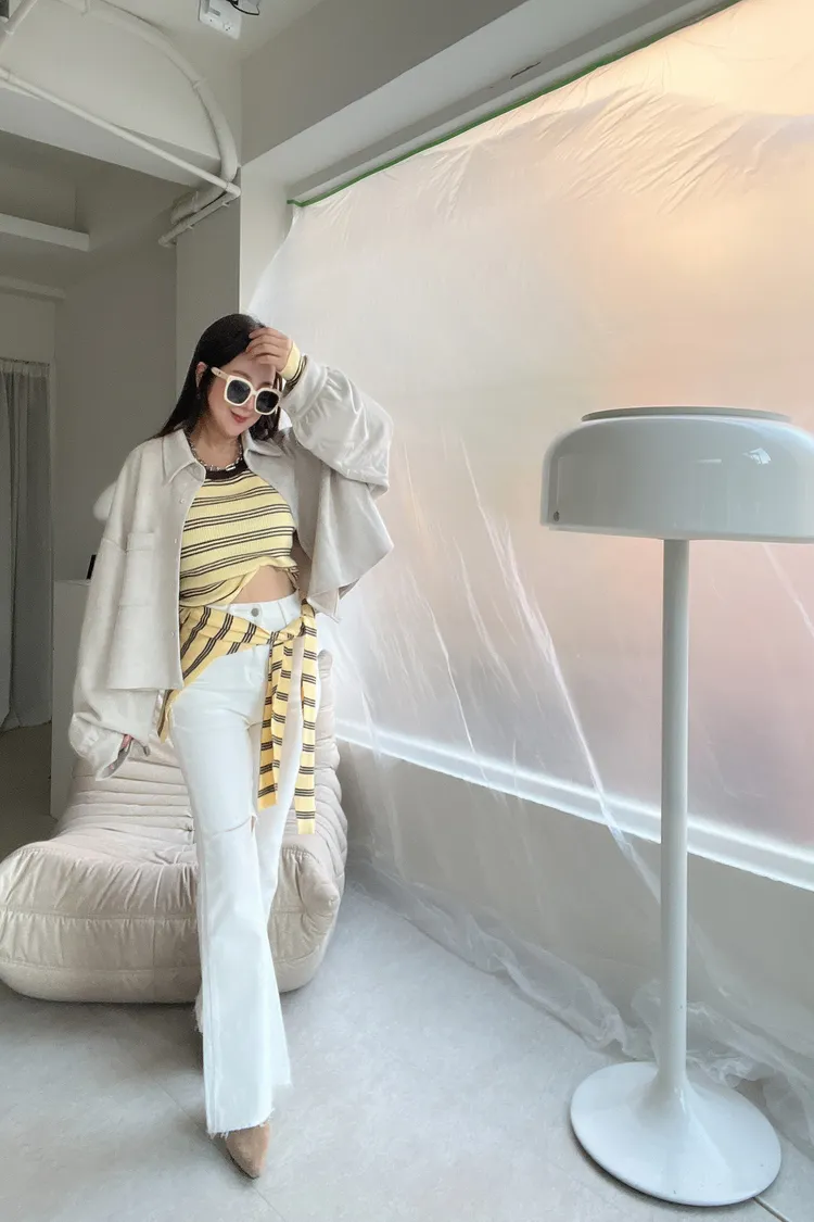 捲邊彈力螺紋排釦小外套