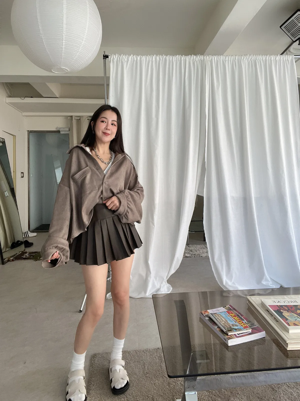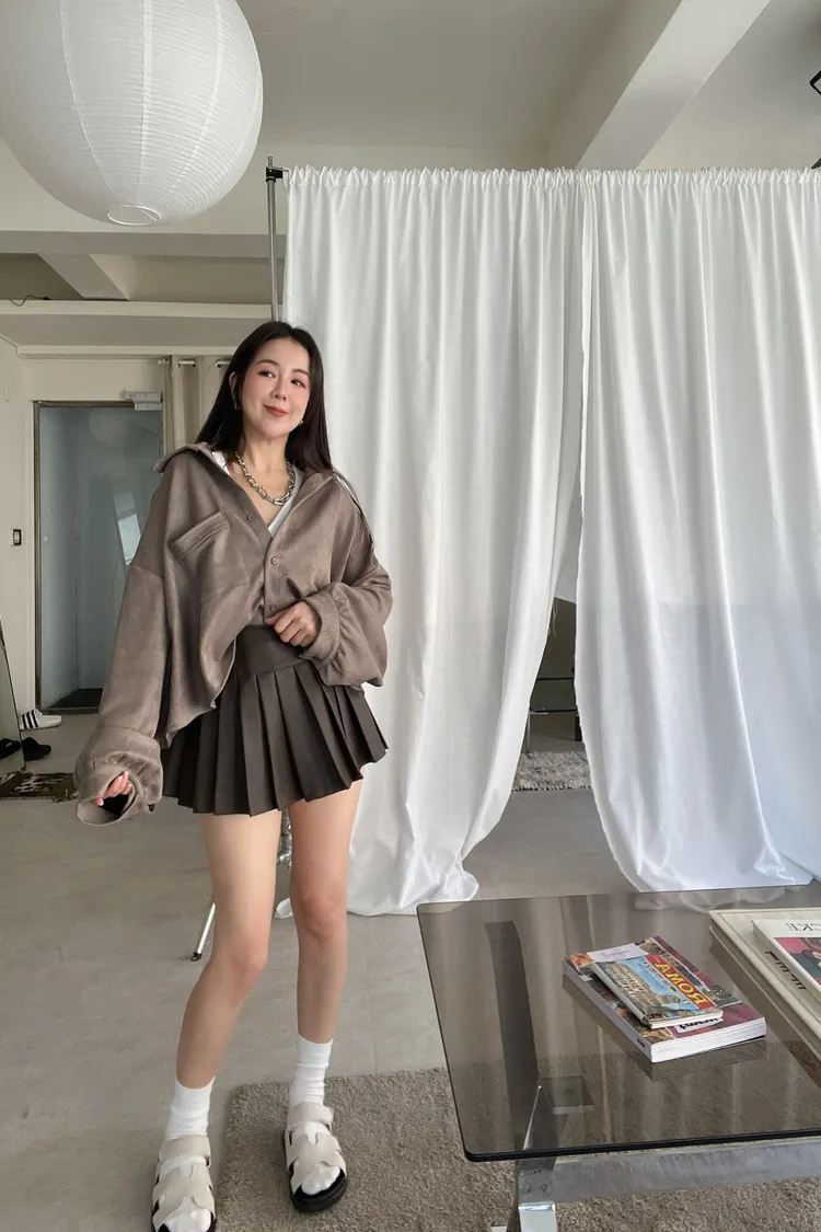 霧面百褶皮裙