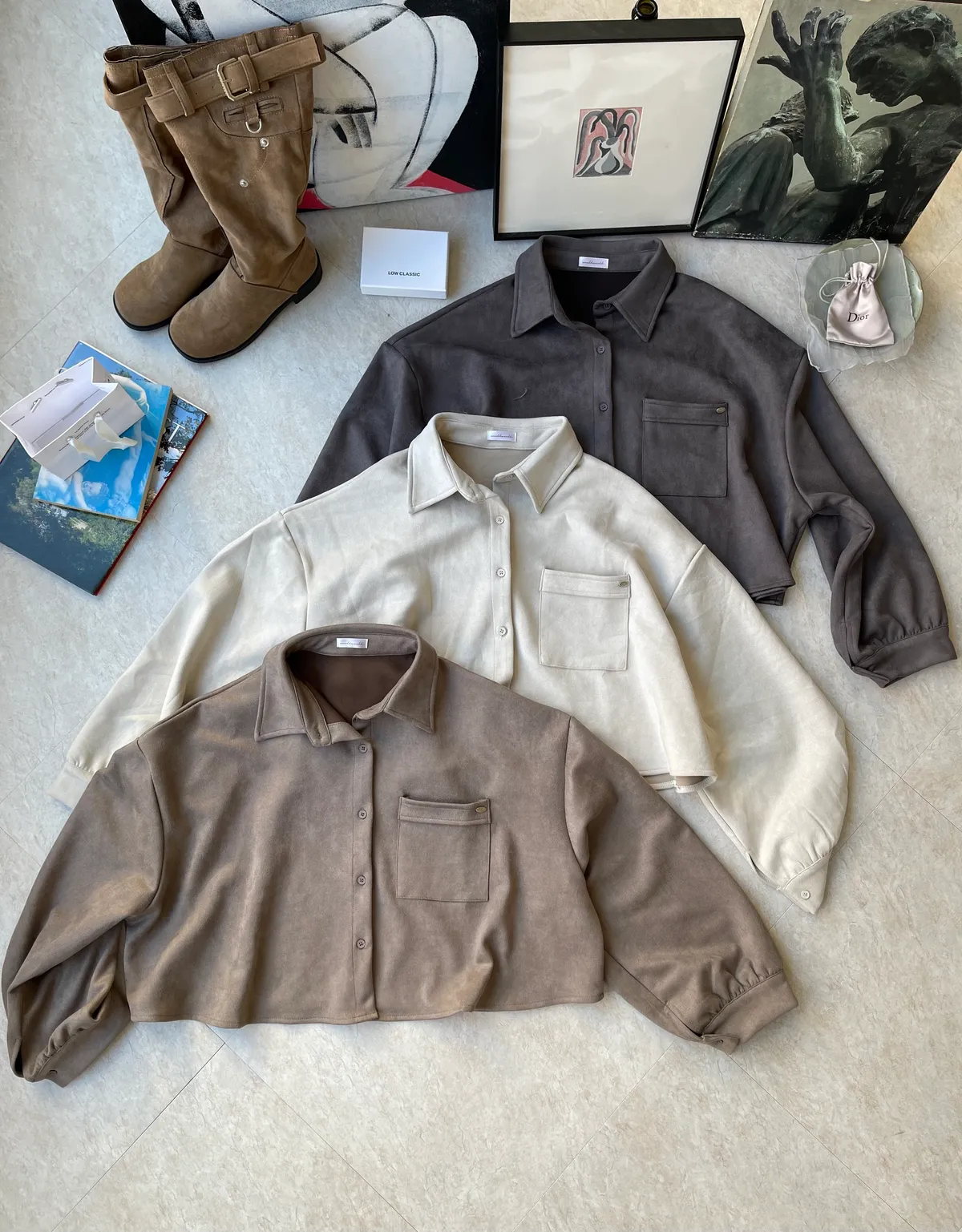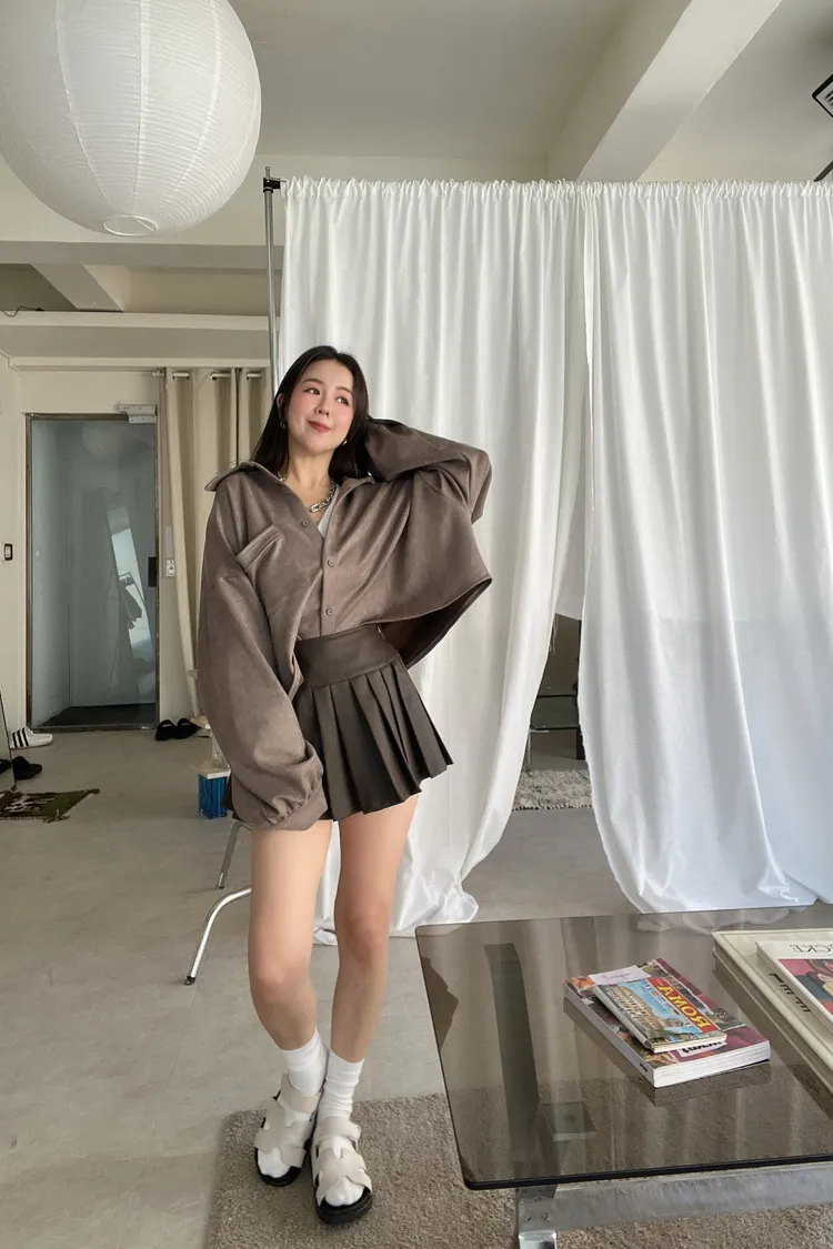 短版口袋麂皮襯衫