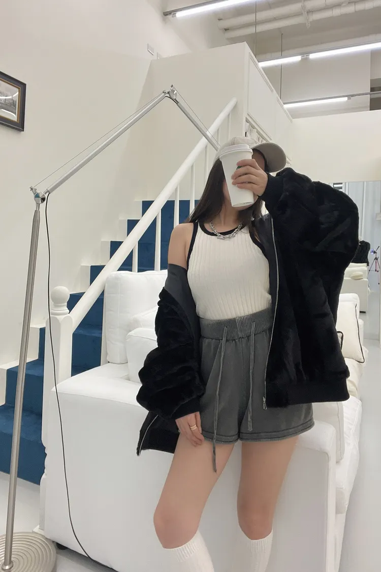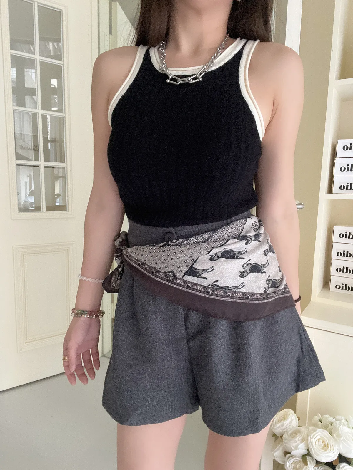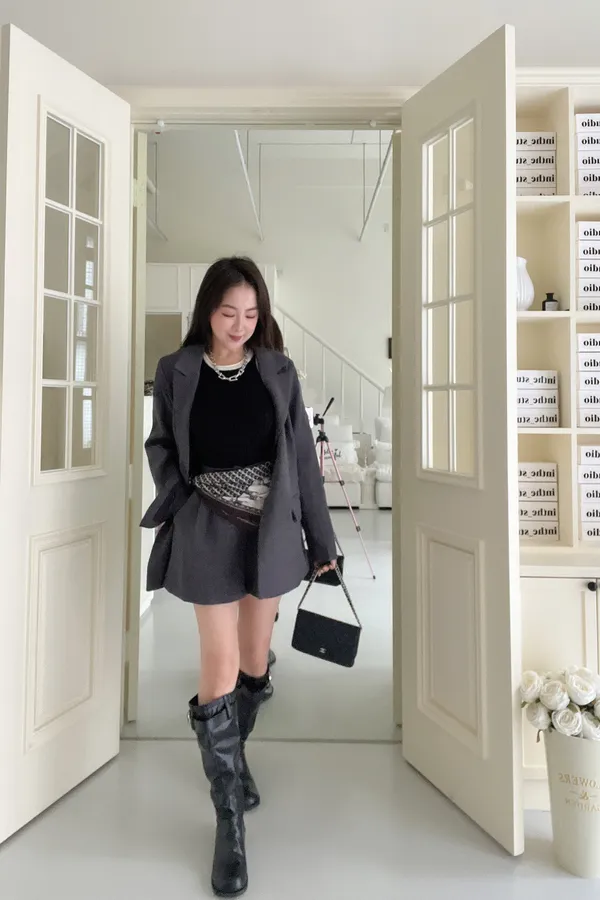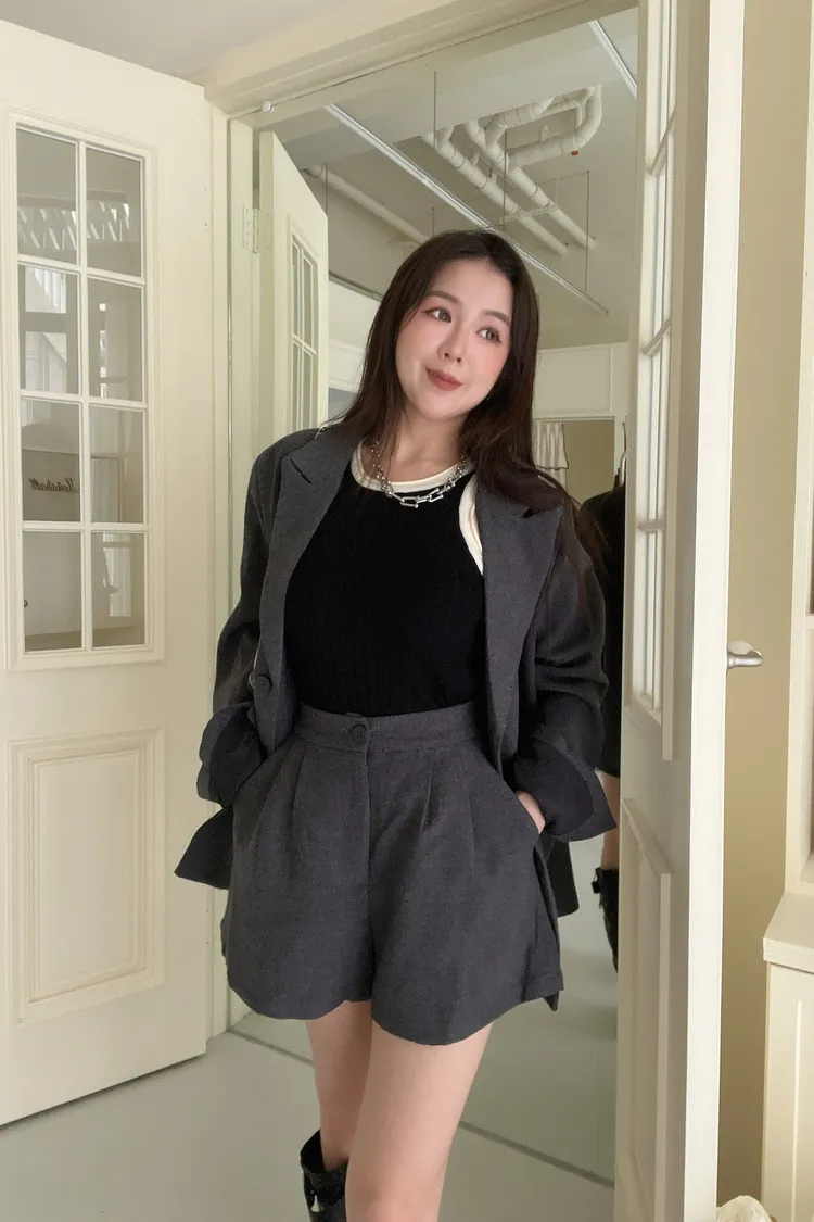 高級感💄磨毛料劍領西裝外+短褲+絲巾Set