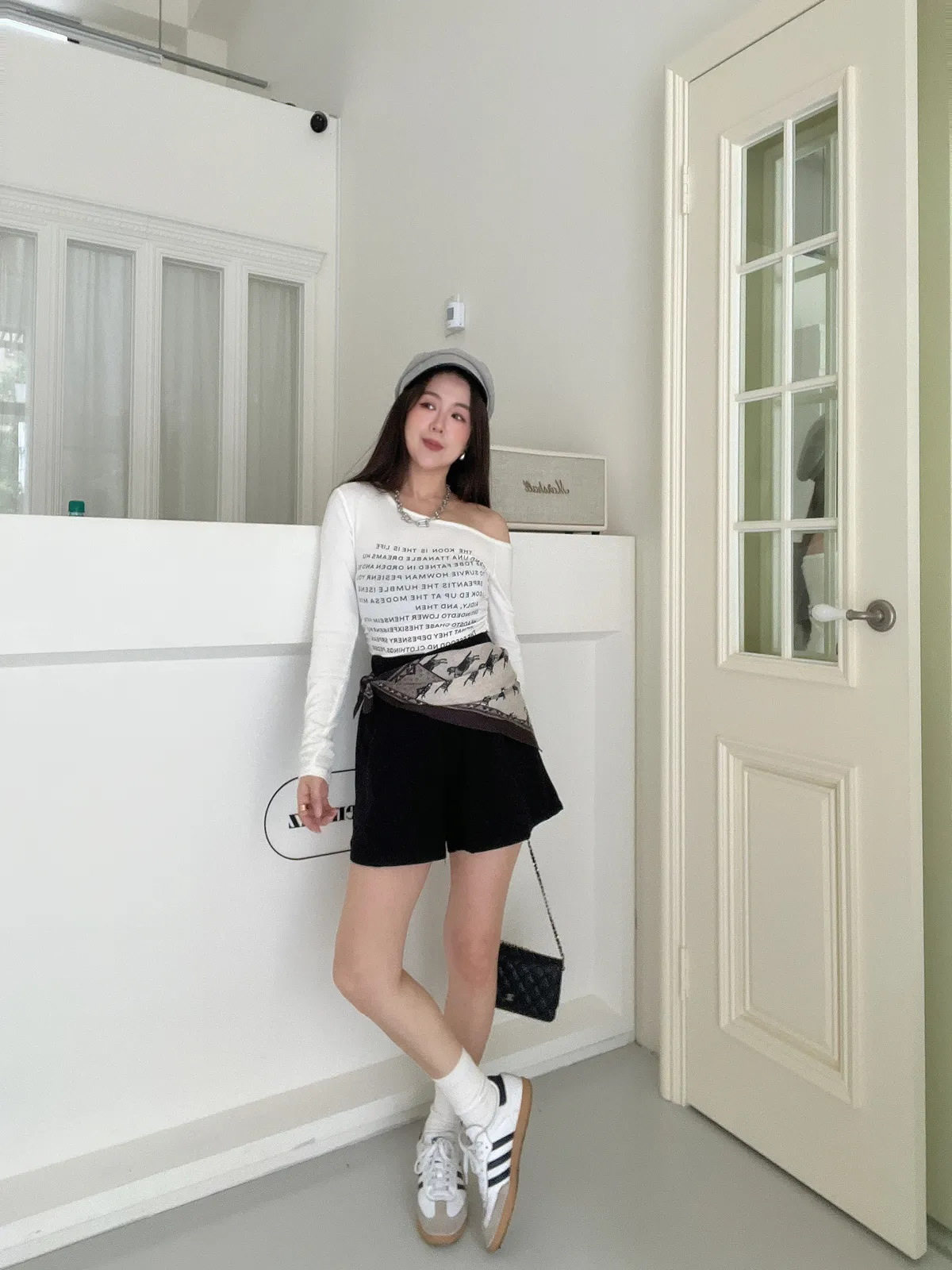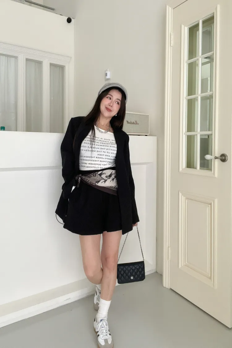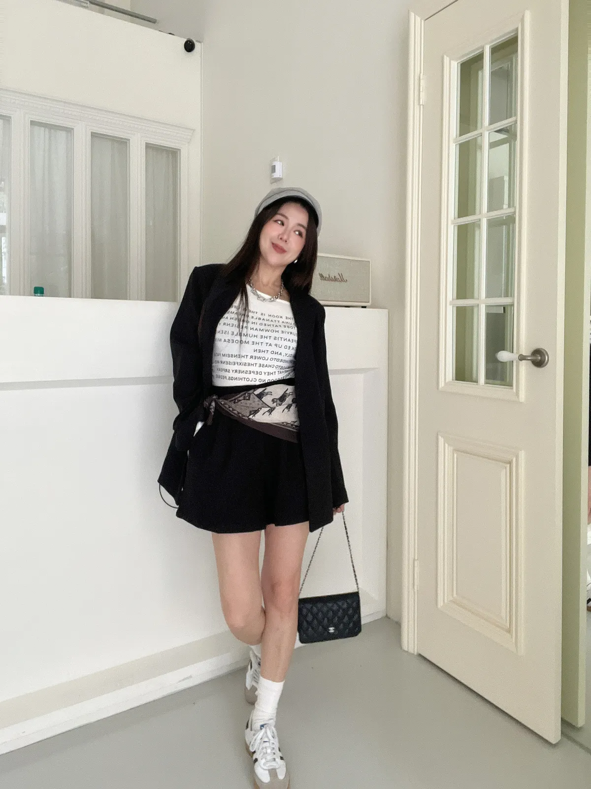 高級感💄磨毛料劍領西裝外+短褲+絲巾Set