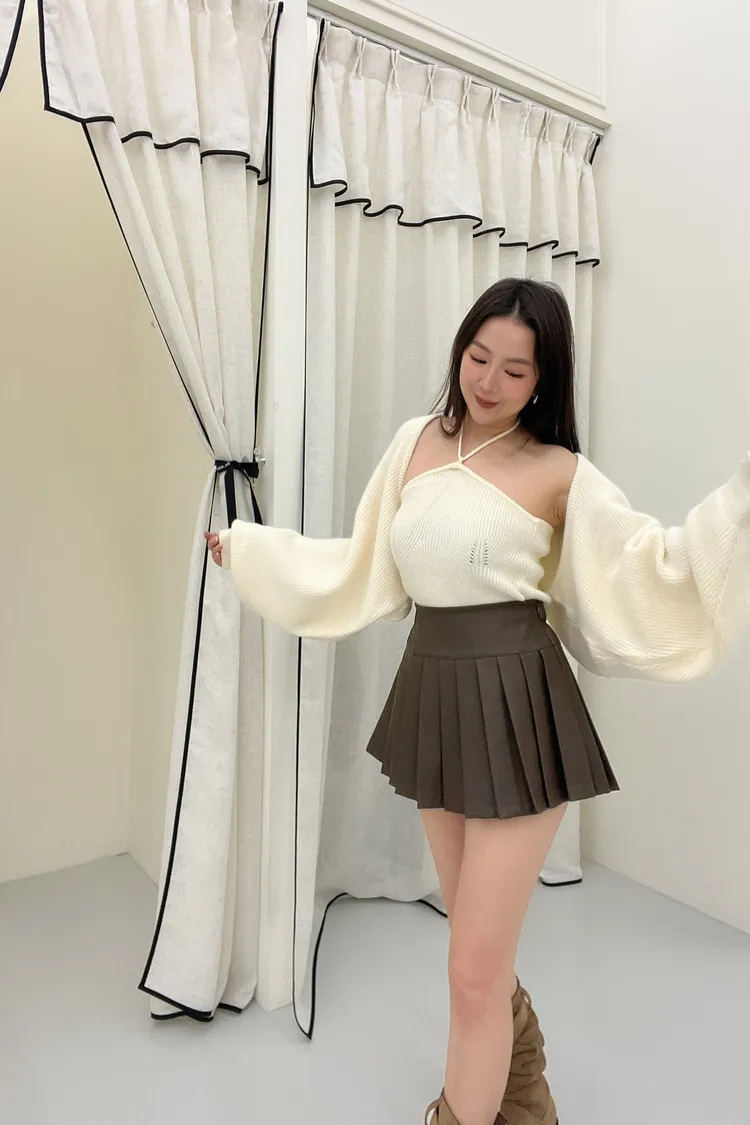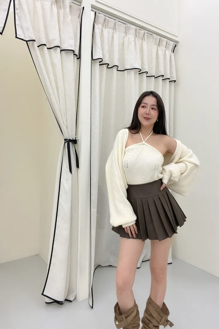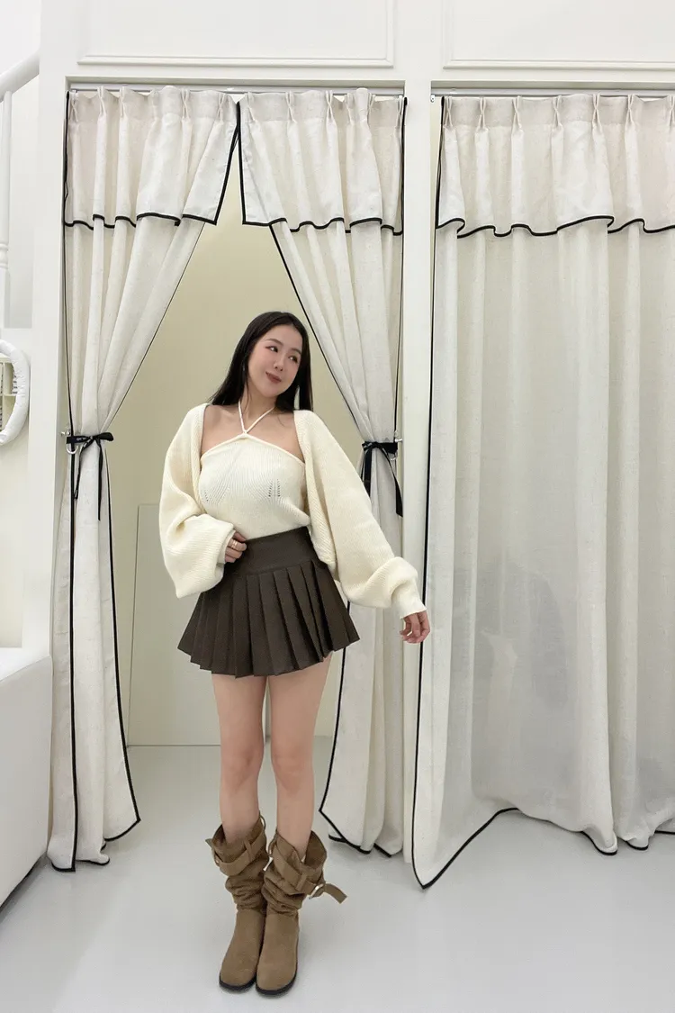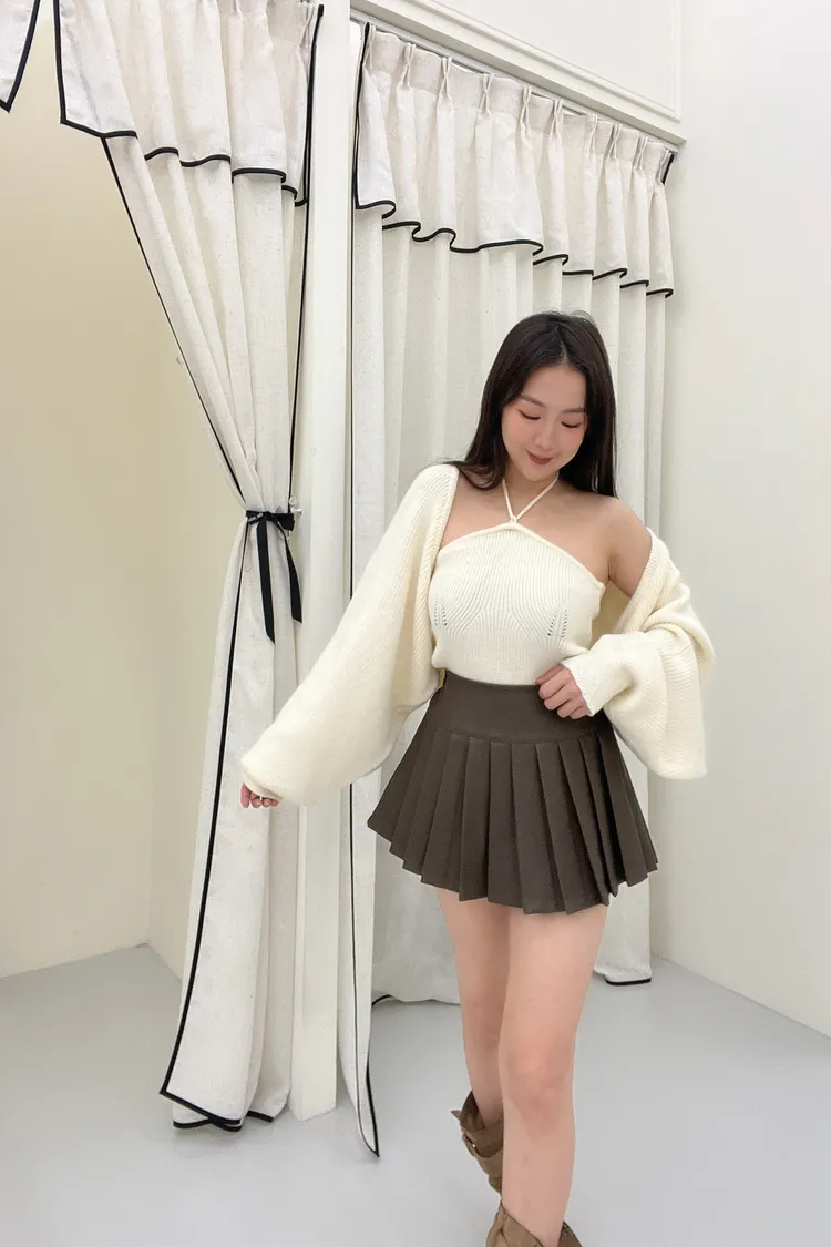 綁帶針織背心+外套Set