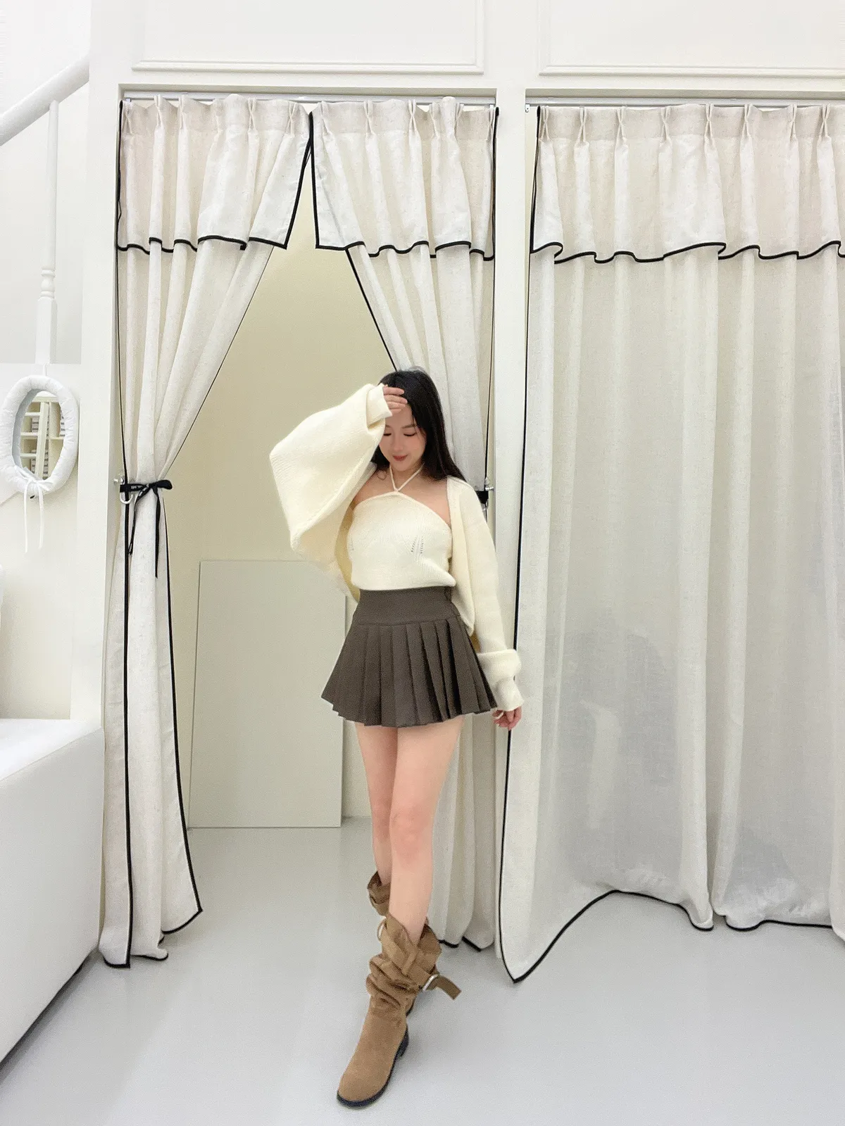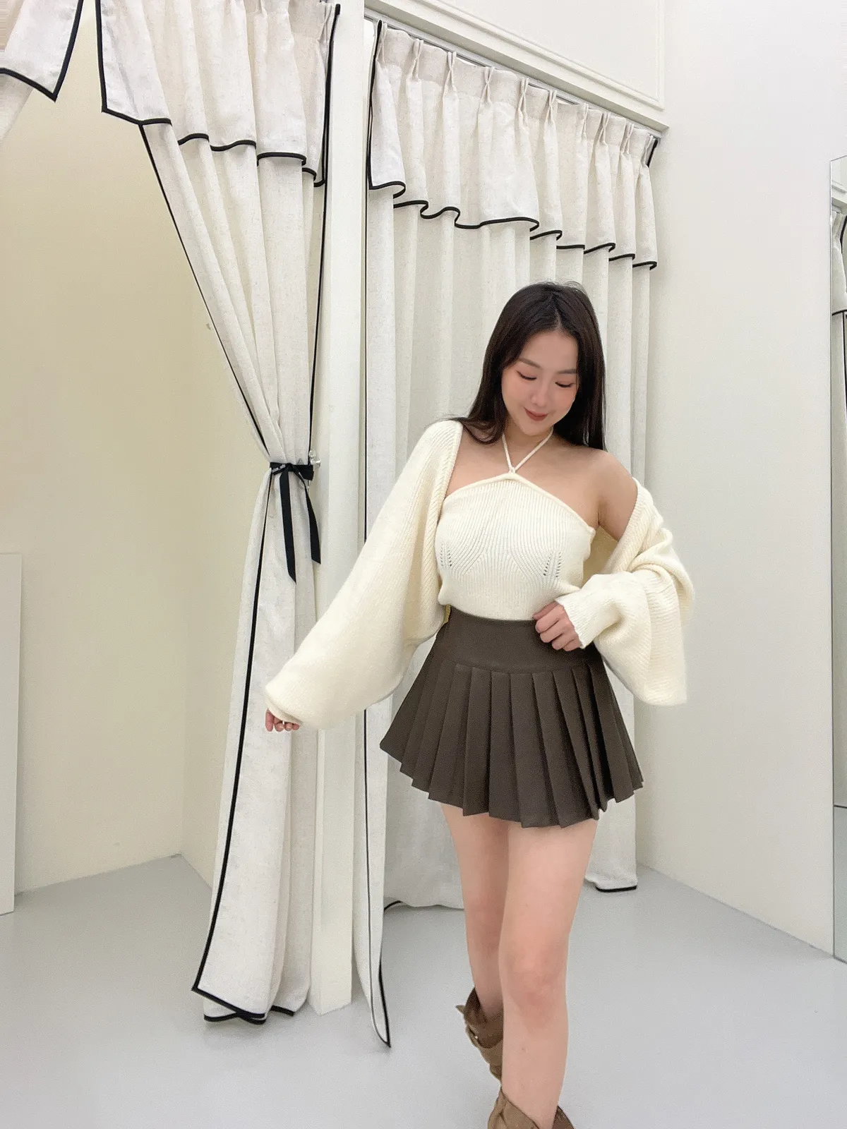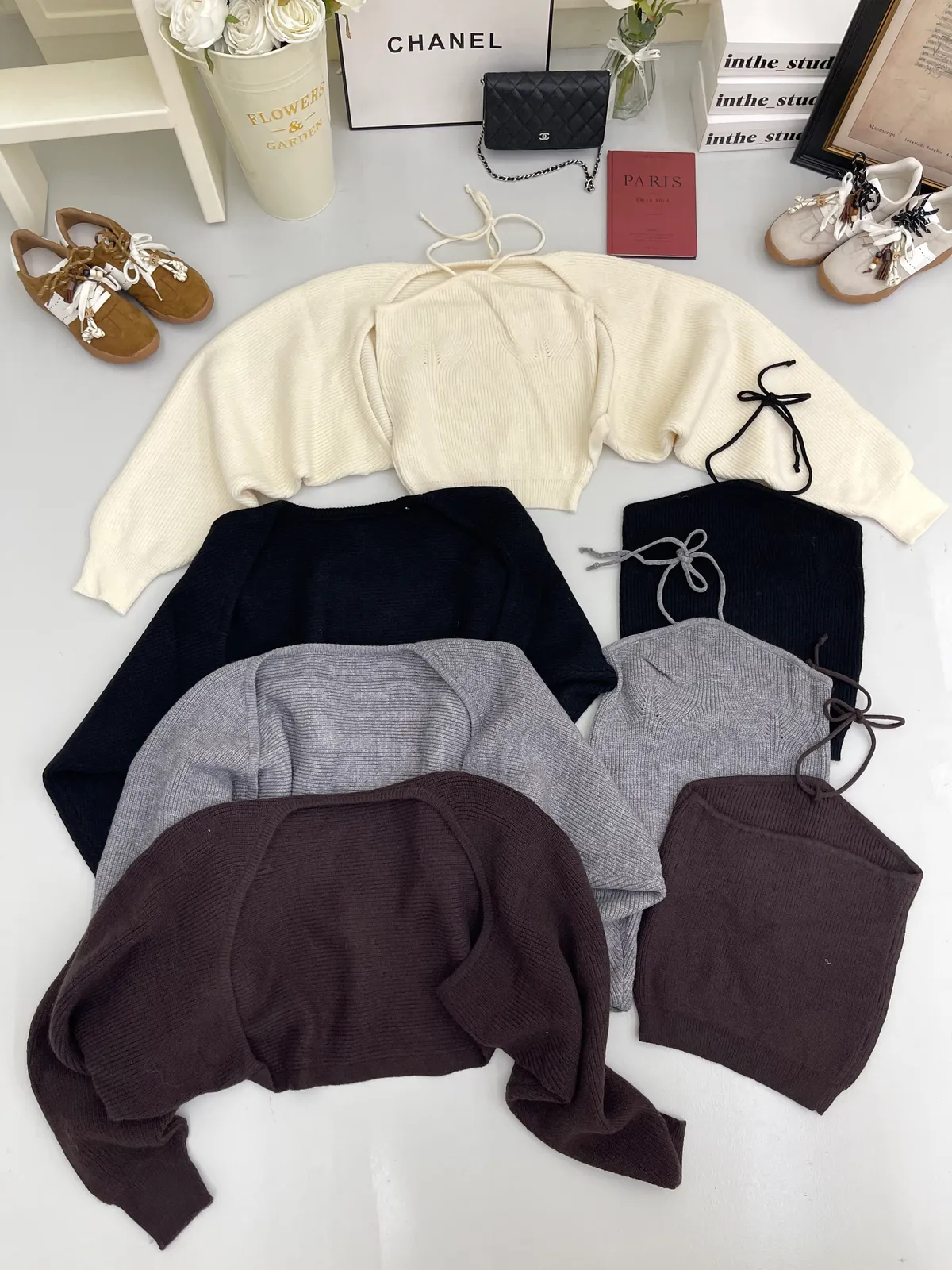 綁帶針織背心+外套Set