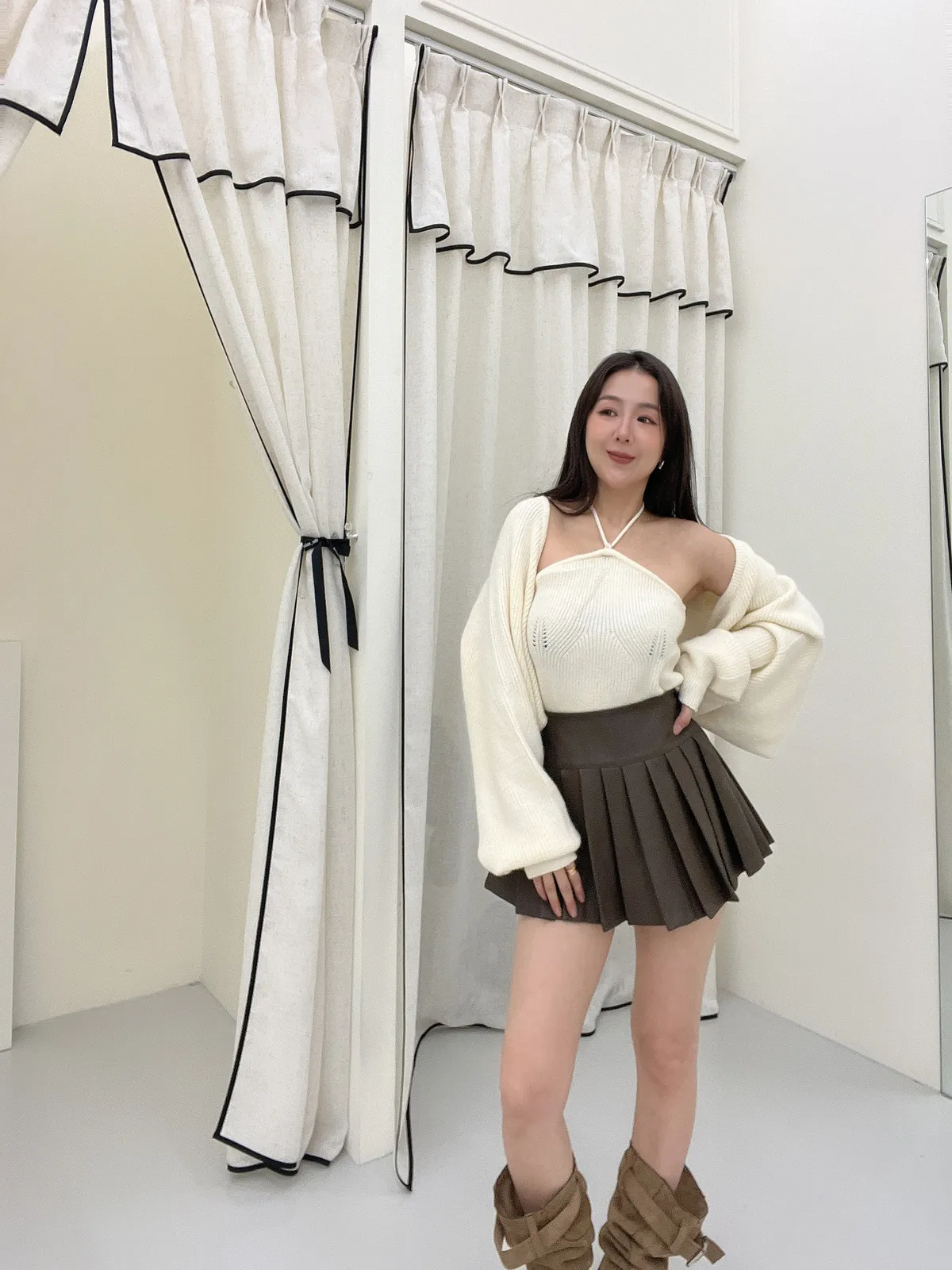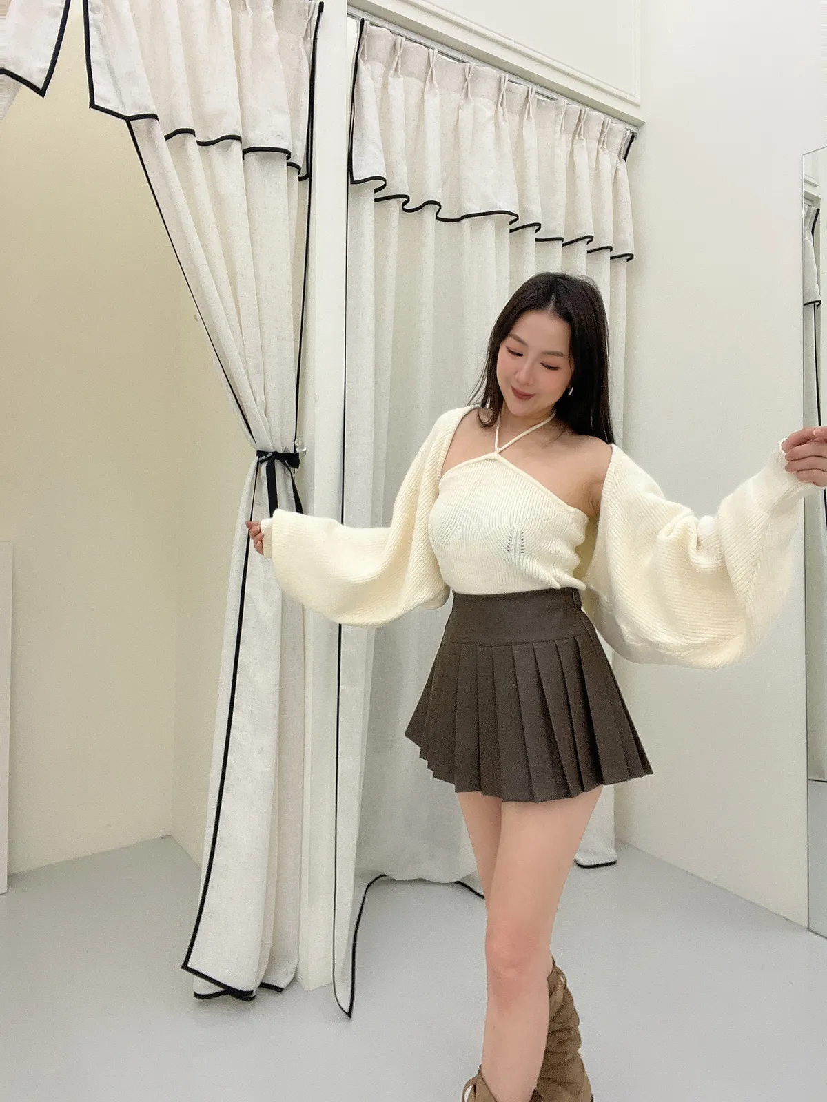 霧面百褶皮裙