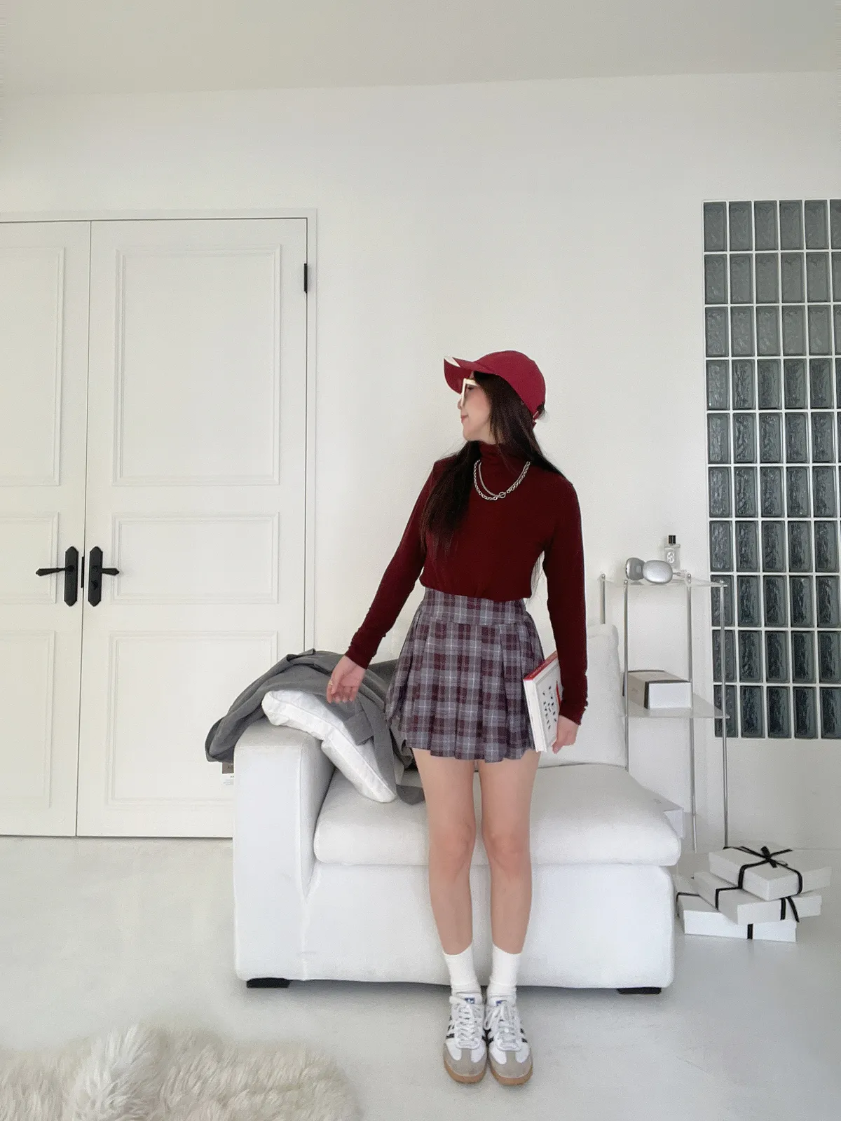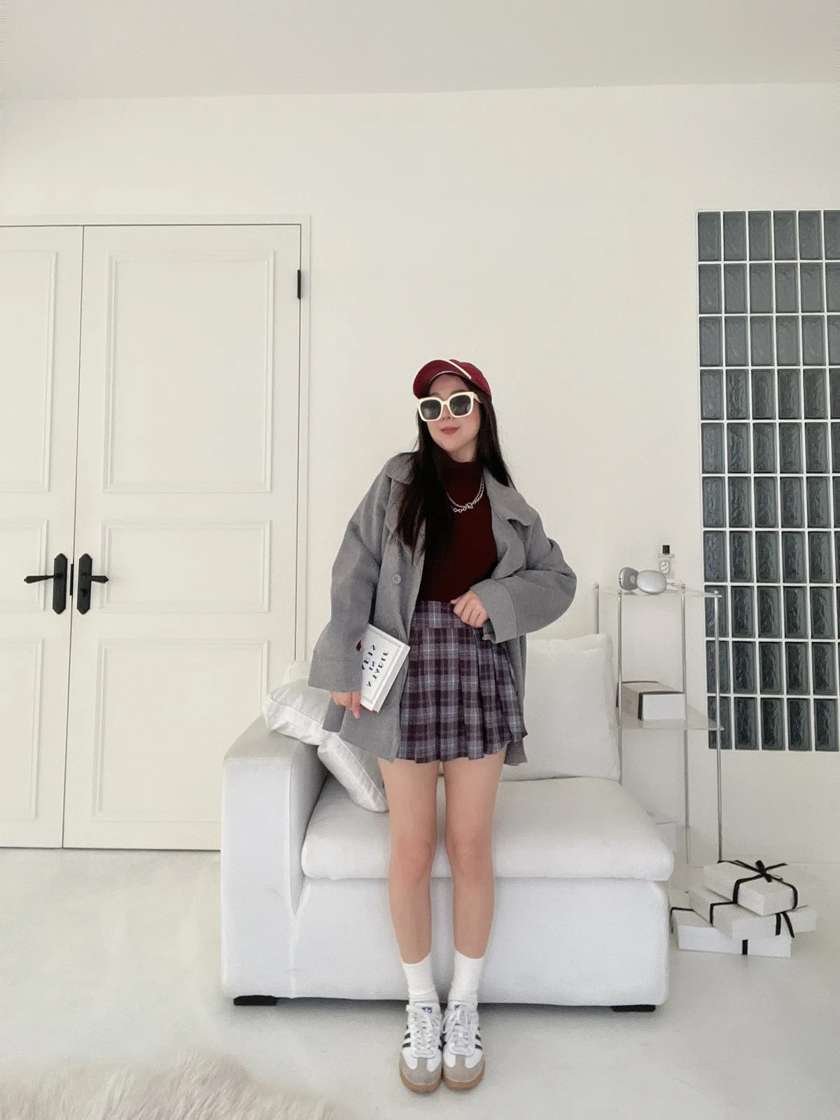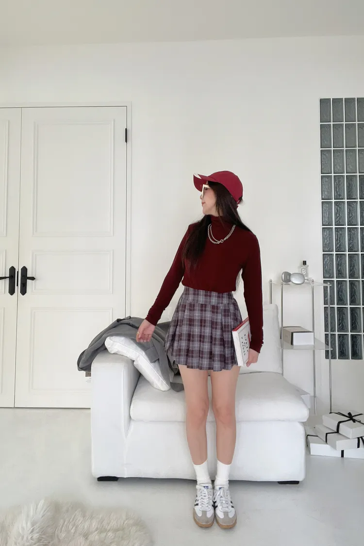經典格紋百褶開衩褲裙