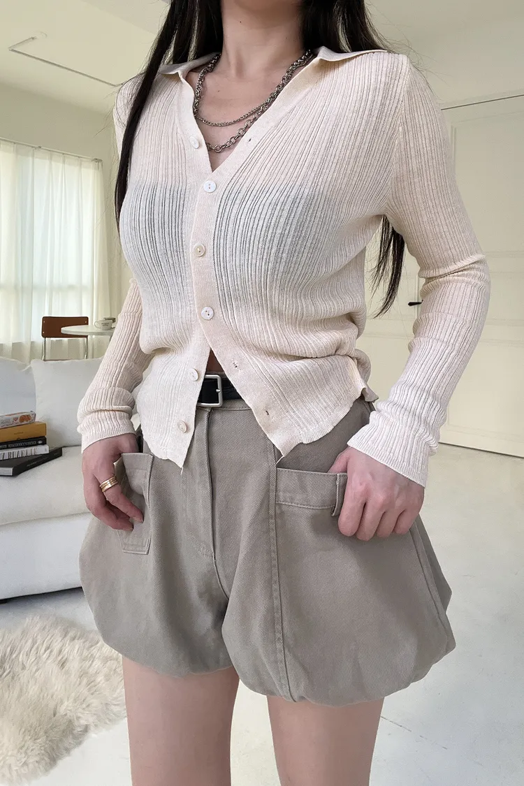 親膚坑條針織排釦上衣