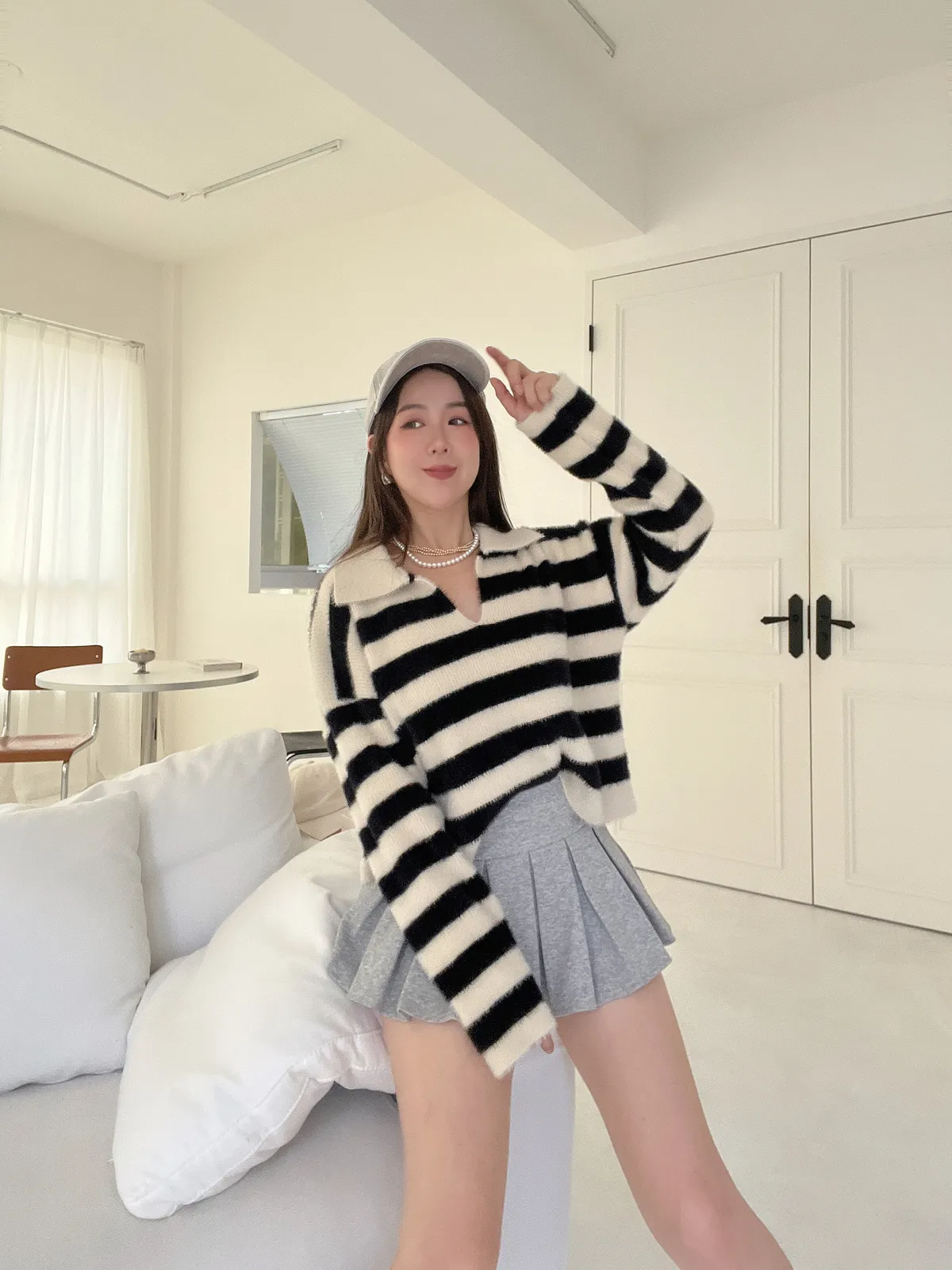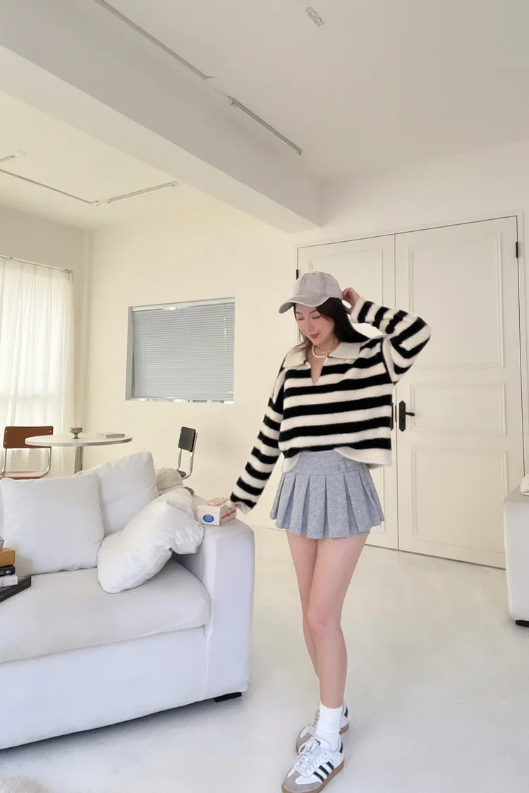 仿水貂毛條紋翻領Polo衣
