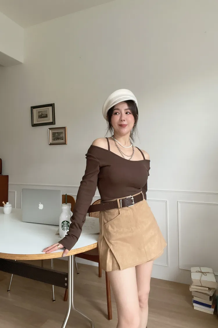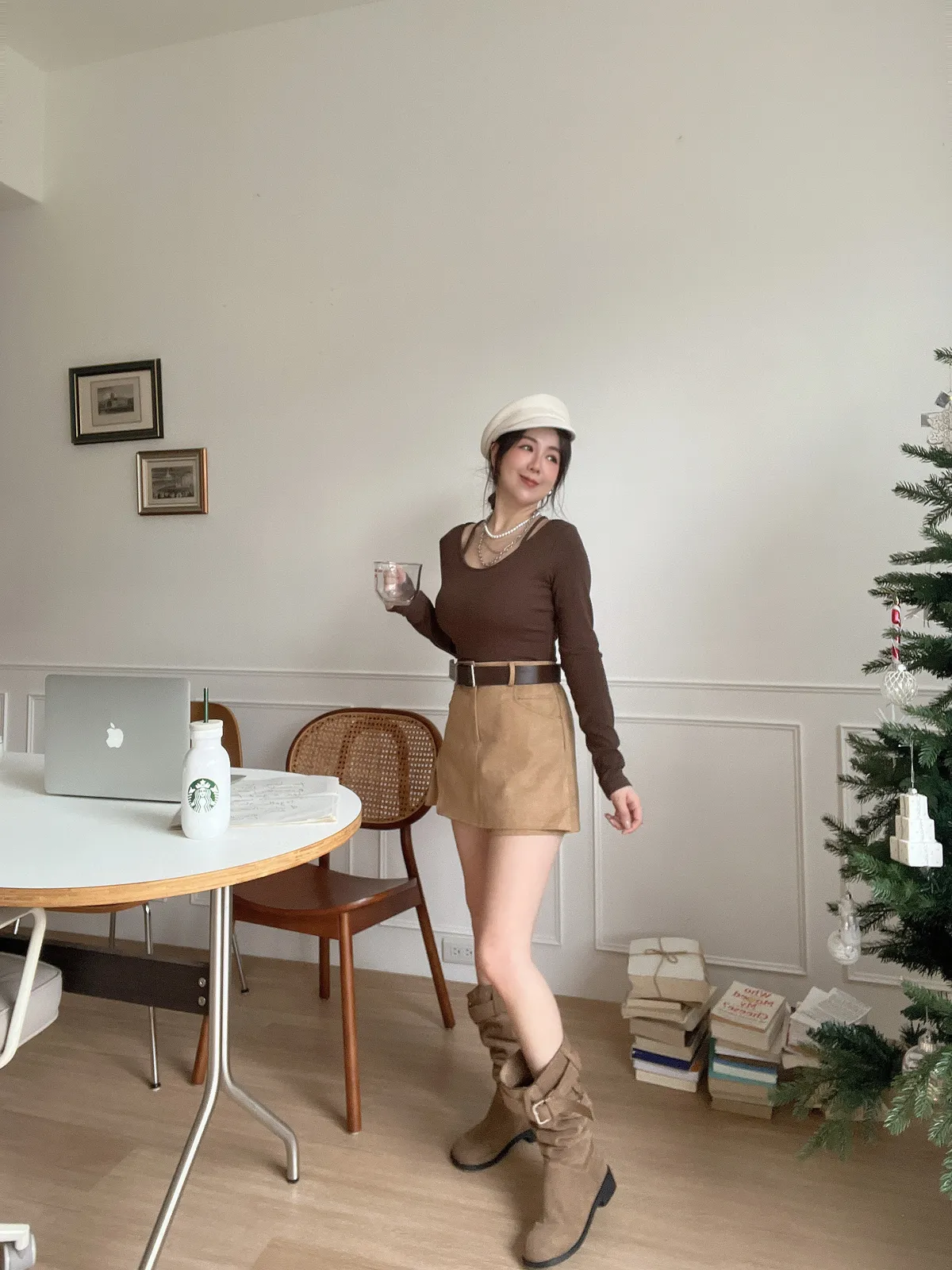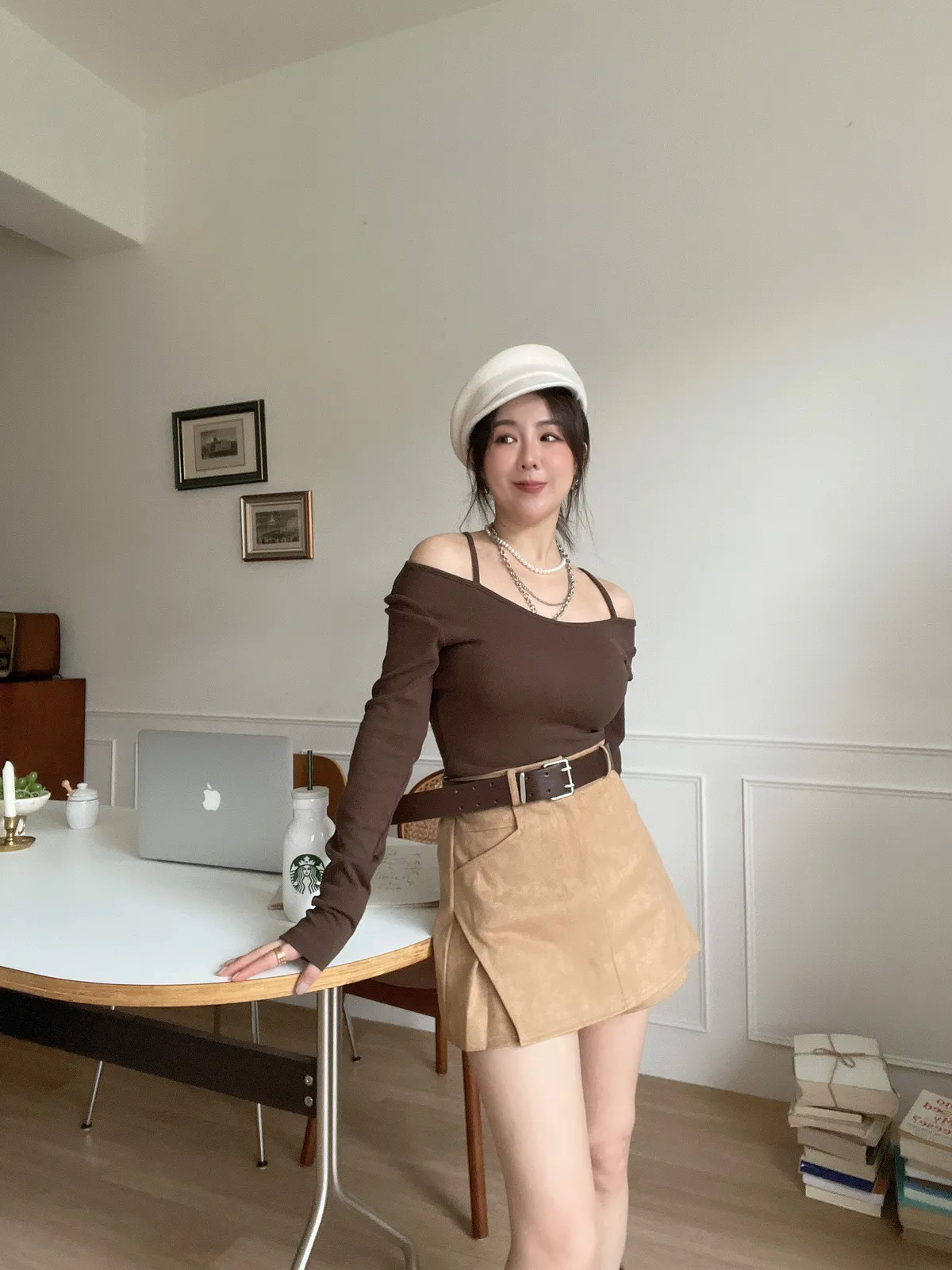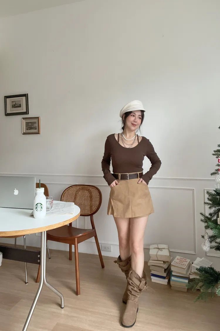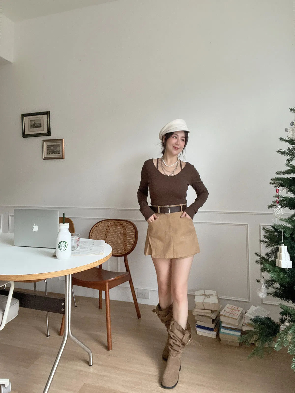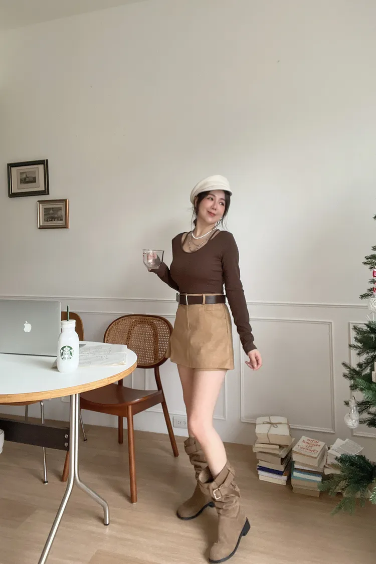 完美版型💯麂皮絨一片式褲裙(附皮帶)