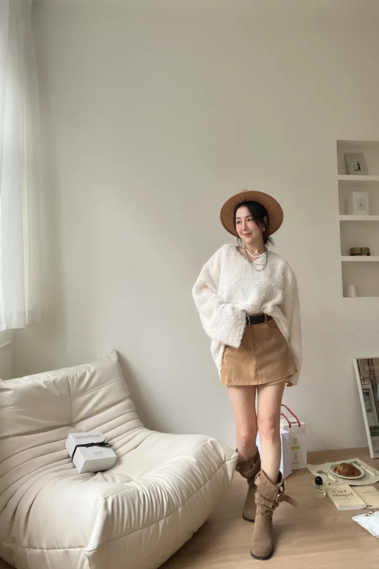 完美版型💯麂皮絨一片式褲裙(附皮帶)