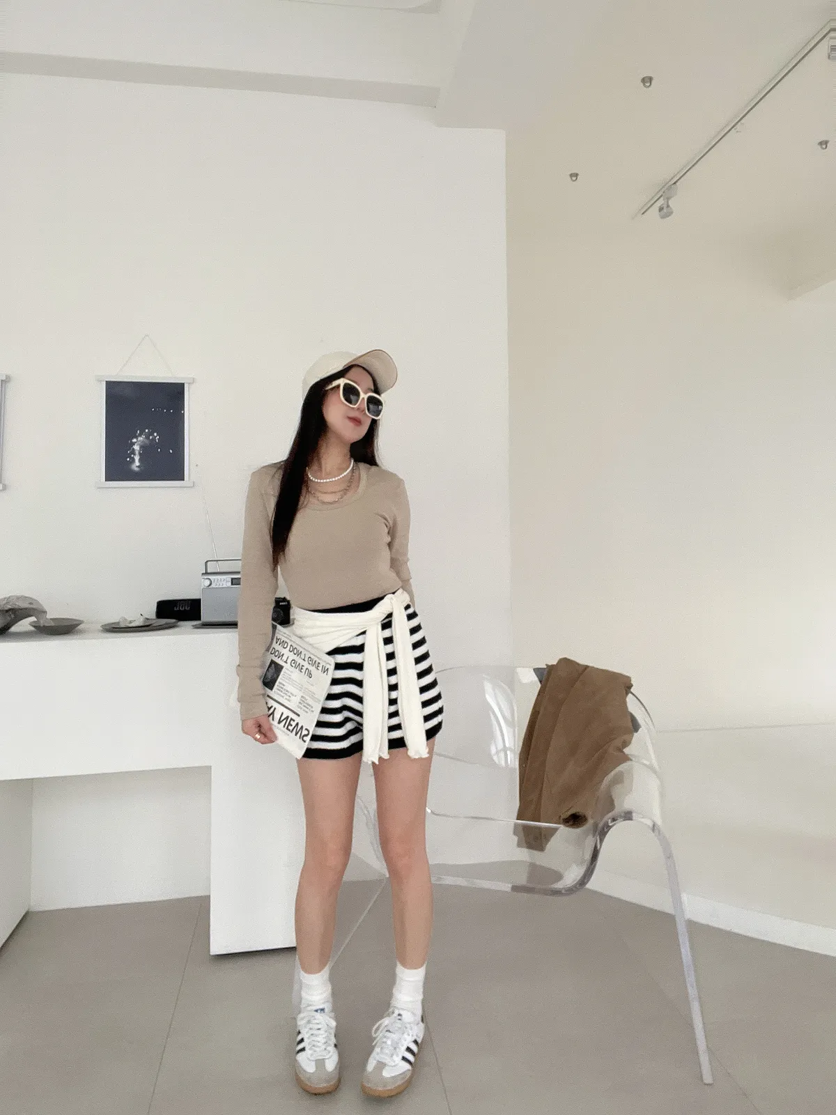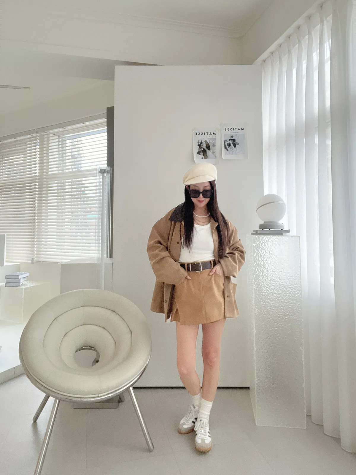 完美版型💯麂皮絨一片式褲裙(附皮帶)