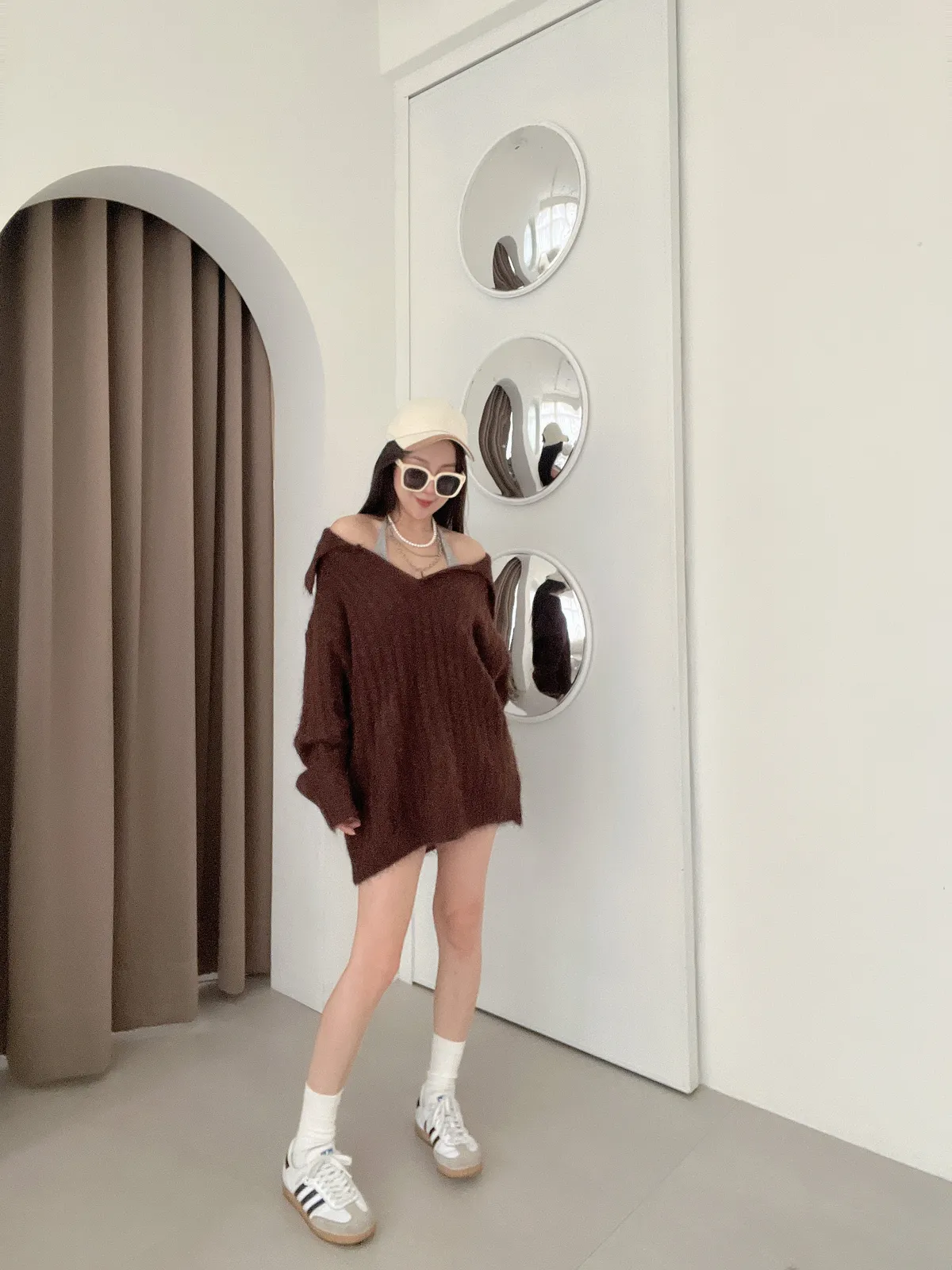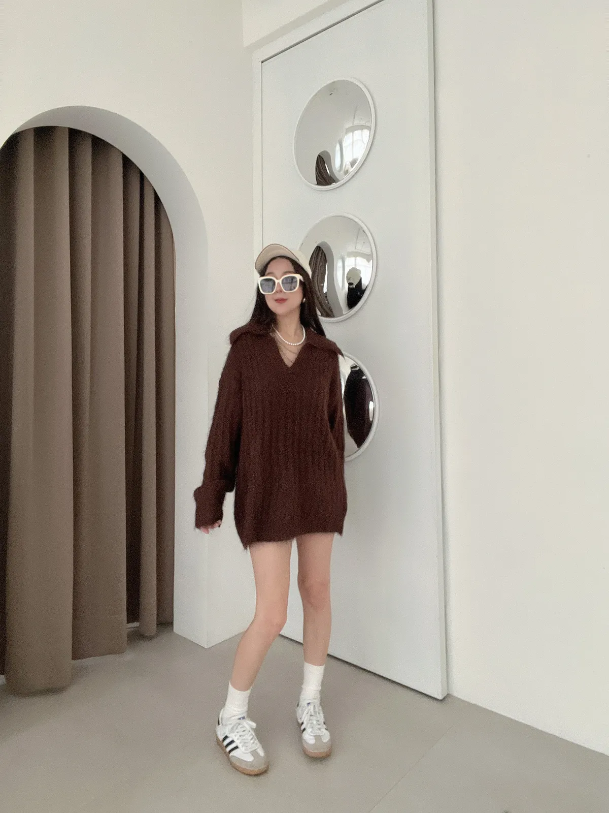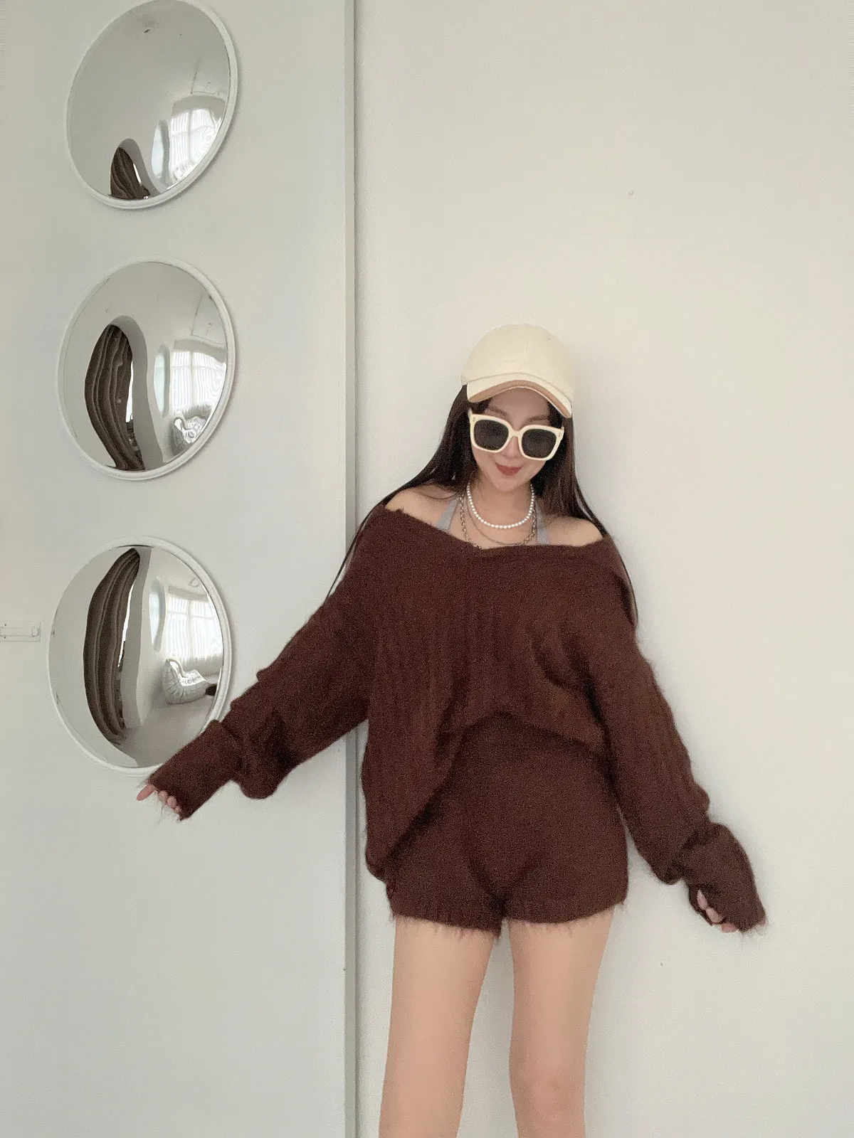 11/21慵懶風☕仿兔絨翻領坑紋毛衣+短褲套裝