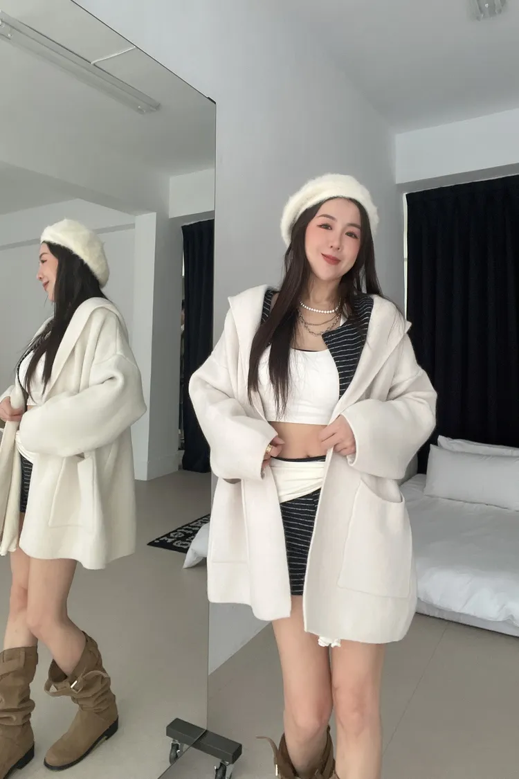 闆娘大推💯彈力輕毛呢條紋排釦上衣+條紋褲Set