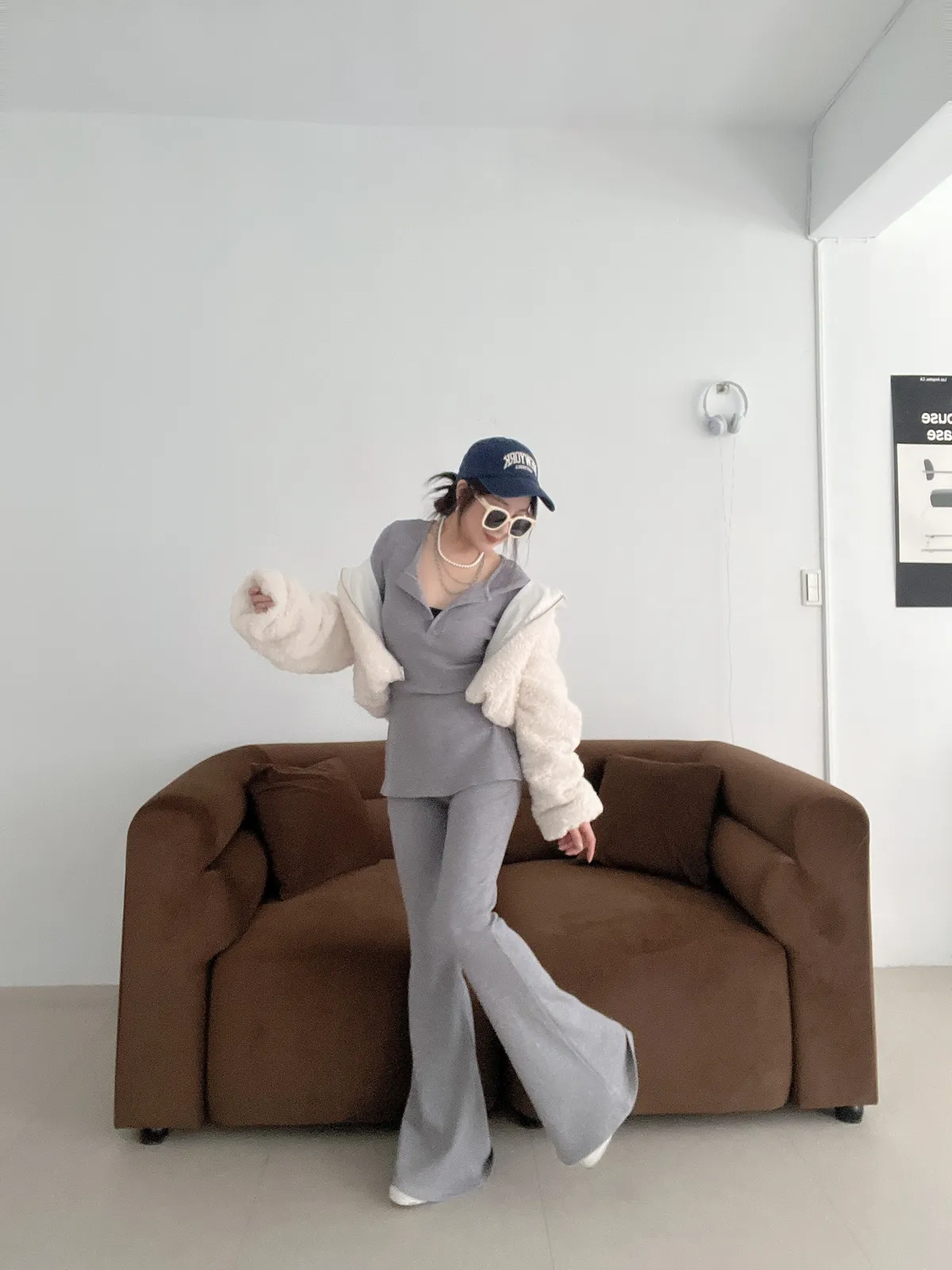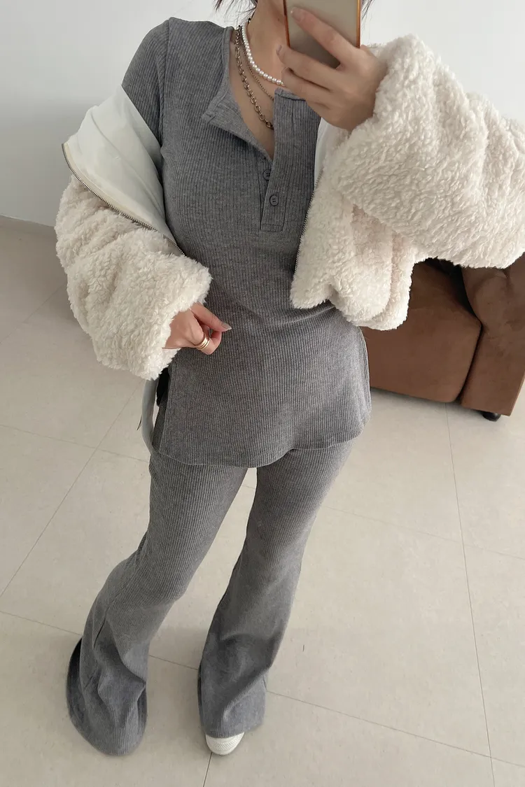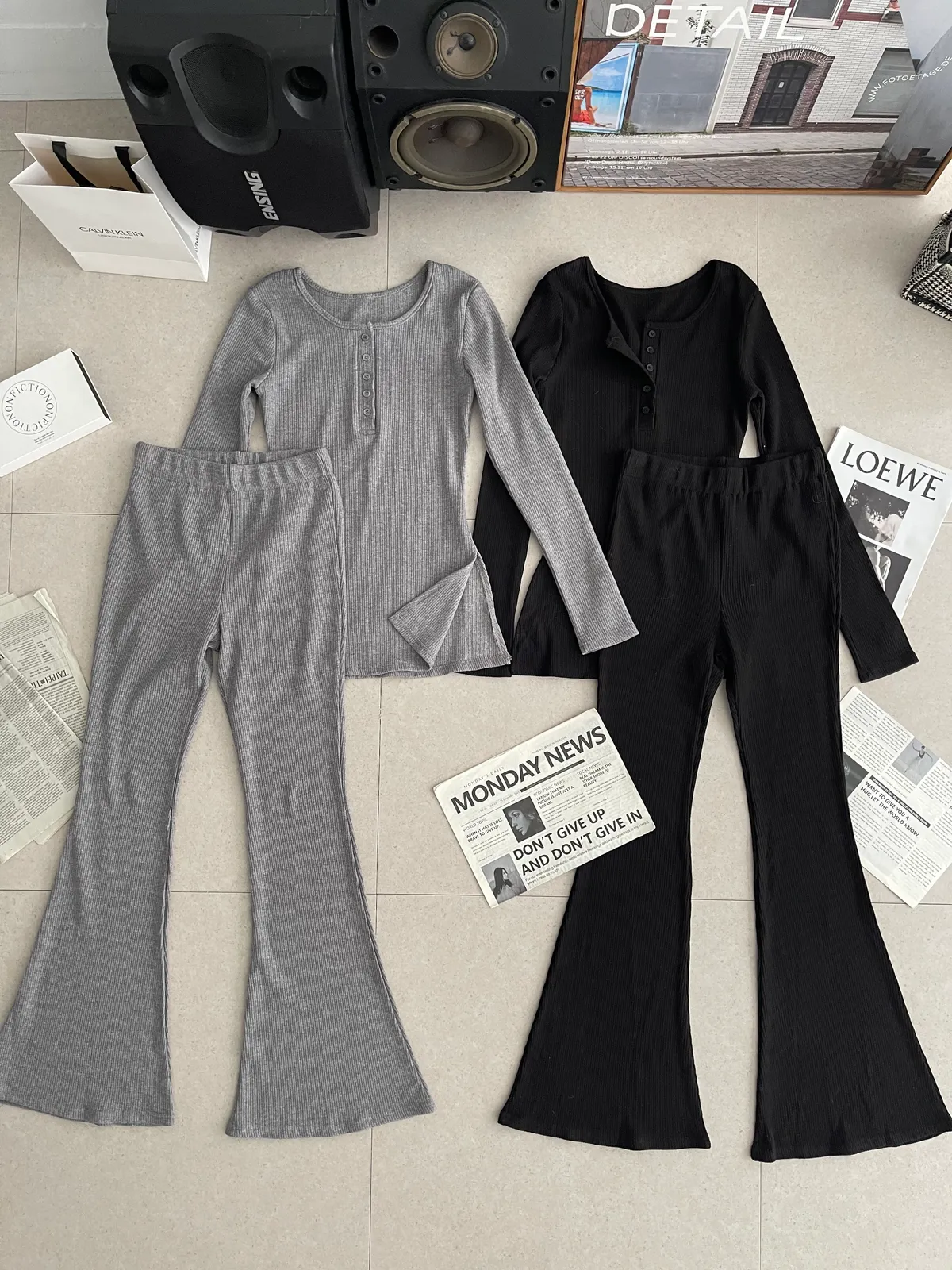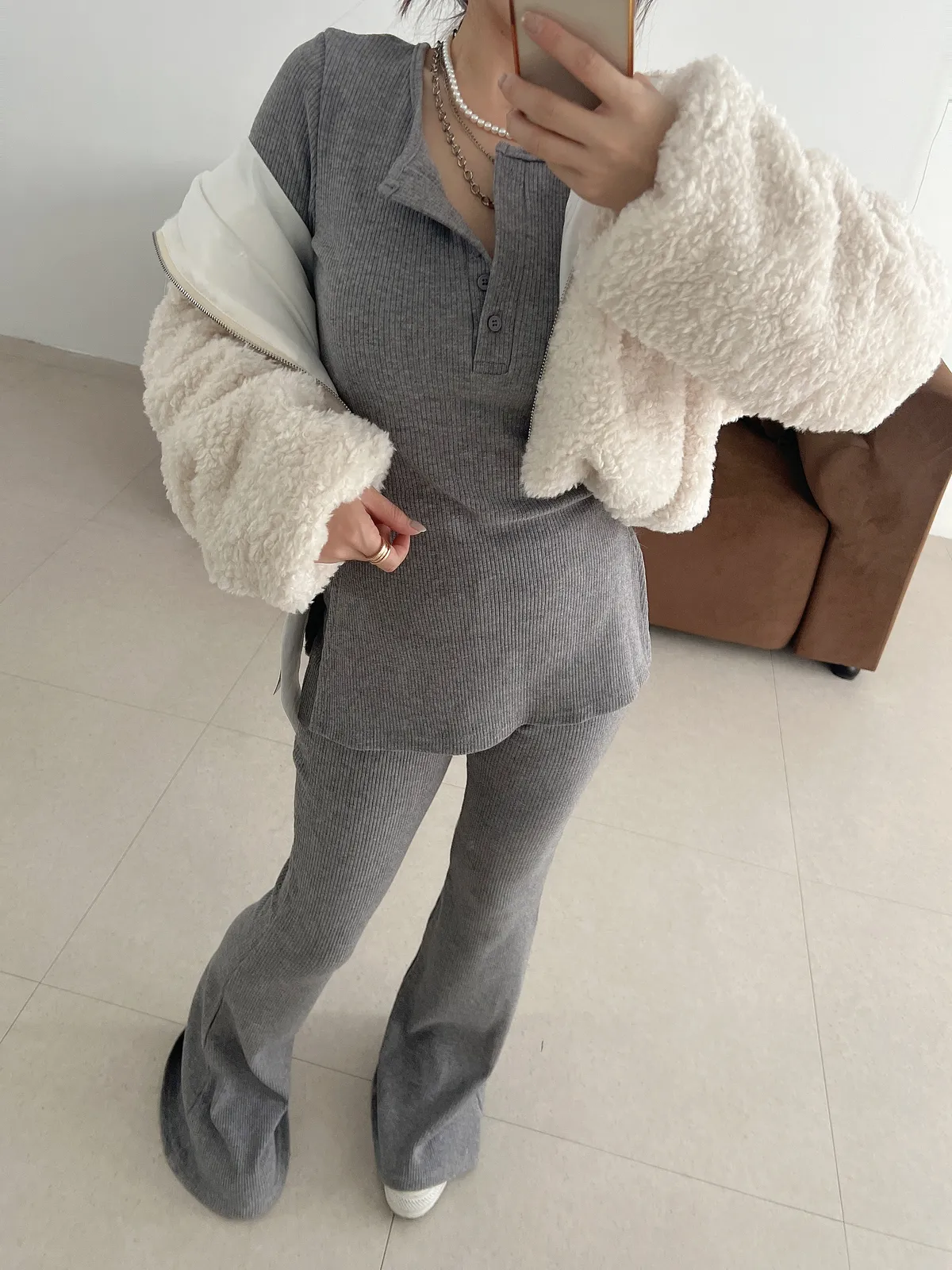 11/28休閒小性感🫦內刷毛針織坑條喇叭褲套裝