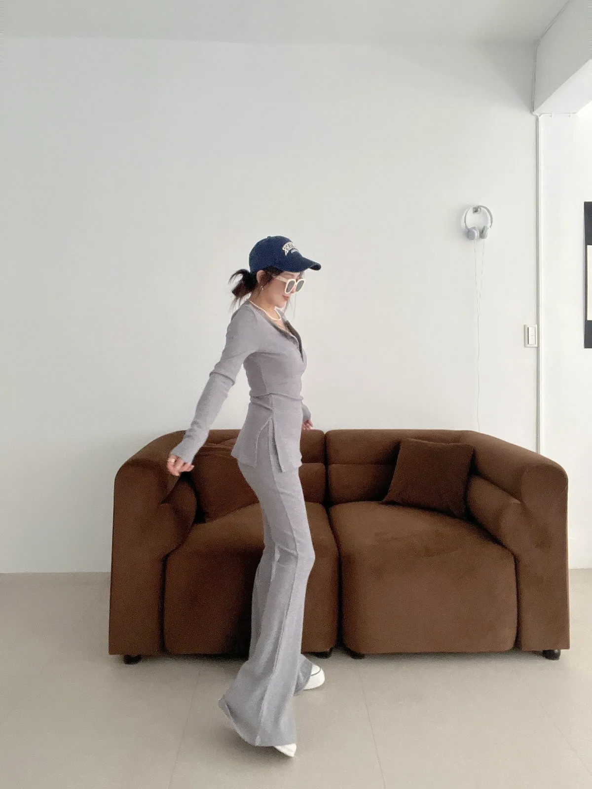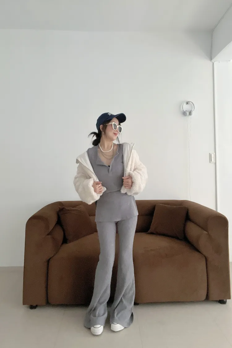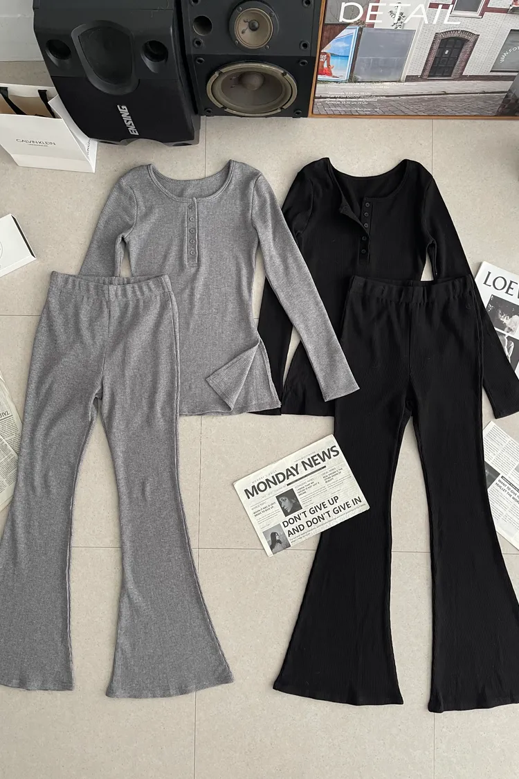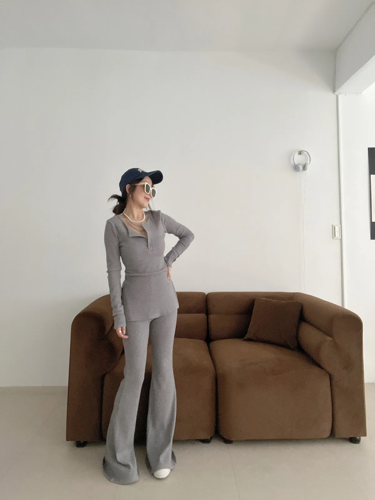 11/28休閒小性感🫦內刷毛針織坑條喇叭褲套裝