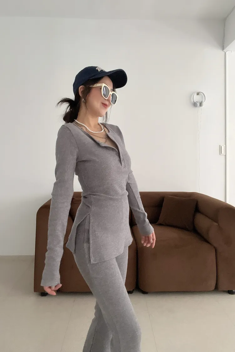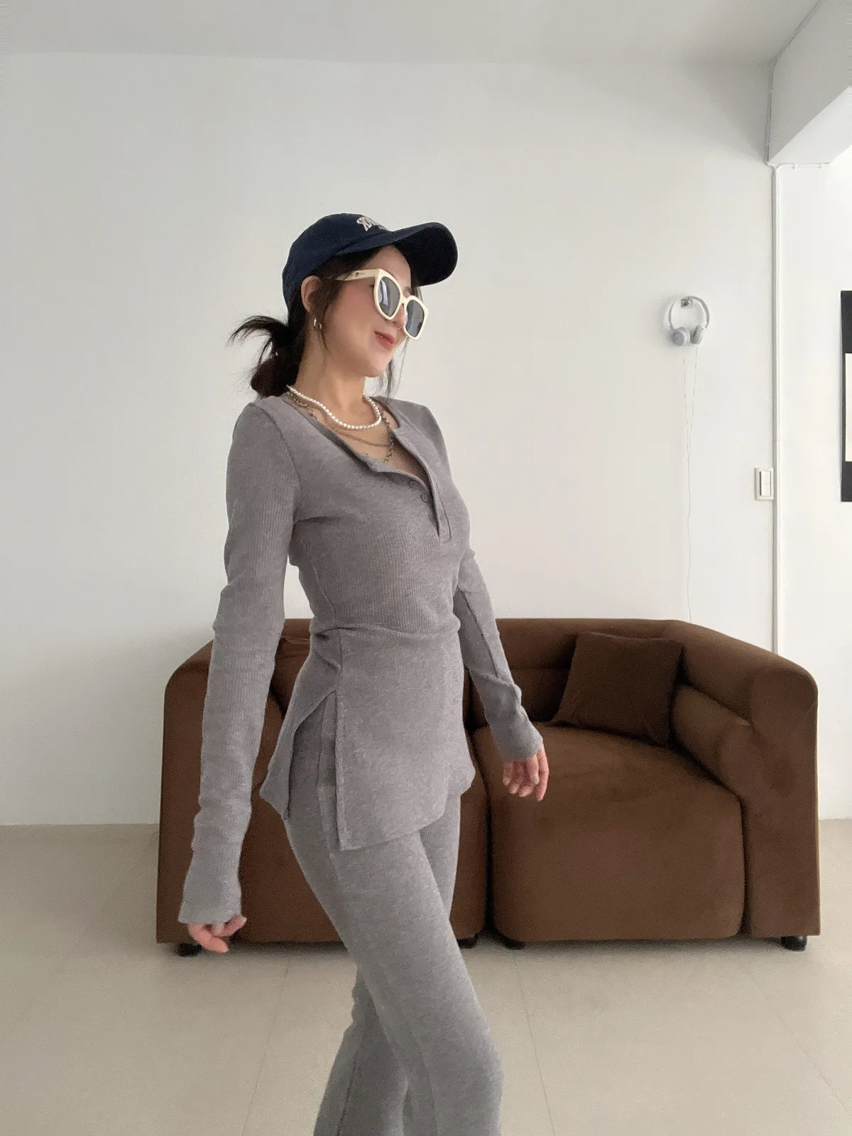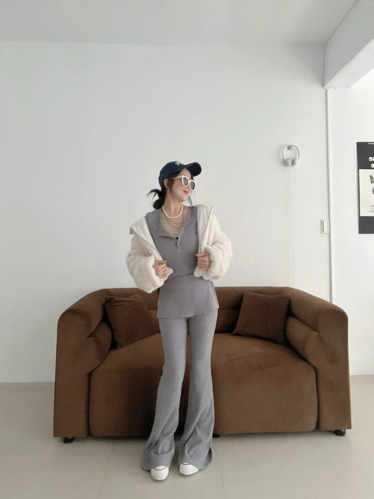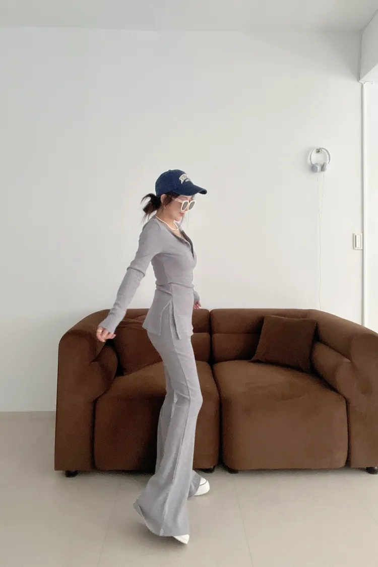 11/28休閒小性感🫦內刷毛針織坑條喇叭褲套裝