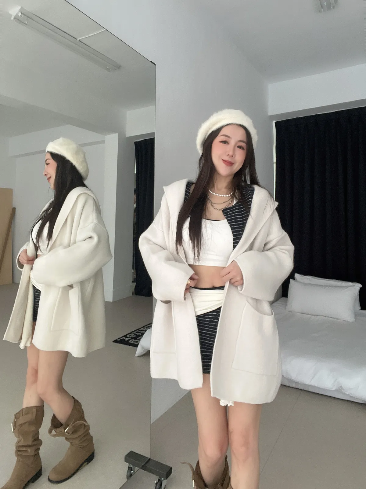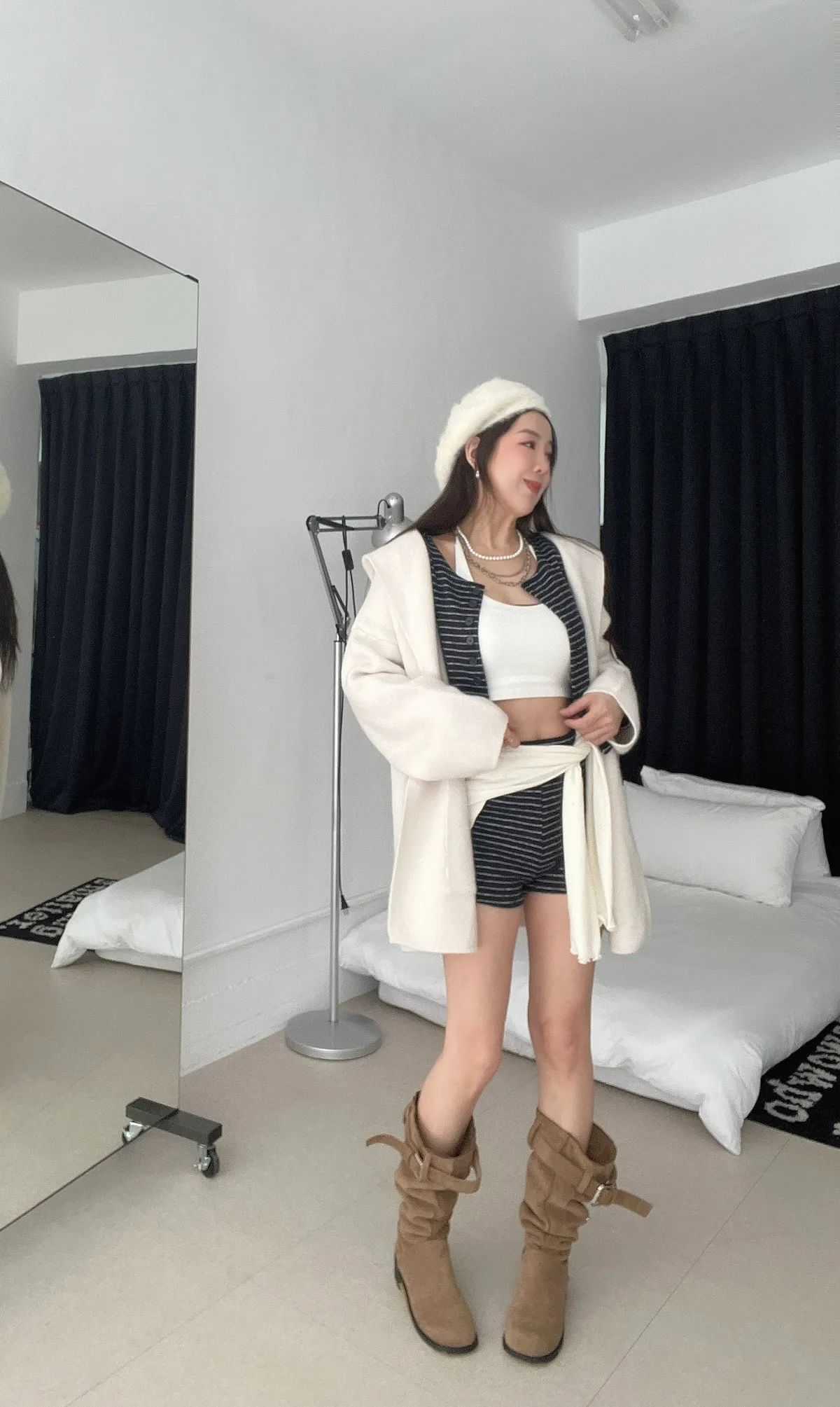 闆娘大推💯彈力輕毛呢條紋排釦上衣+條紋褲Set