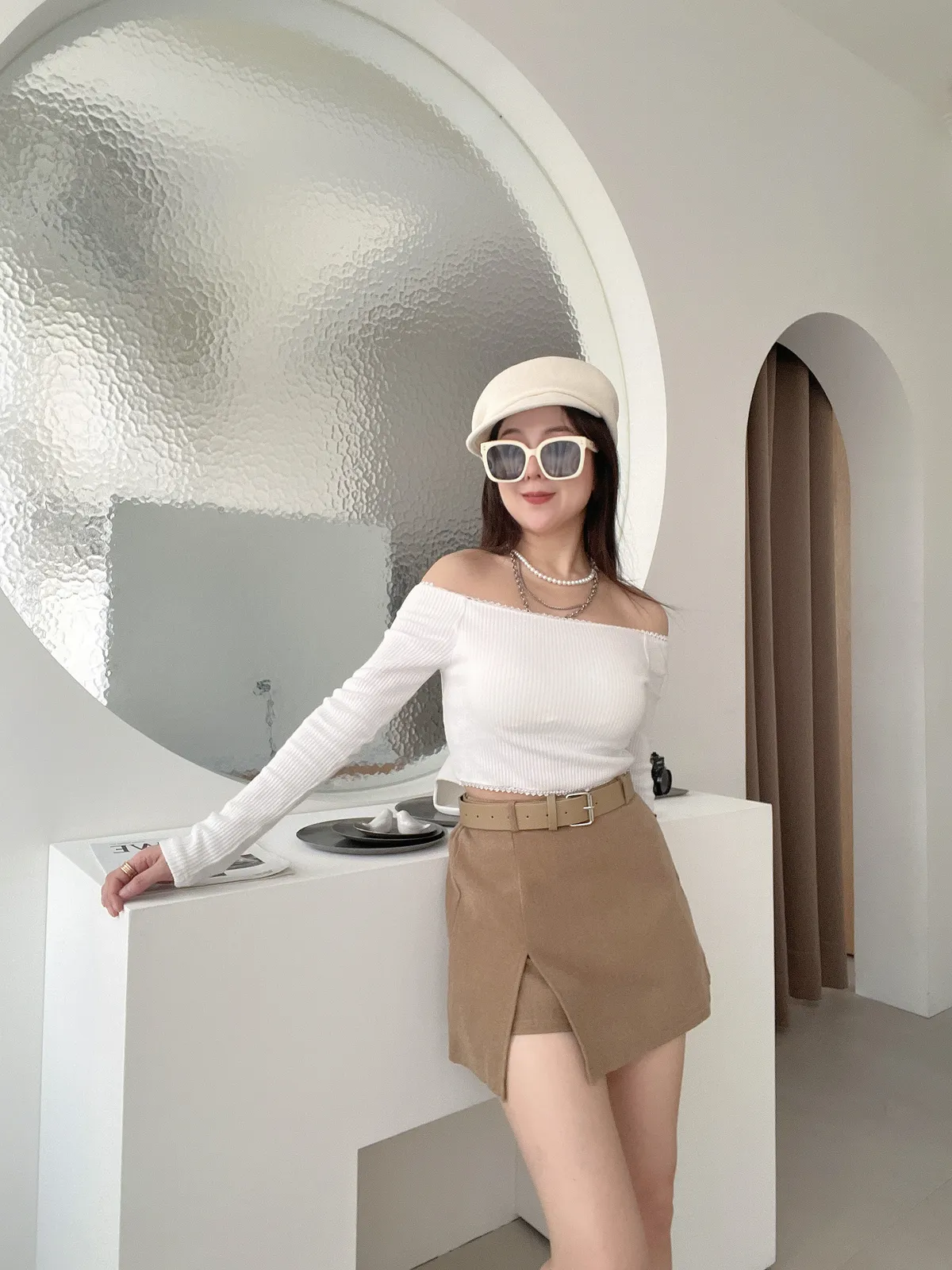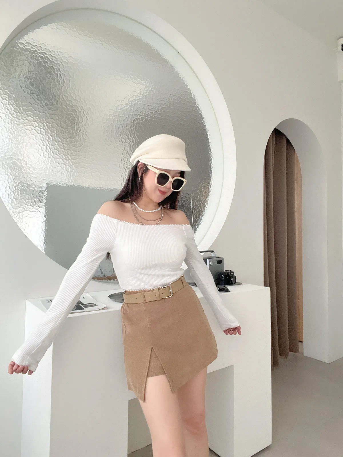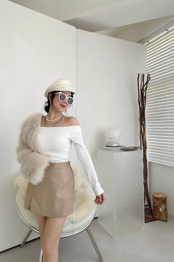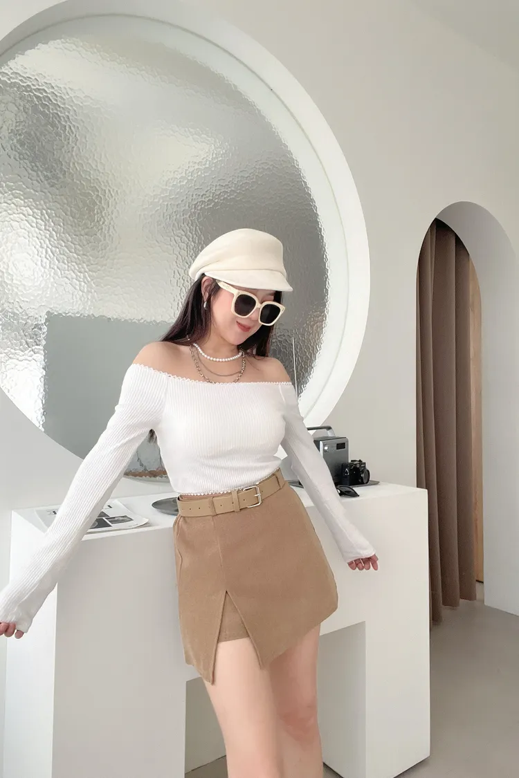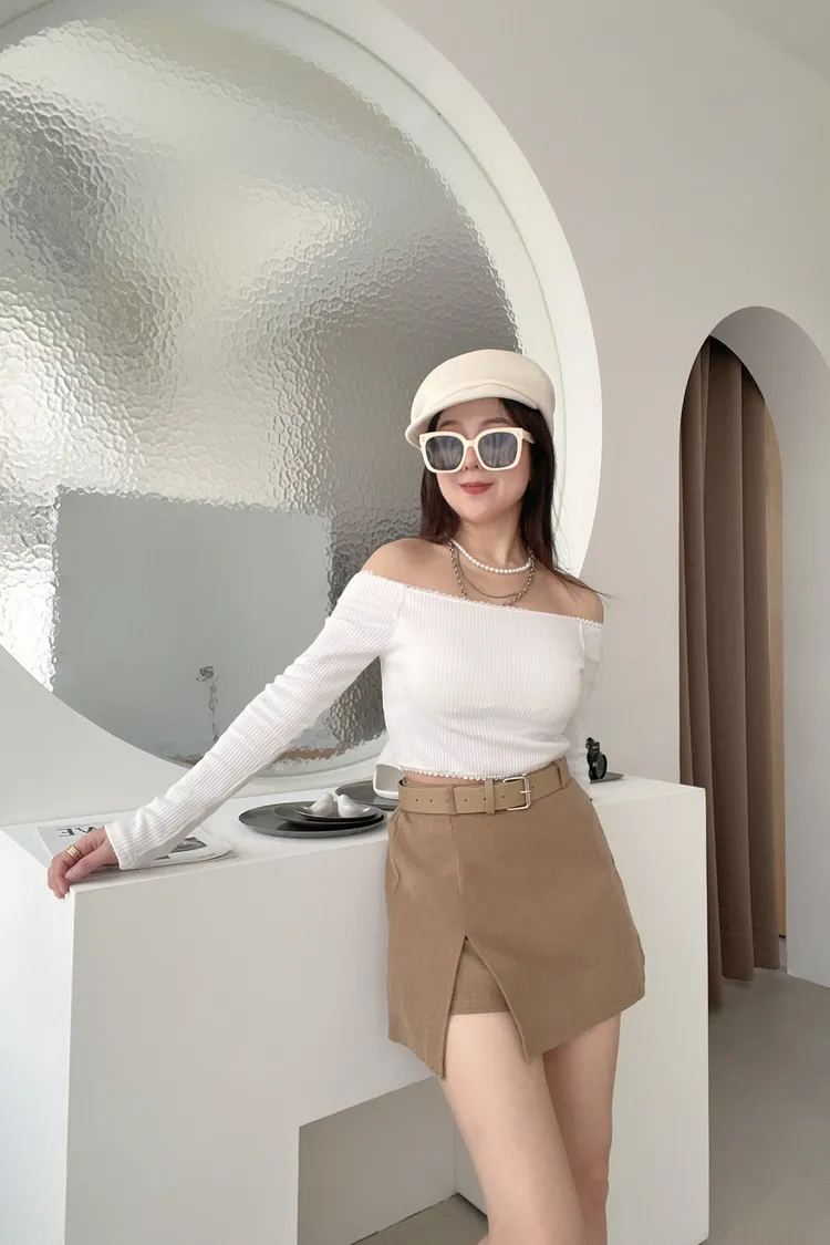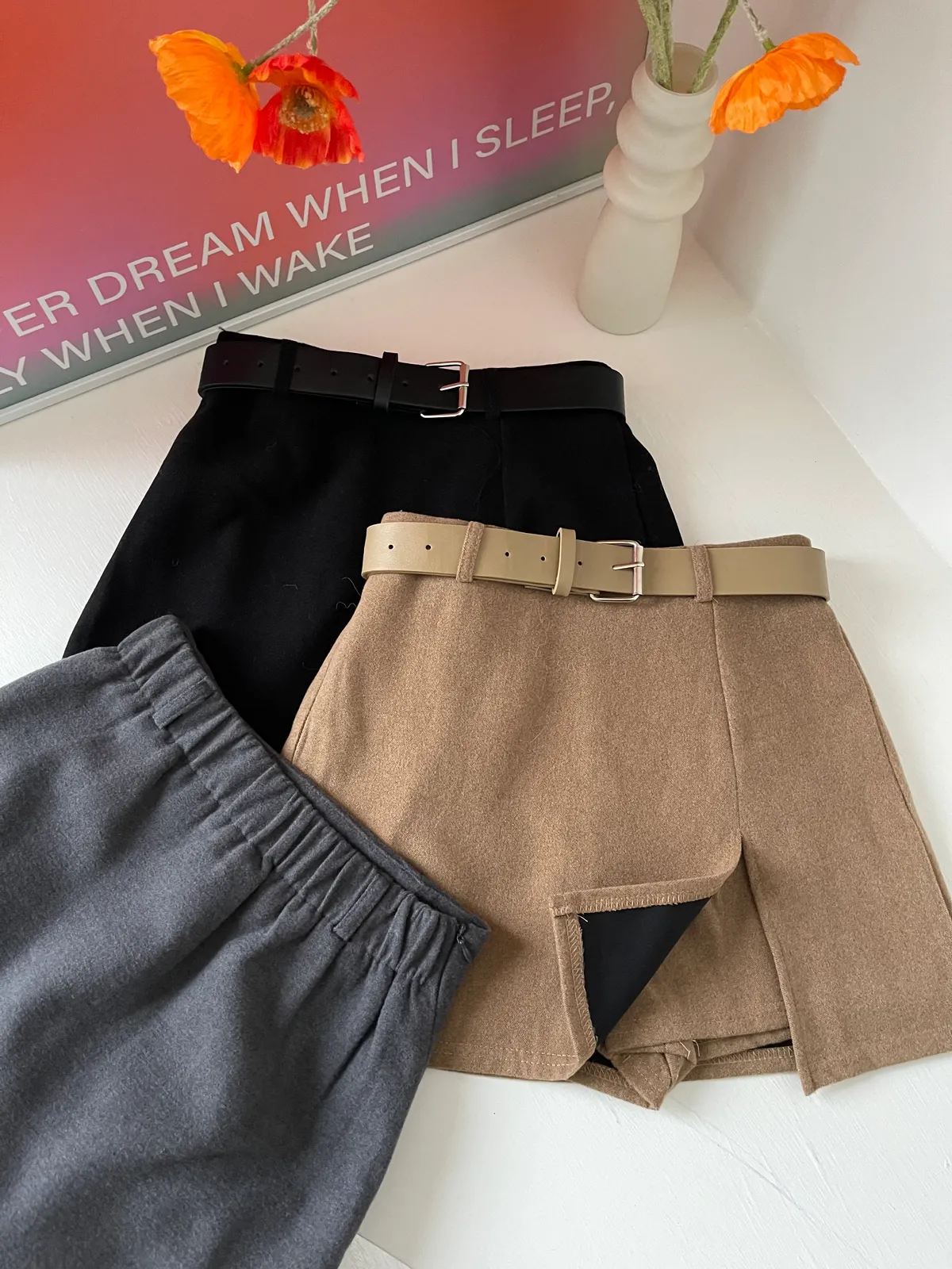12/12側開衩毛呢A字褲裙(附跟色皮帶)