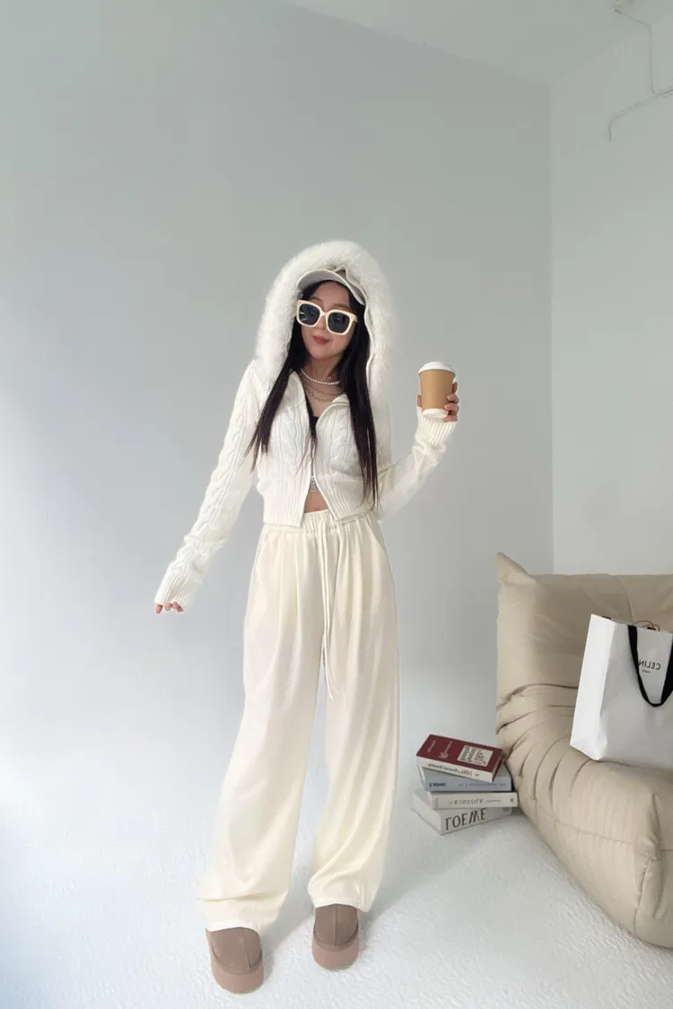 12/19澎毛圈雙拉鍊麻花針織外套