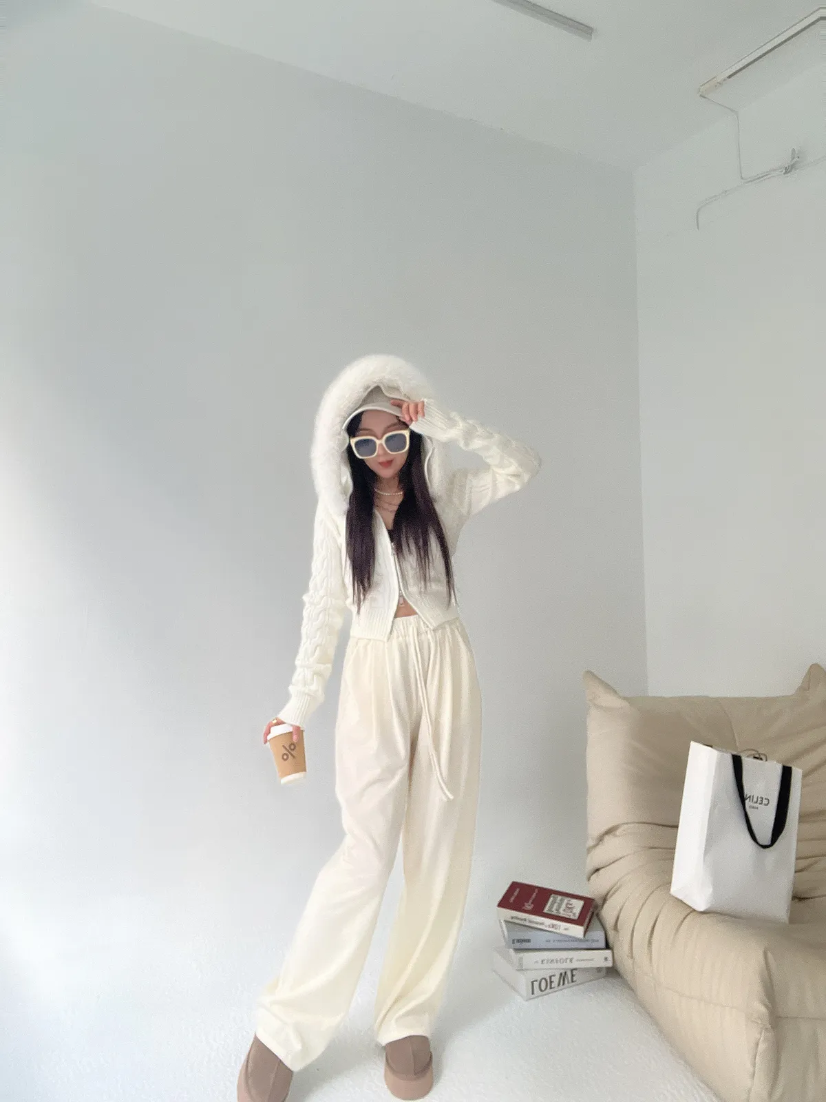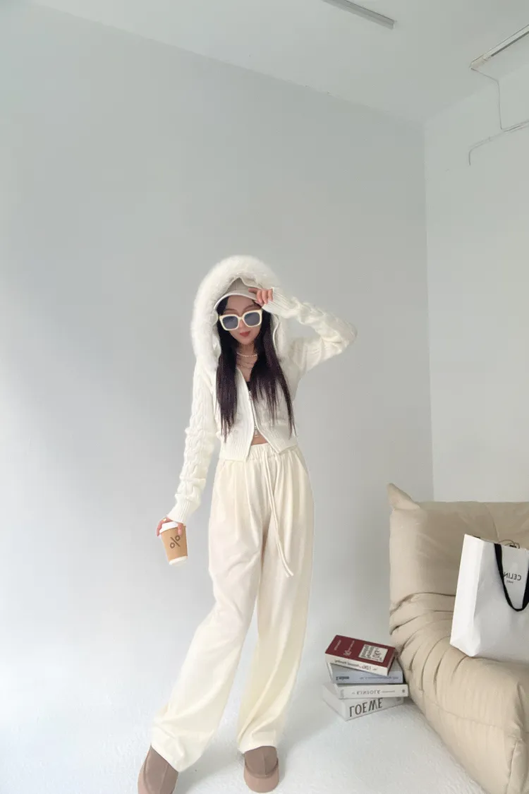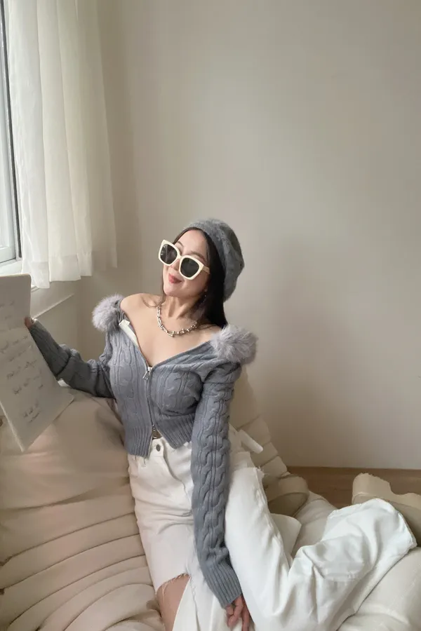 12/19澎毛圈雙拉鍊麻花針織外套